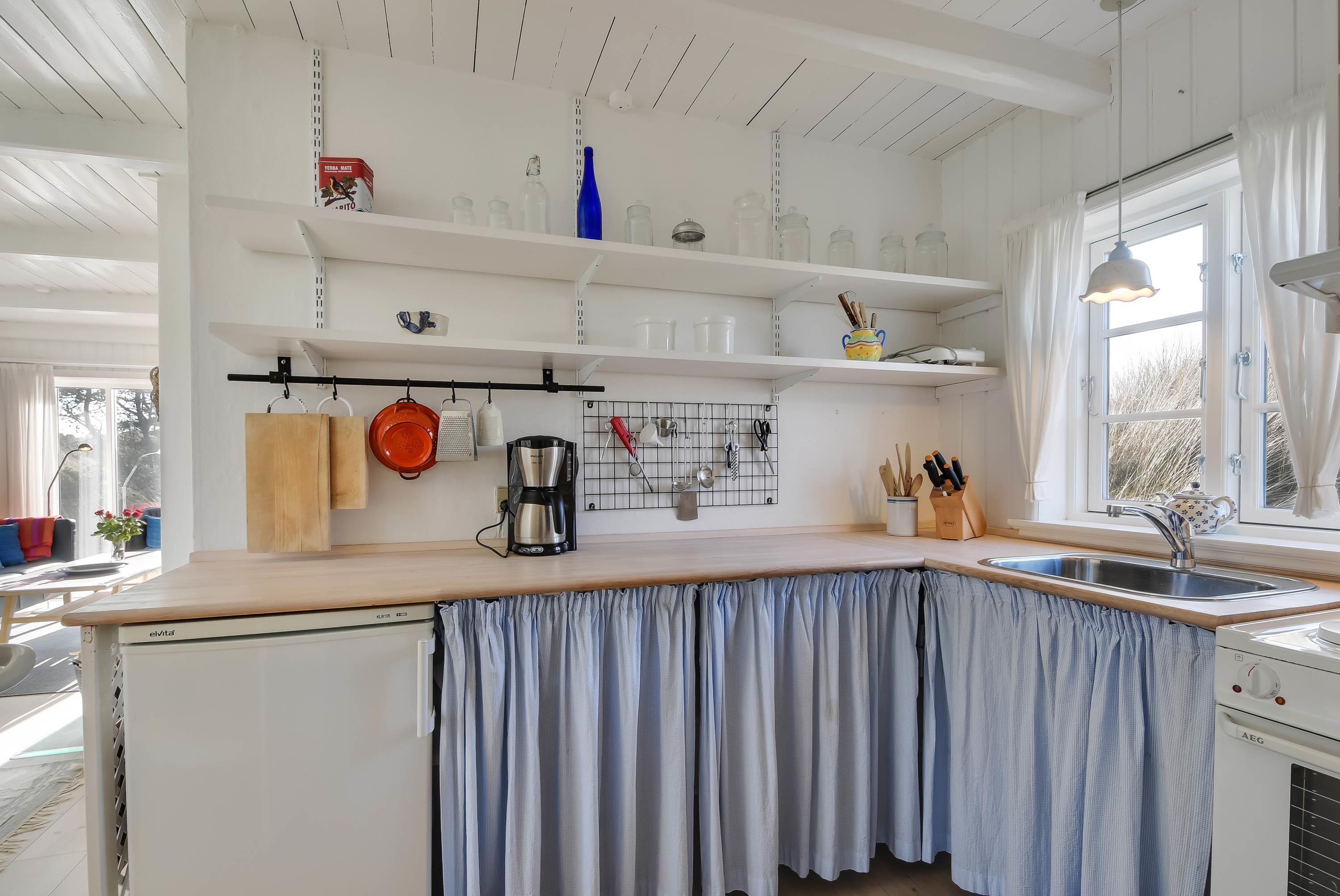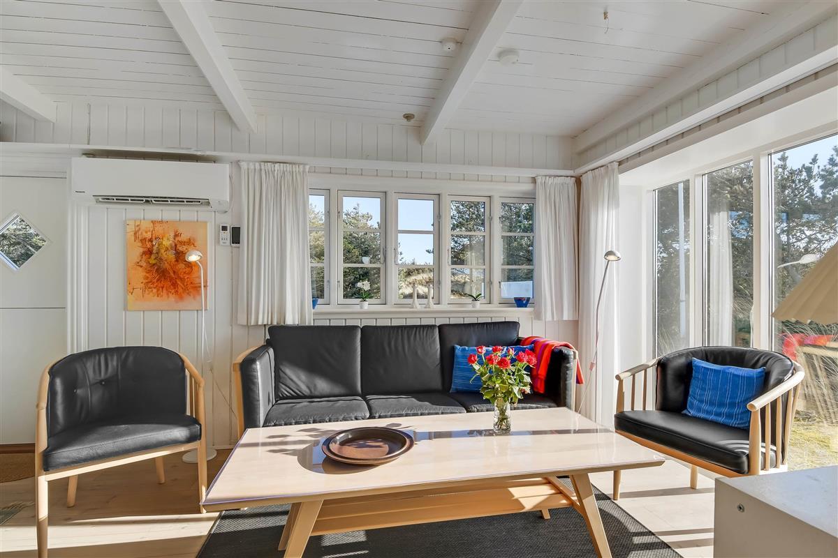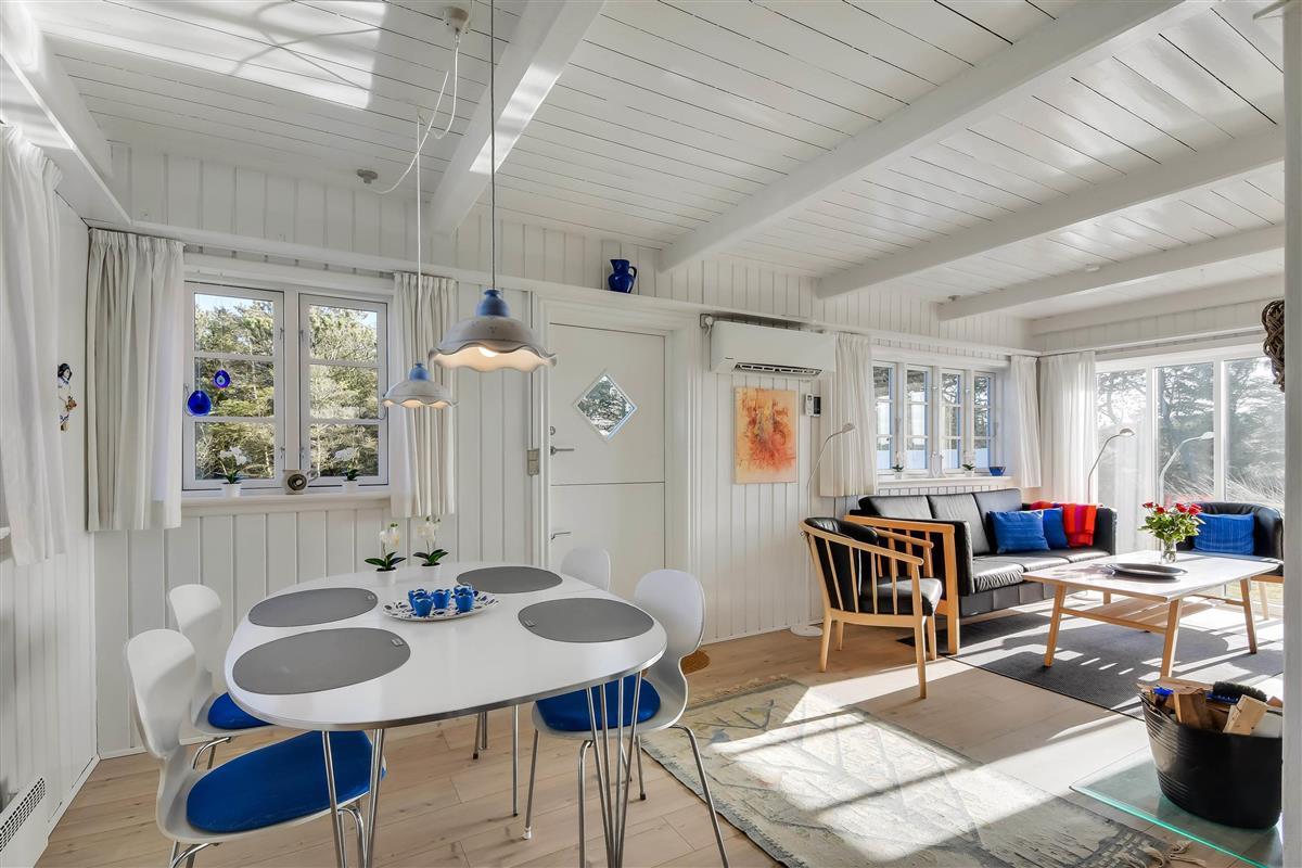In this charming, small retro house you can enjoy your holiday in the middle of the dune landscape. Here in the traditional part of Vedersø Klit it is particularly quiet and peaceful. From the large, west-facing window you can see the beautiful star-shaped seamark, sometimes in front of an indescribably beautiful sunset.