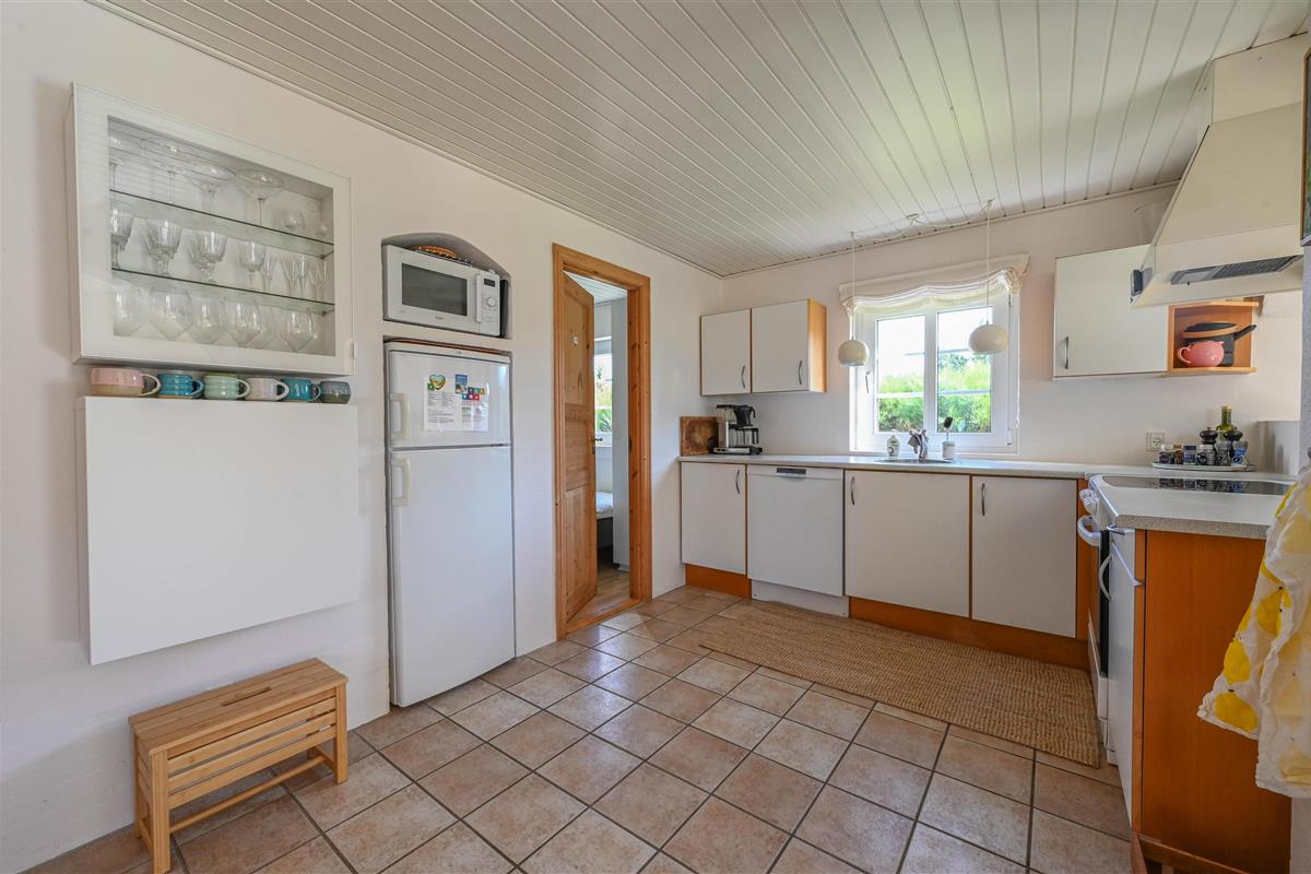 Draußen gibt es viel Platz zum Spielen und Entspannen. Das Grundstück ist von Bäumen umgeben, sodass ihr eure Privatsphäre in Ruhe genießen könnt. Auf der nach Südwesten ausgerichteten Terrasse könnt ihr die Sonne bis spät in den Abend hinein genießen oder den Kindern beim Spielen auf dem Rasen zusehen.
