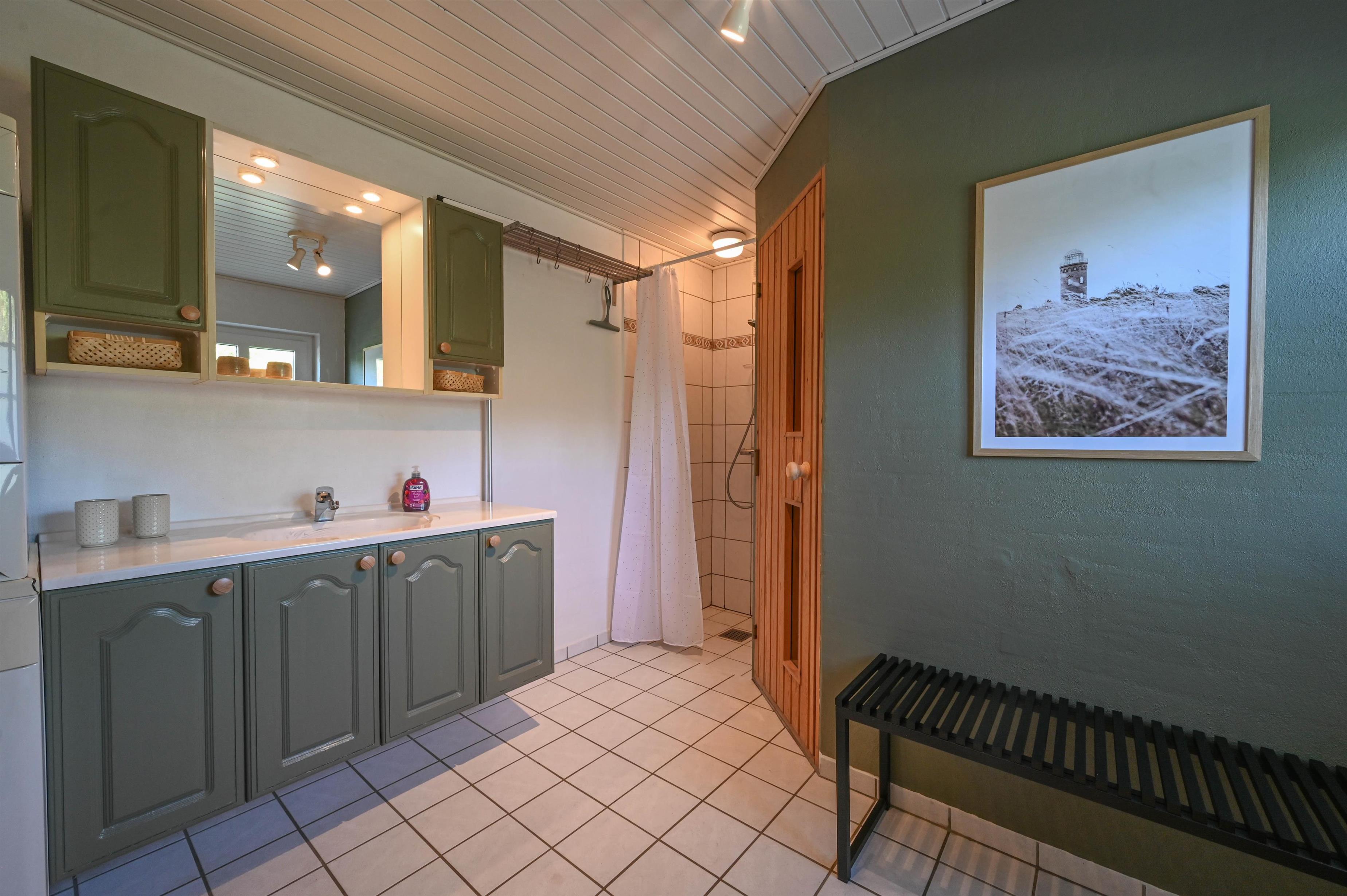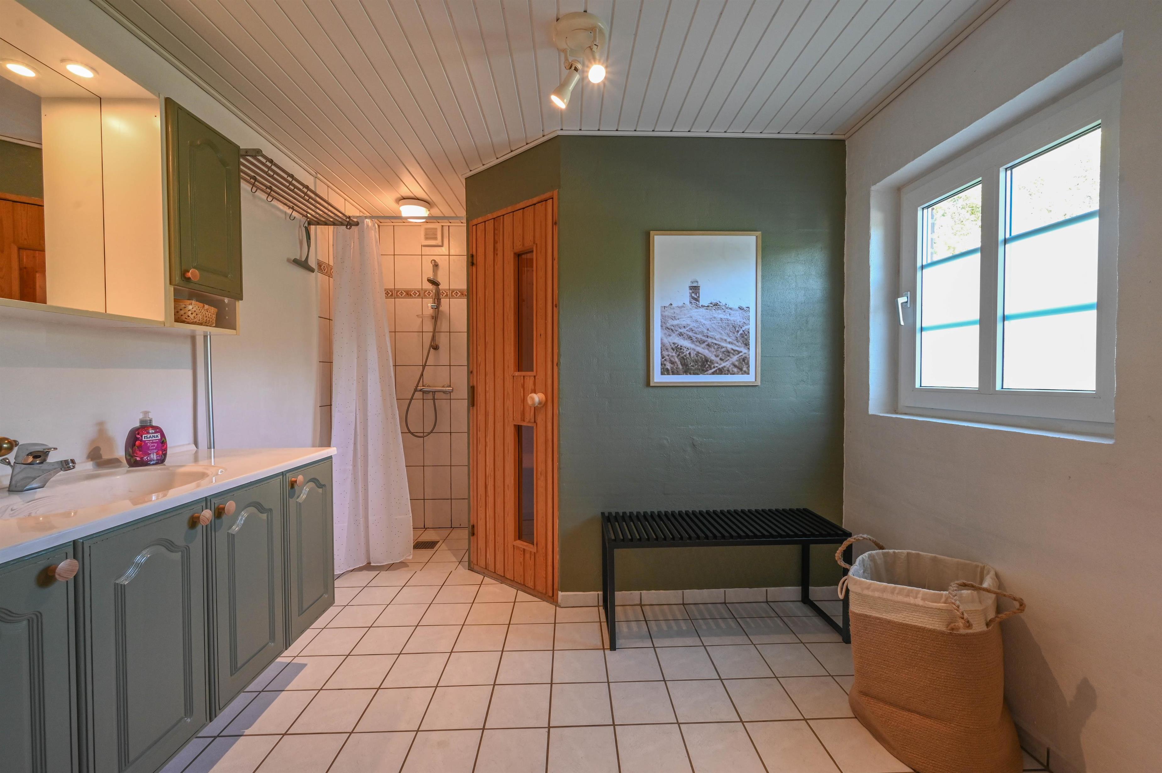 Das Haus ist hell und freundlich eingerichtet. Es verfügt über komfortable Möbel, die zum Entspannen und Beisammensein einladen. Das große, schöne Wohnzimmer geht nahtlos in die helle, offene Küche und einen gemütlichen Essbereich über. Dort kann sich die ganze Familie zum gemeinsamen Essen oder Spielen versammeln. Das Badezimmer ist geräumig und verfügt über eine Sauna – perfekt für ein bisschen Extra-Wellness nach einem langen Tag in der Natur.