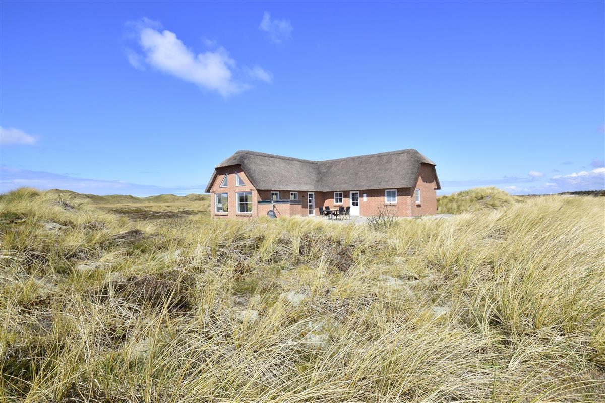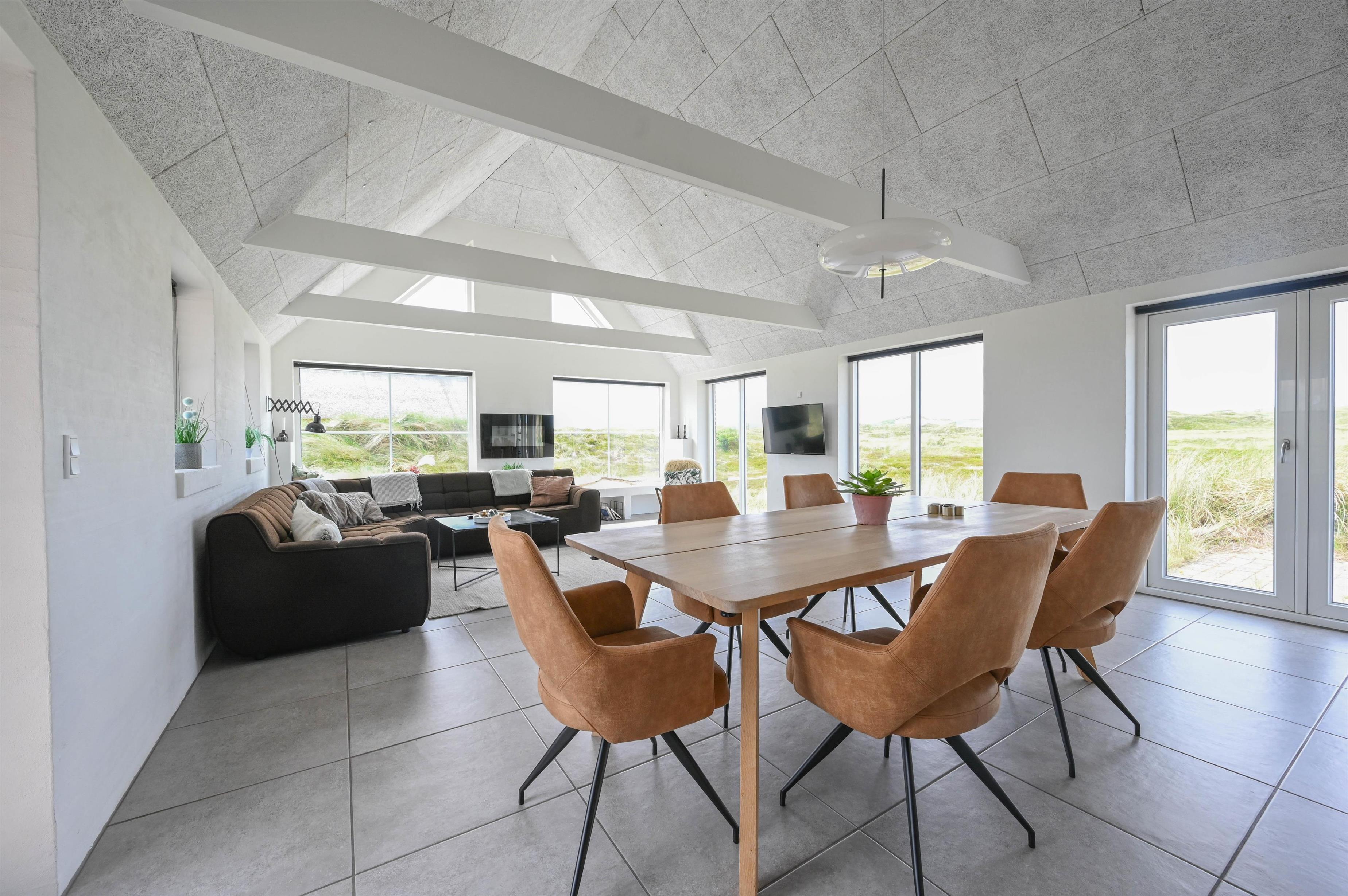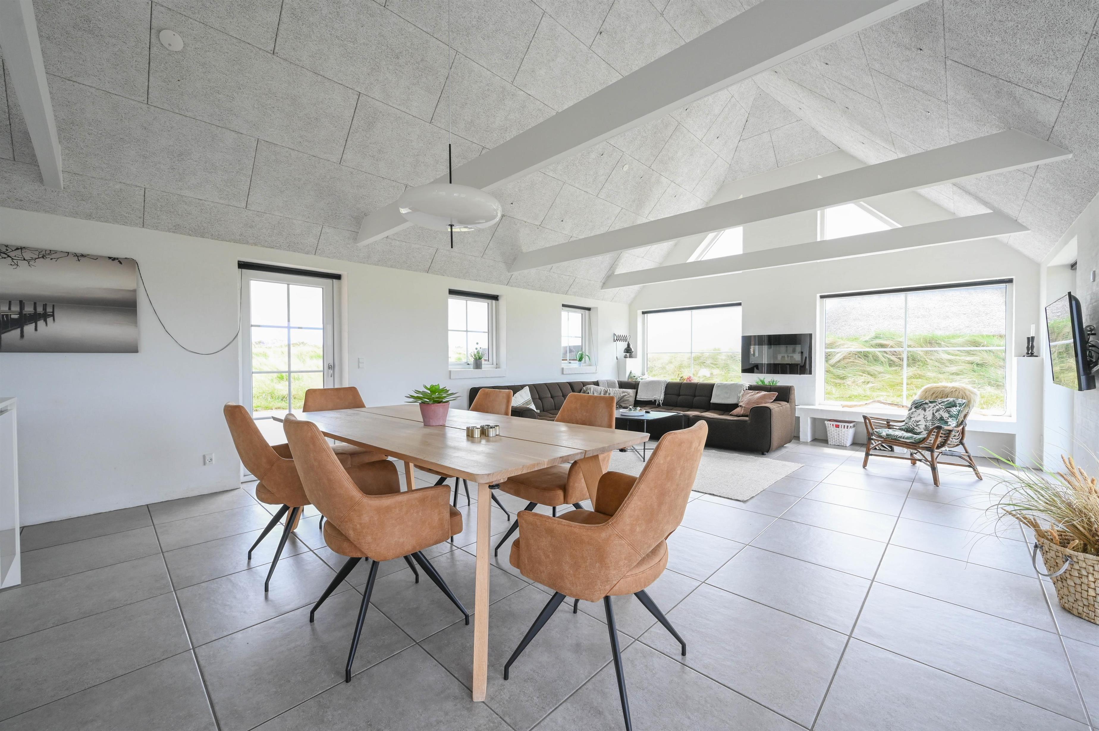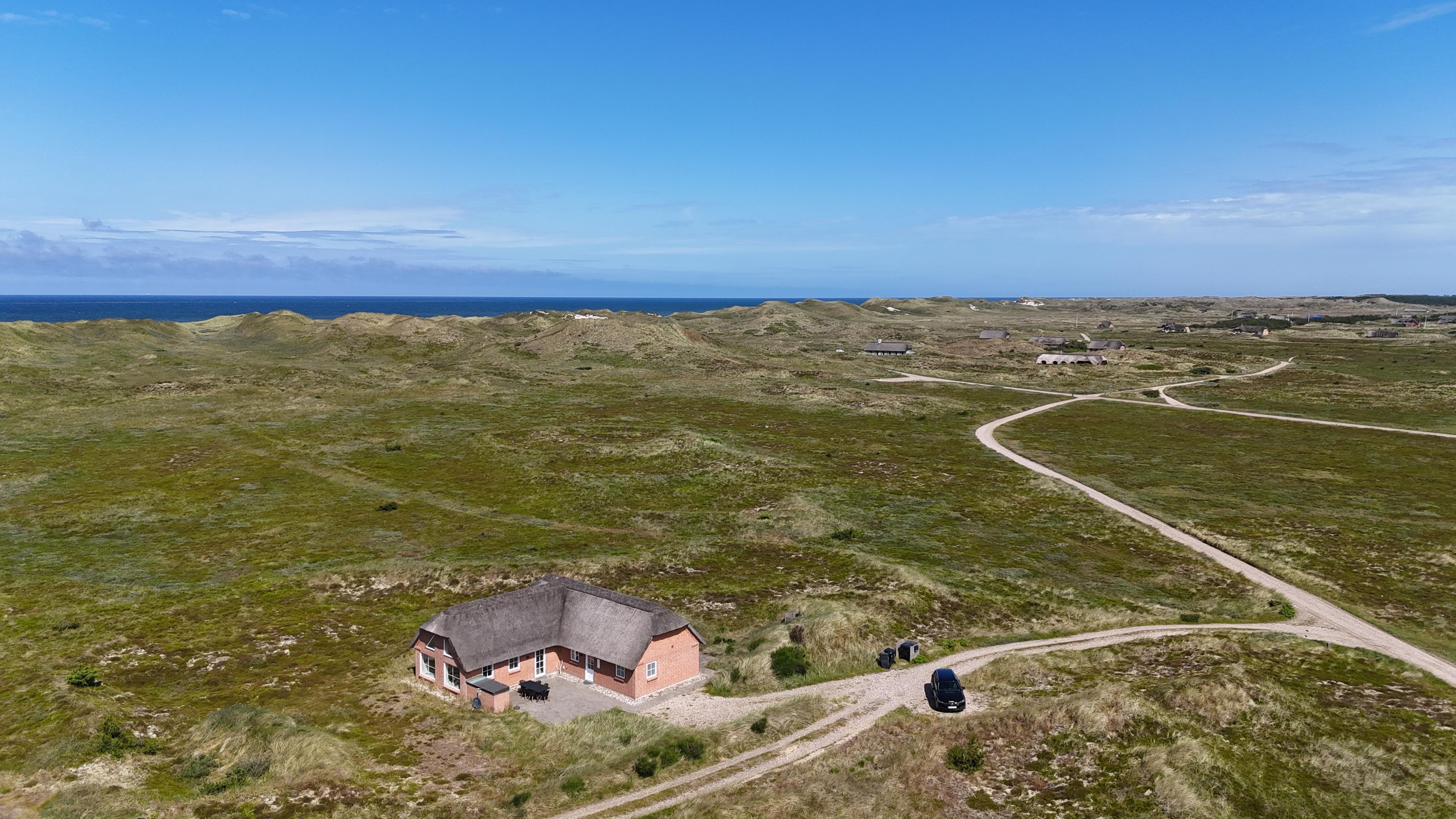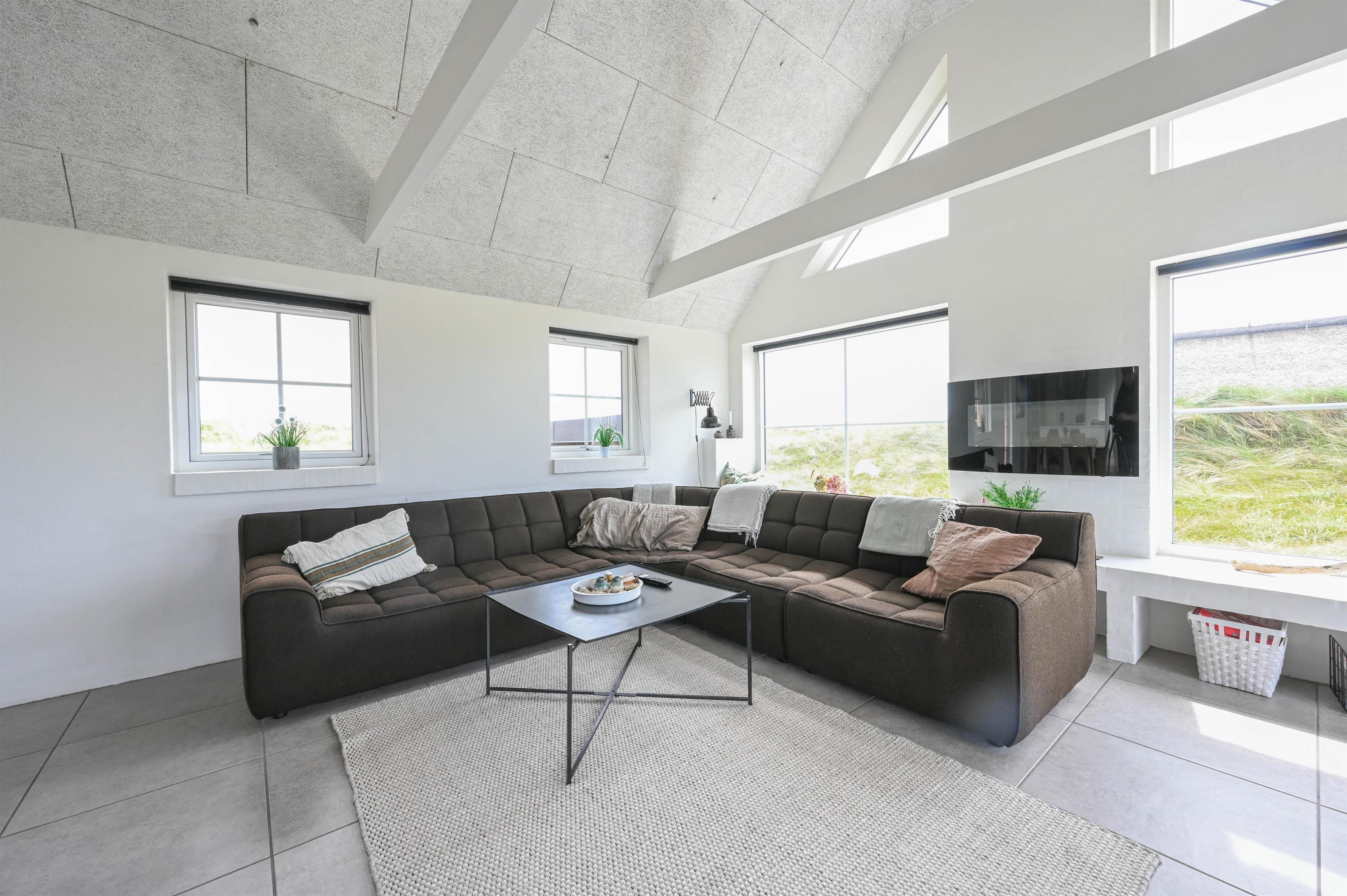 In the middle of the dunes, this beautiful holiday home with 121 square metres of living space is located on a huge 8,000 square metre natural plot. Actually, it is one of the very best plots in Vester Husby. From here you walk on a small path directly to the North Sea beach, which is only 400 m away. High, bright and modern rooms with a beautiful view of the dunes await you here.