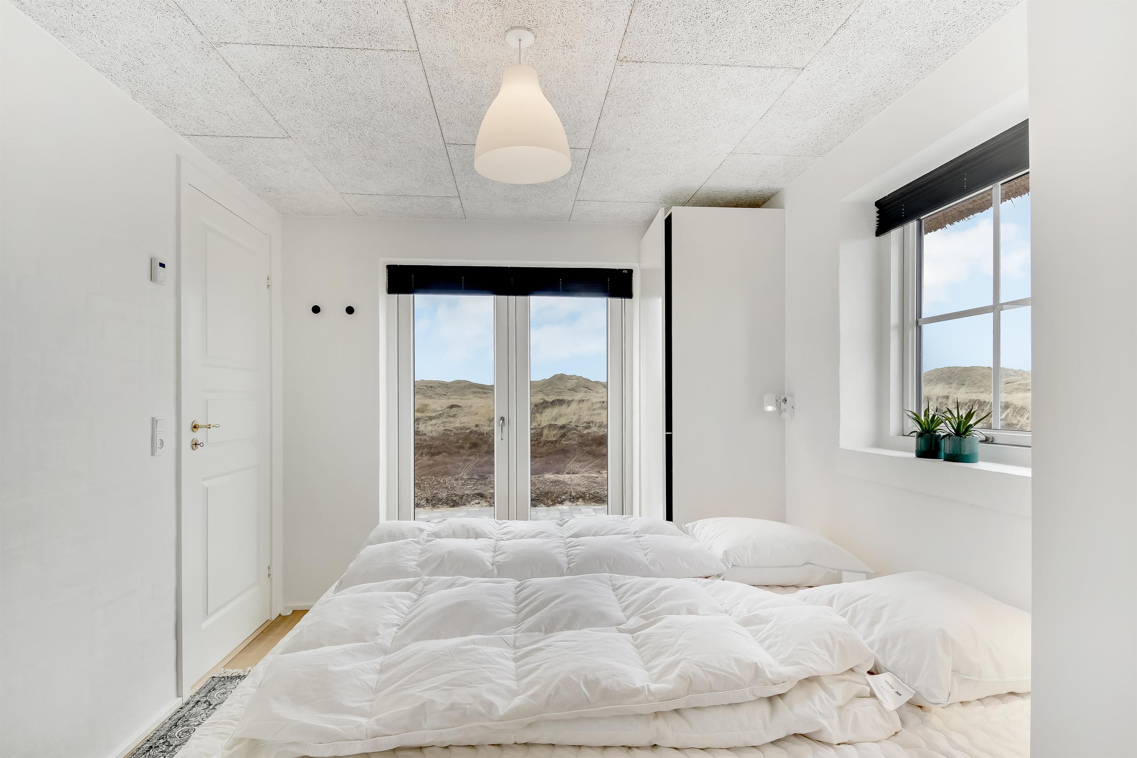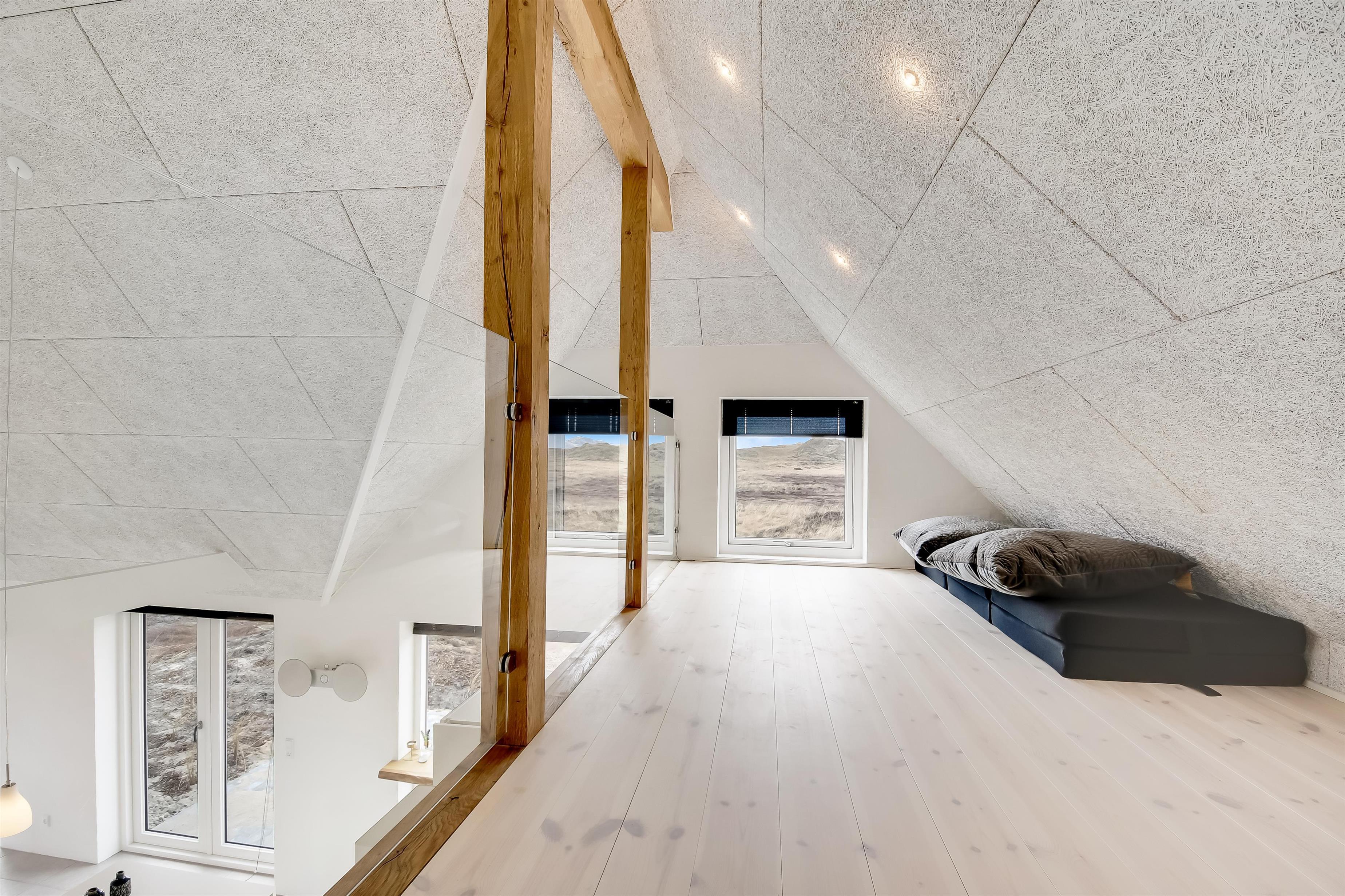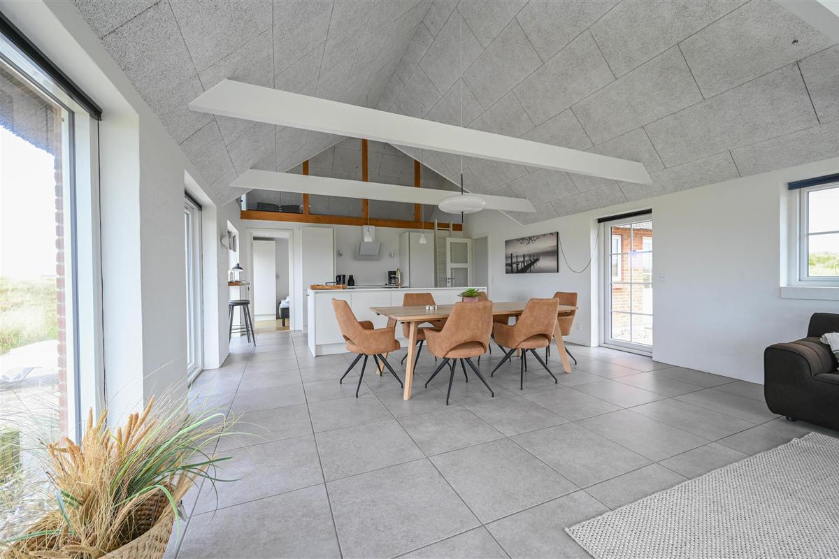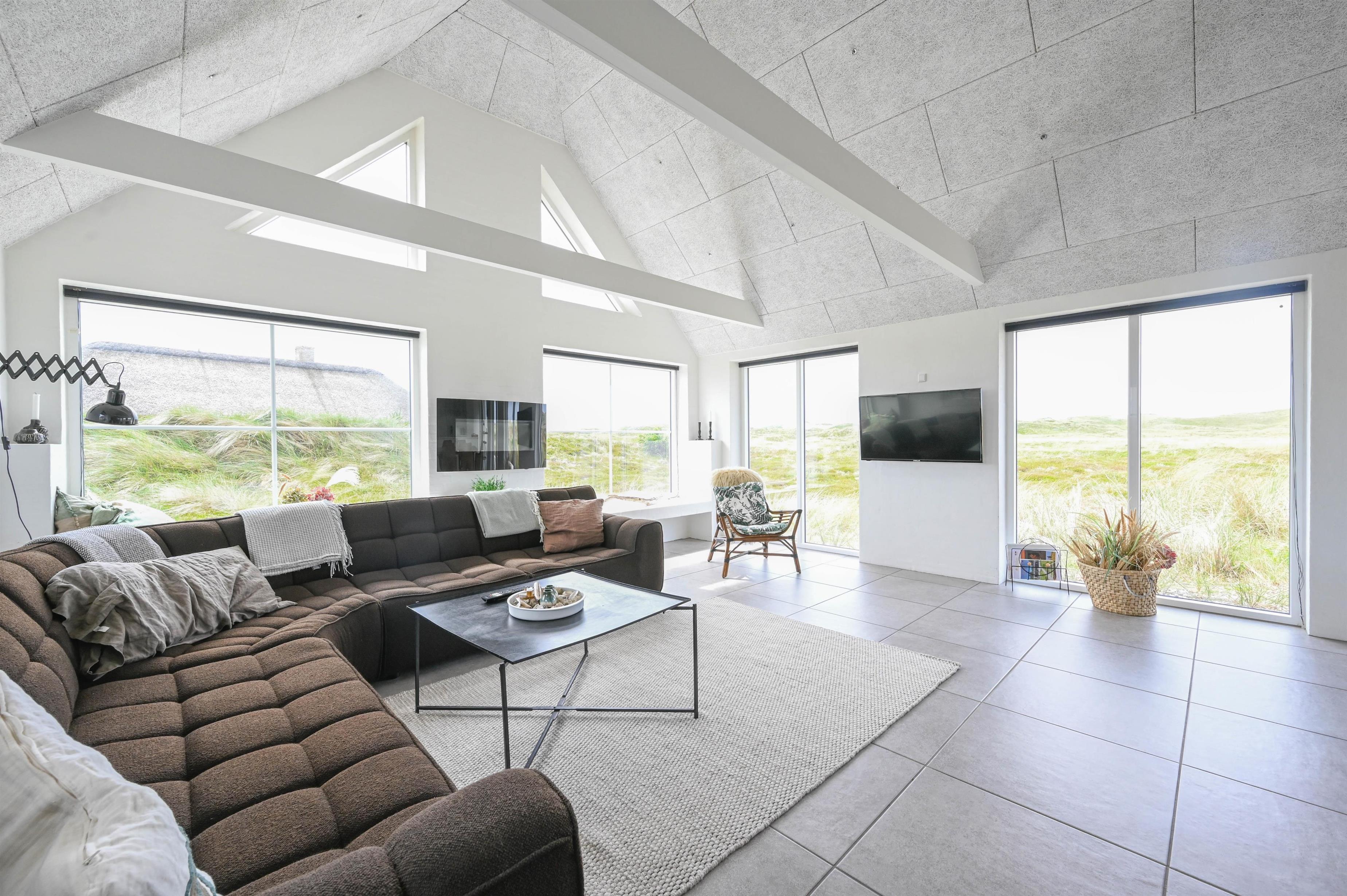 In the middle of the dunes, this beautiful holiday home with 121 square metres of living space is located on a huge 8,000 square metre natural plot. Actually, it is one of the very best plots in Vester Husby. From here you walk on a small path directly to the North Sea beach, which is only 400 m away. High, bright and modern rooms with a beautiful view of the dunes await you here.