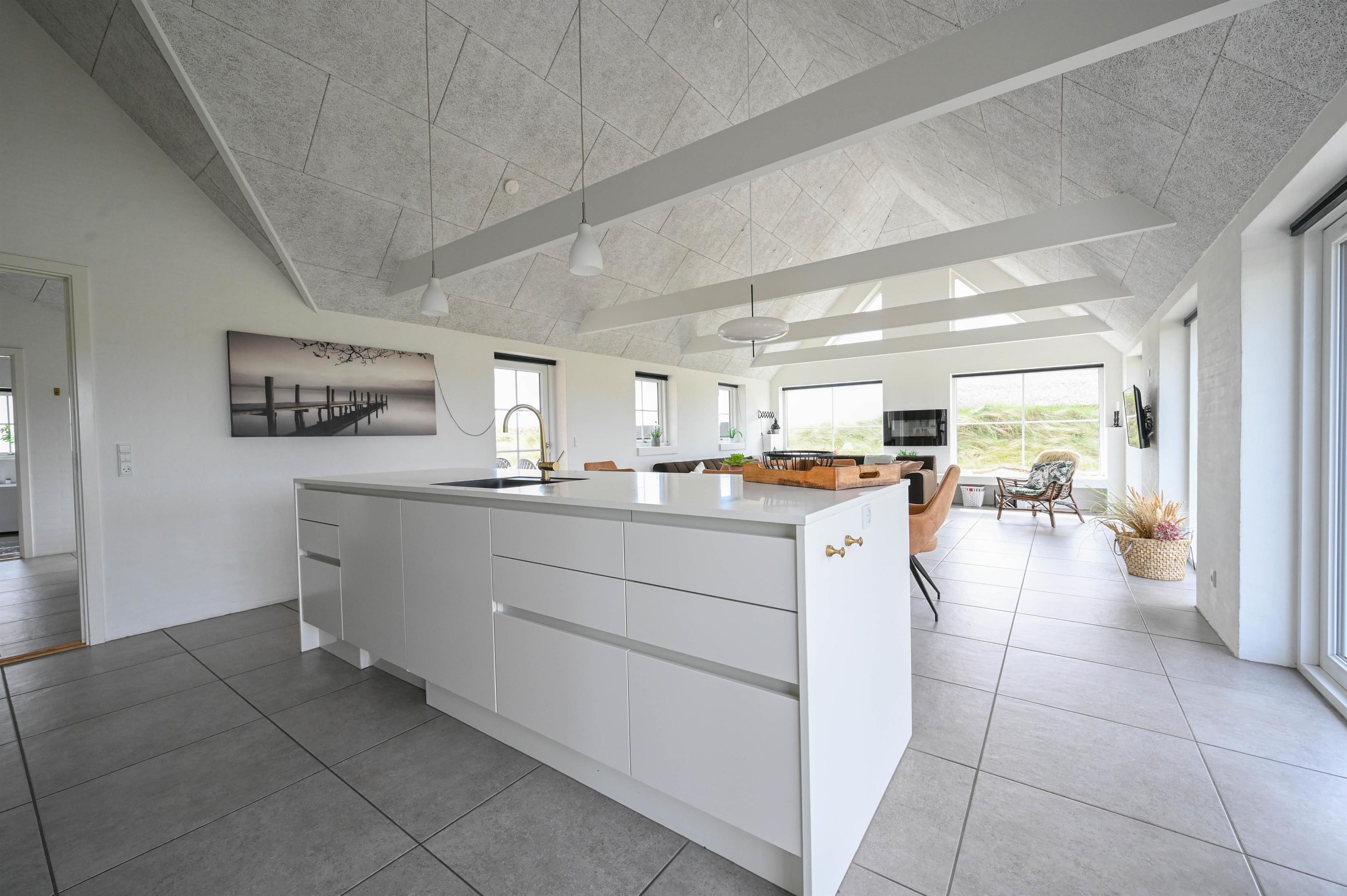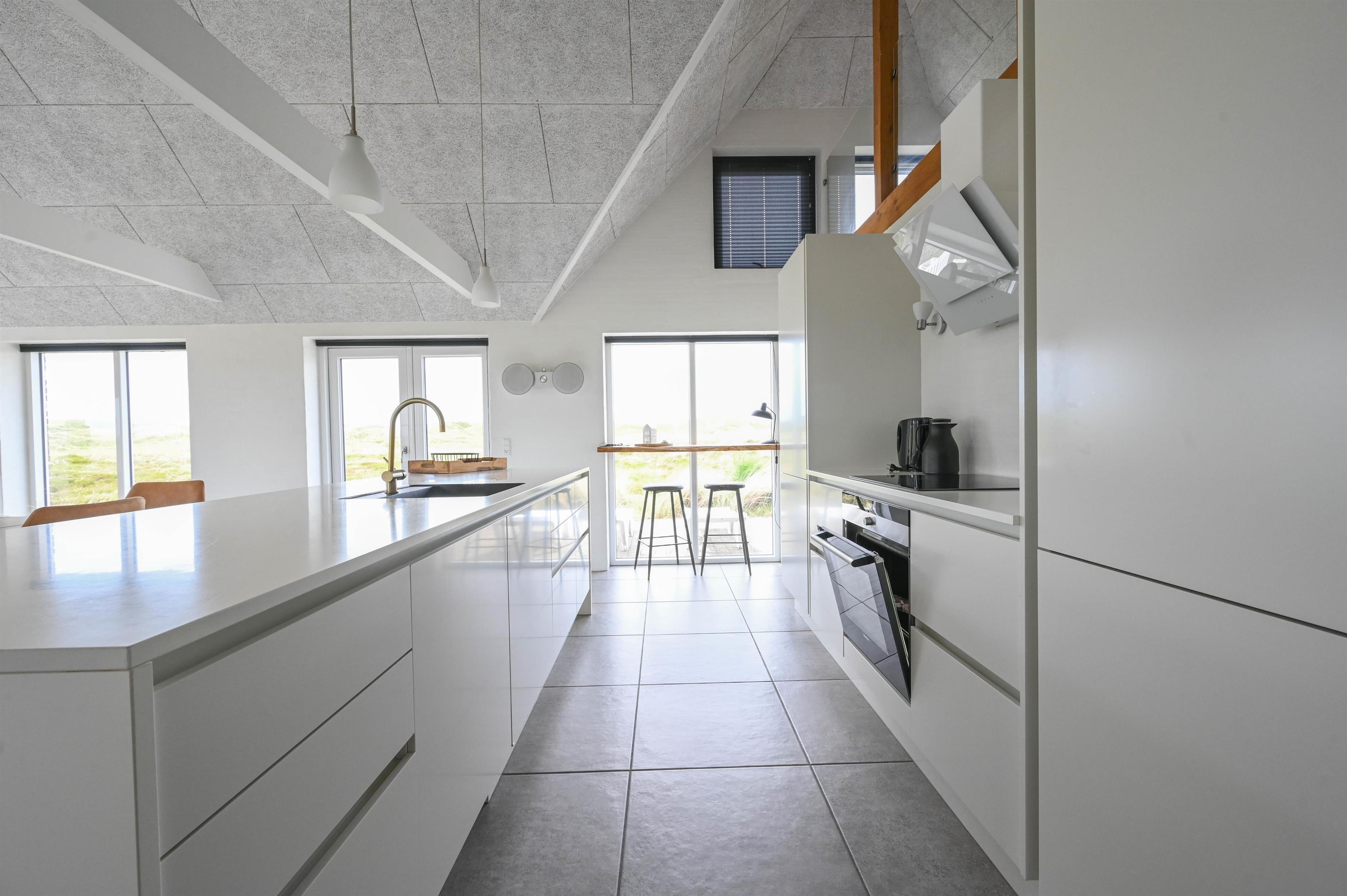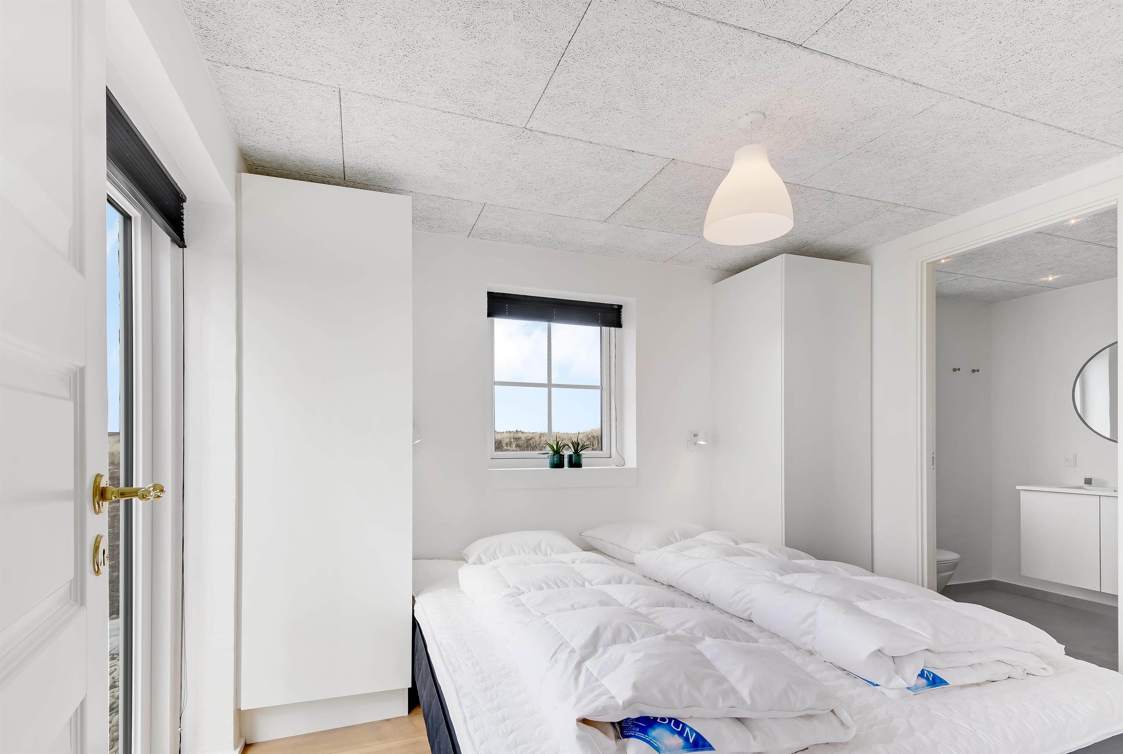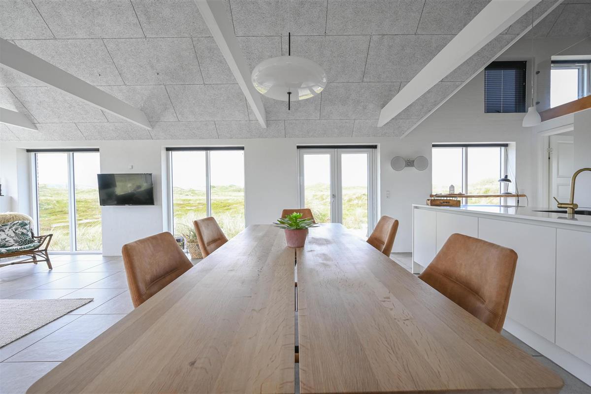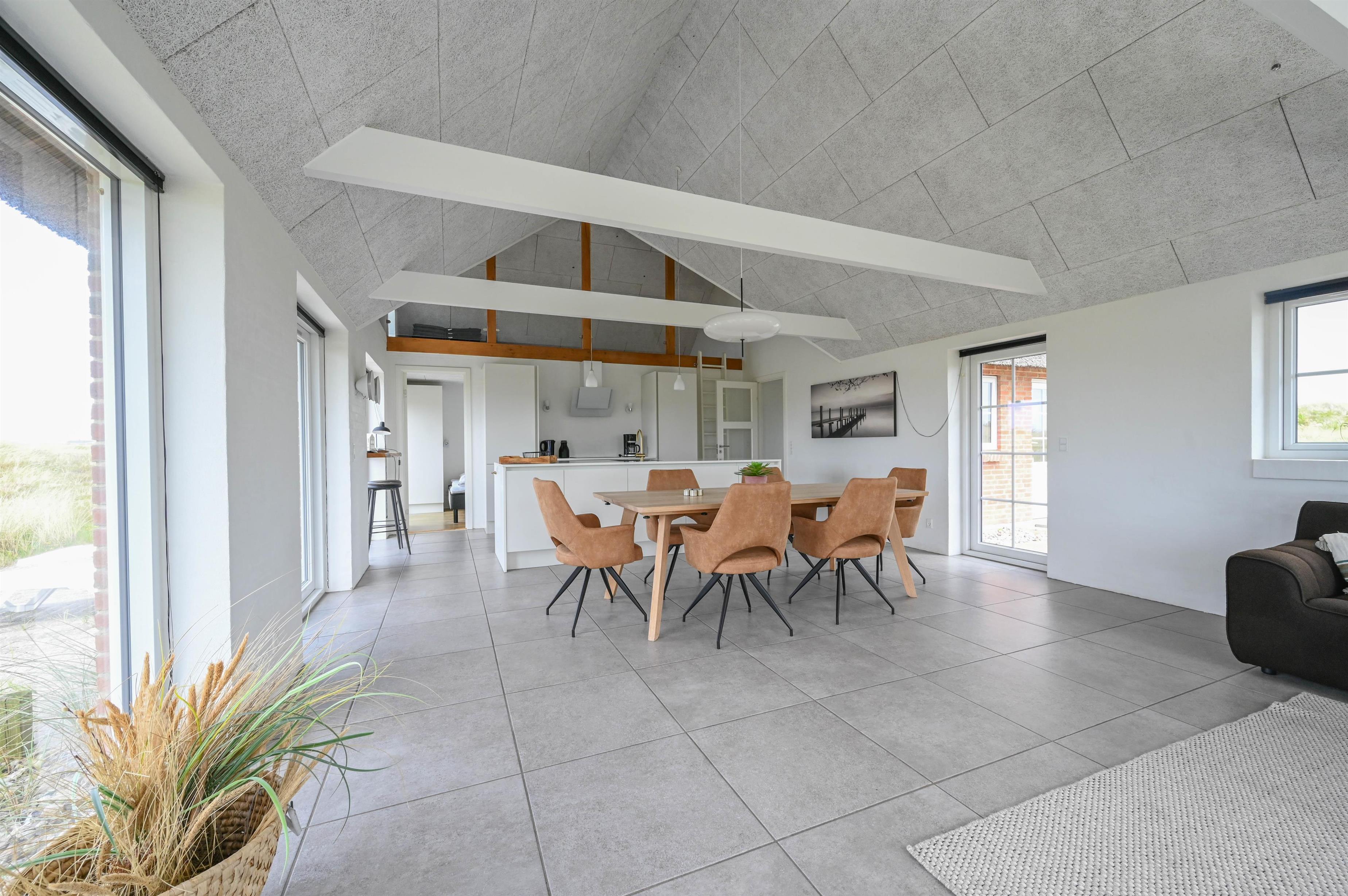 In the middle of the dunes, this beautiful holiday home with 121 square metres of living space is located on a huge 8,000 square metre natural plot. Actually, it is one of the very best plots in Vester Husby. From here you walk on a small path directly to the North Sea beach, which is only 400 m away. High, bright and modern rooms with a beautiful view of the dunes await you here.