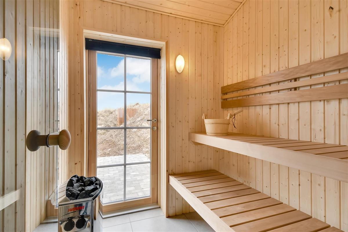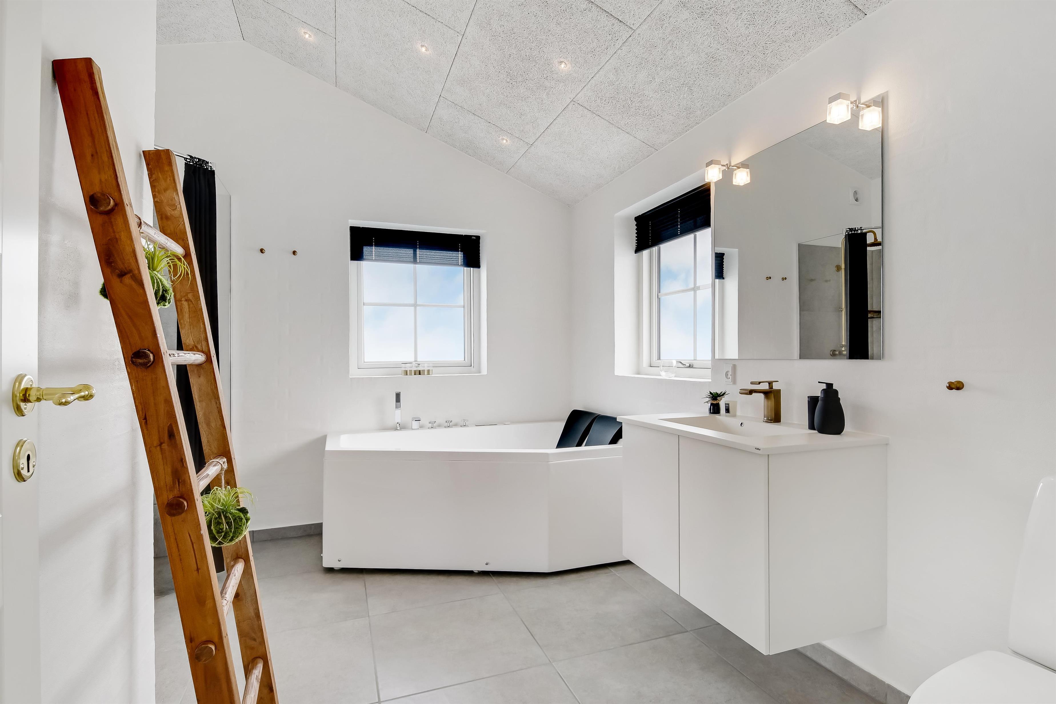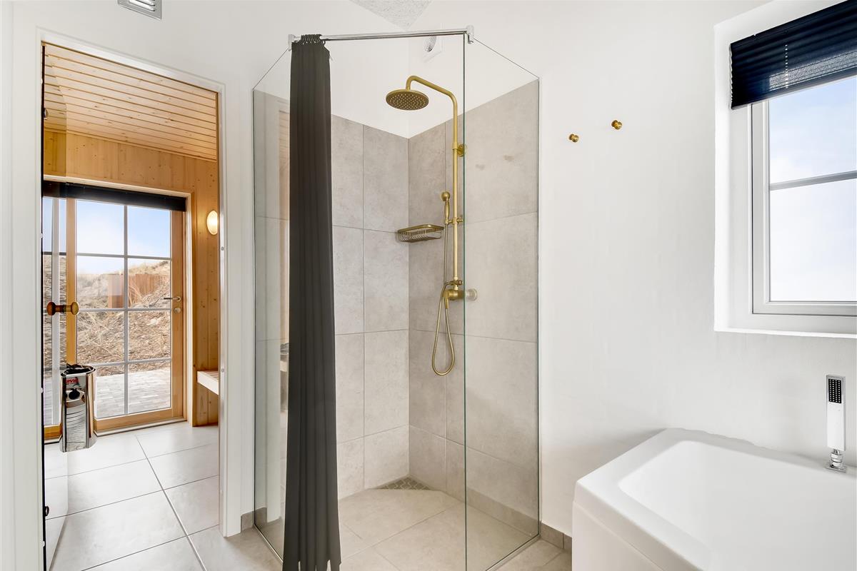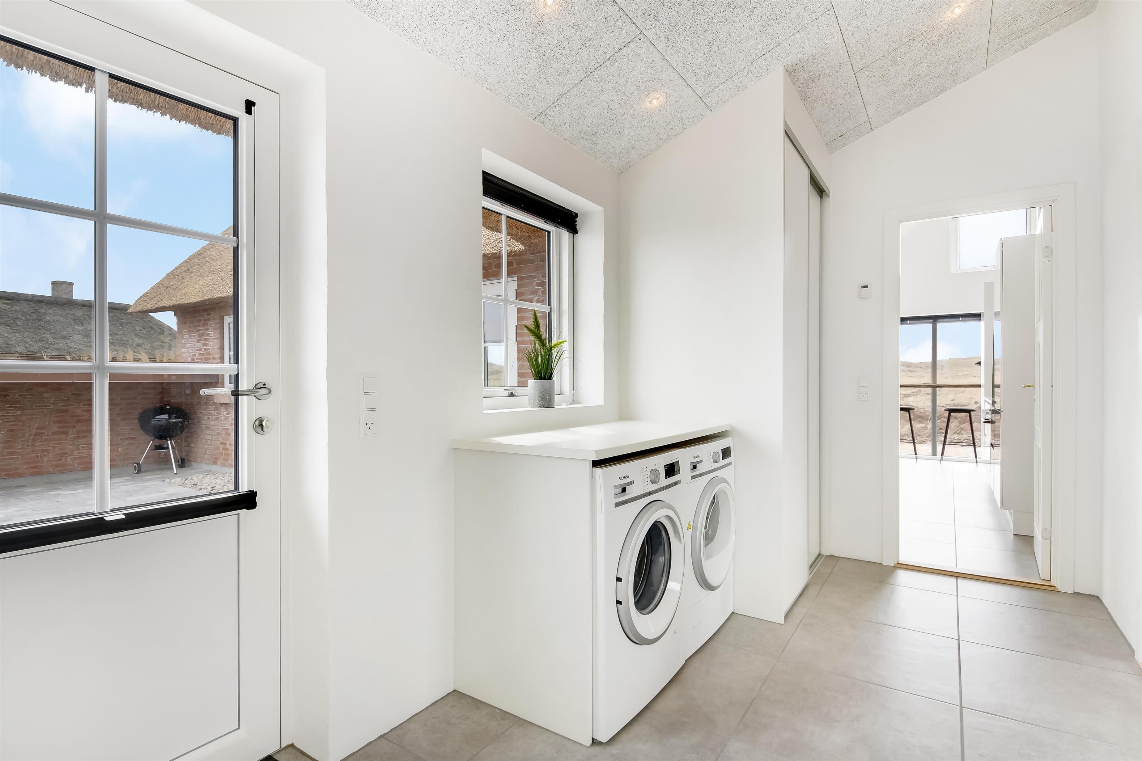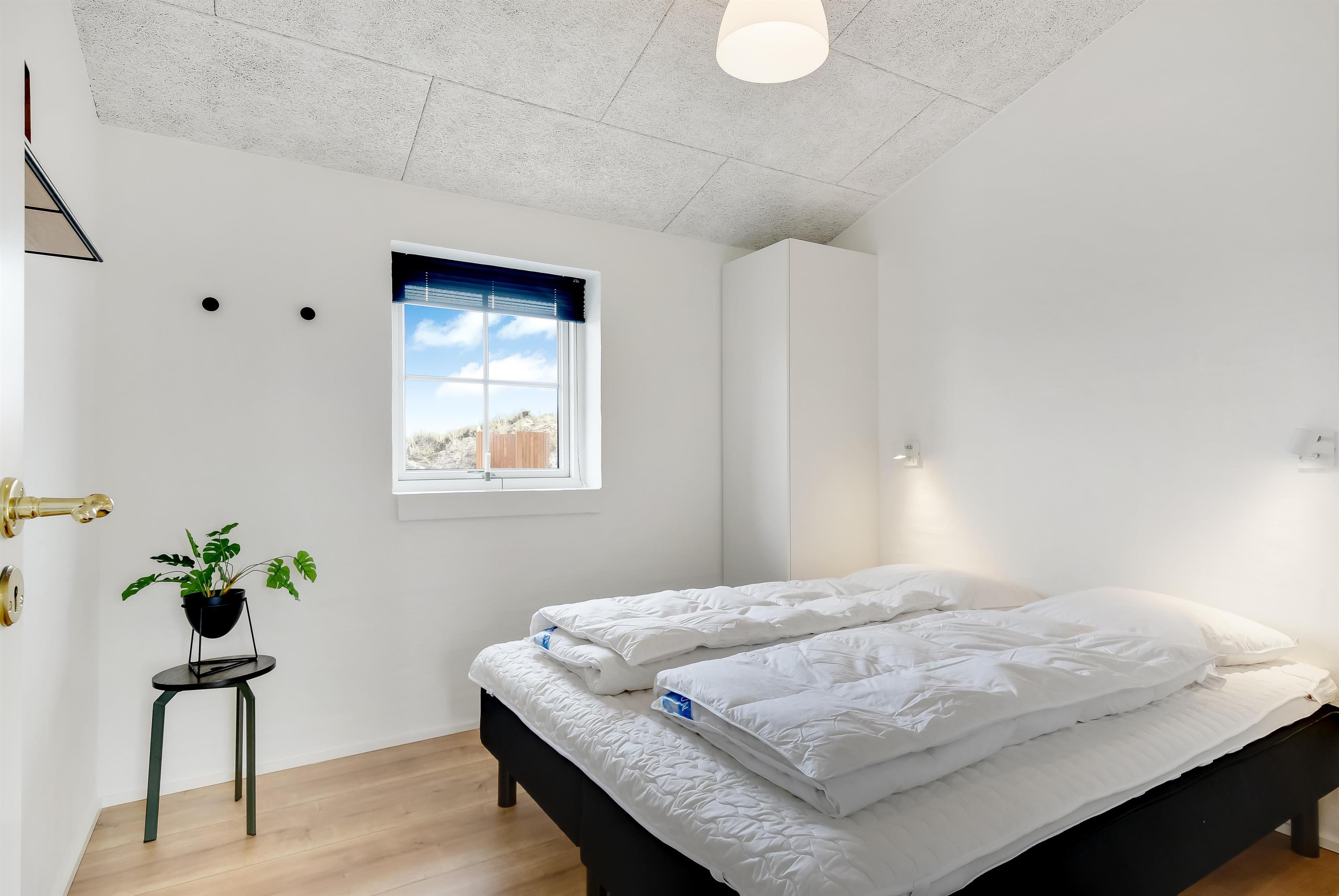 In the middle of the dunes, this beautiful holiday home with 121 square metres of living space is located on a huge 8,000 square metre natural plot. Actually, it is one of the very best plots in Vester Husby. From here you walk on a small path directly to the North Sea beach, which is only 400 m away. High, bright and modern rooms with a beautiful view of the dunes await you here.