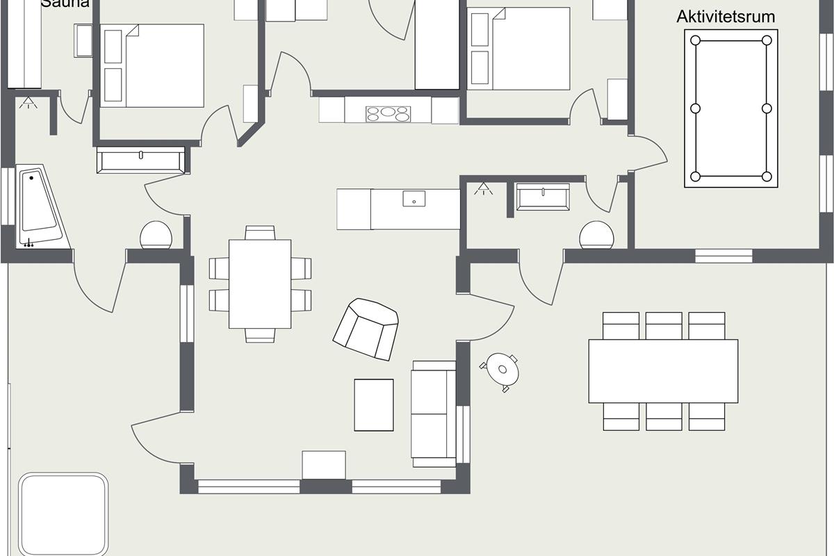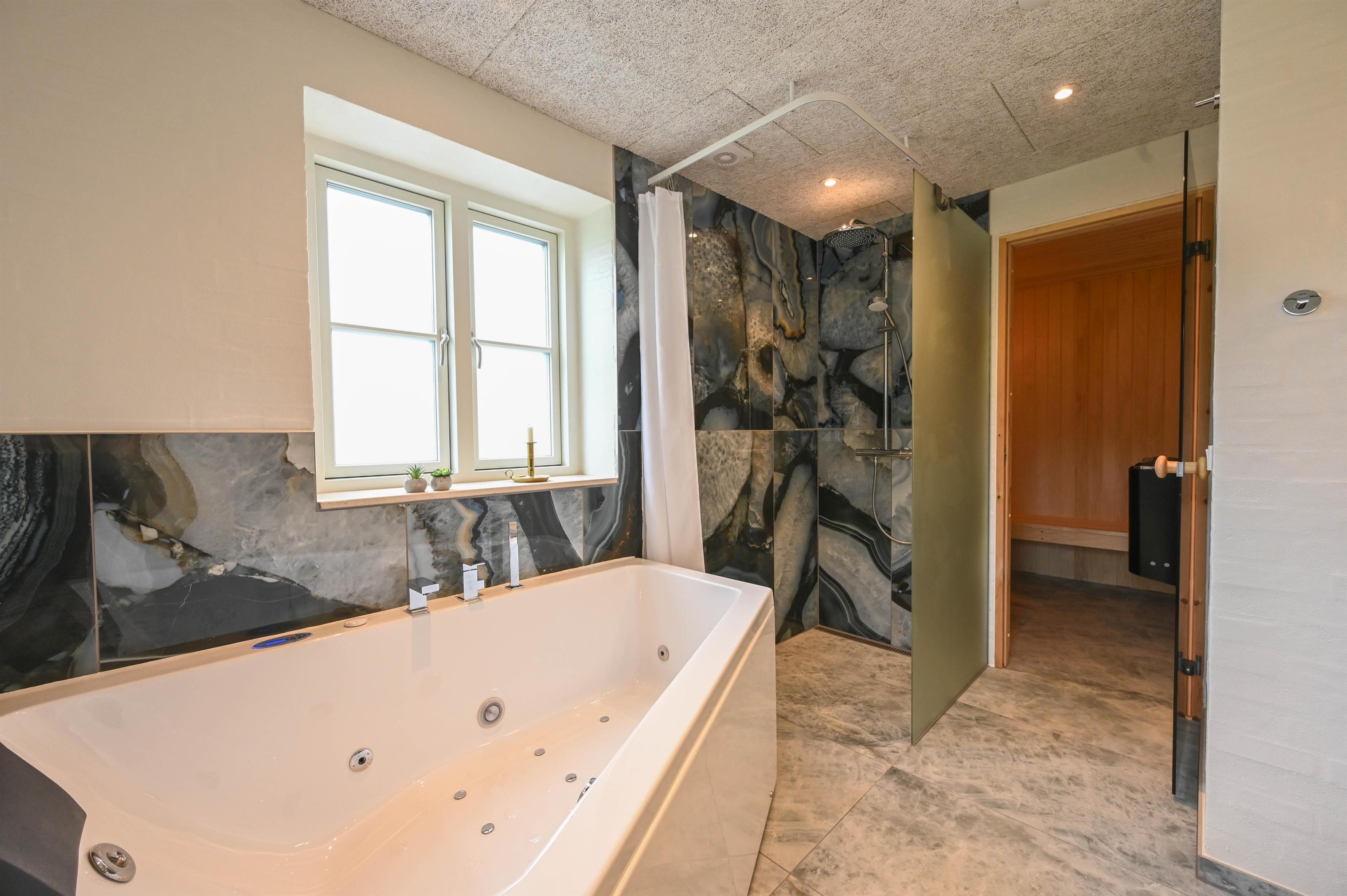 Relax in the sauna or luxury whirlpool, be active and have fun in the hobby room, e.g. at pool. There's even an outdoor hot tub with an unobstructed view of the starry sky. In this holiday home you have a lot of possibilities. And you can find good shopping facilities for your daily needs nearby, in Sdr. Nissum or Ulfborg.