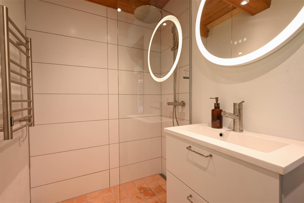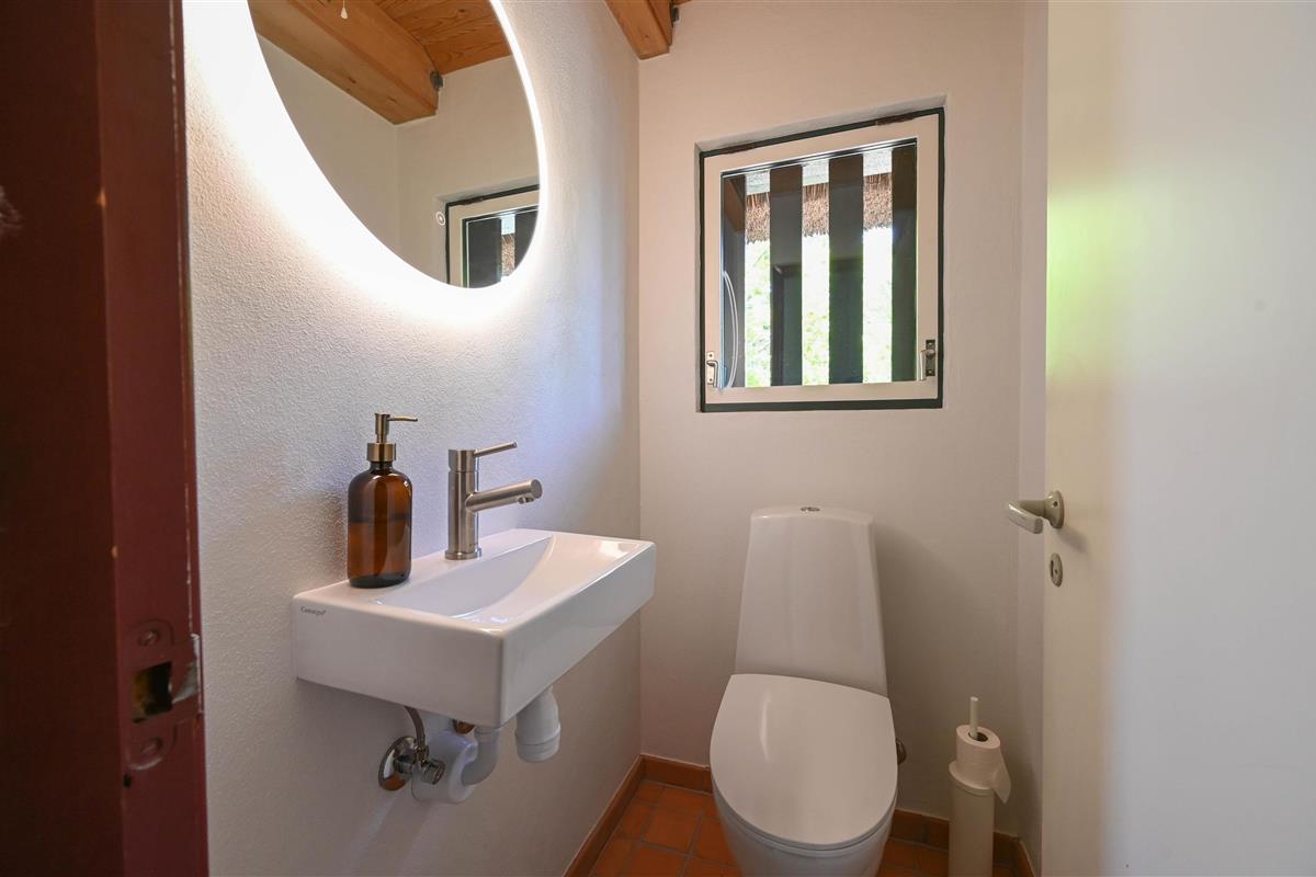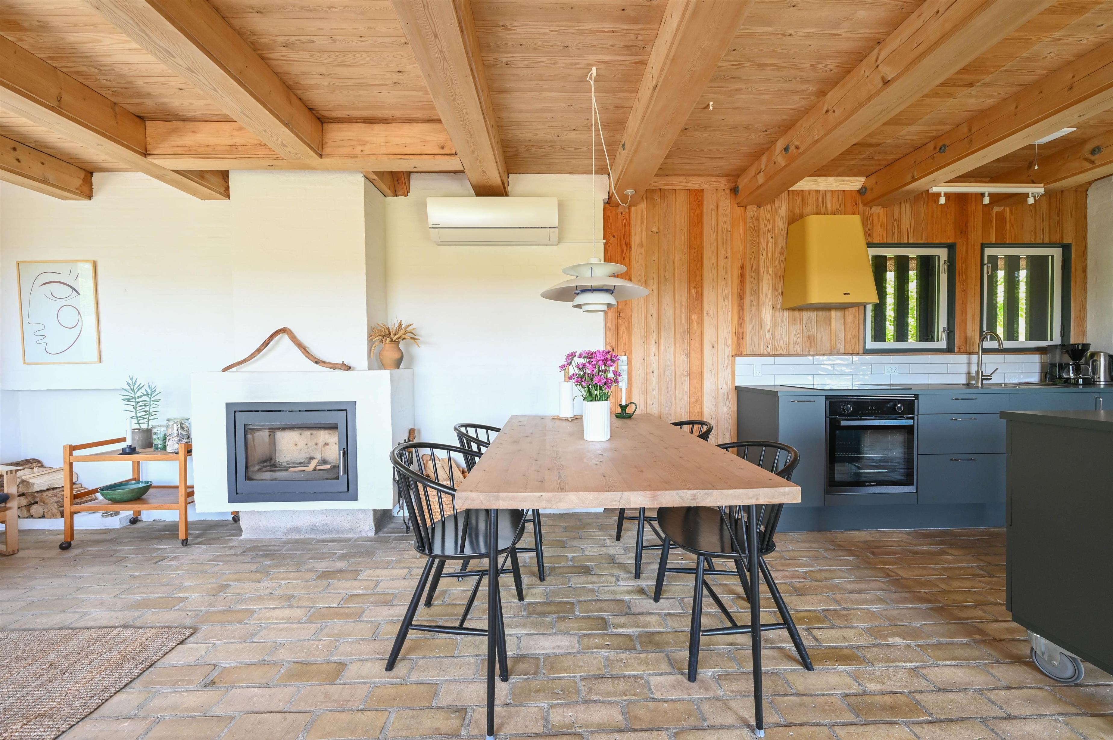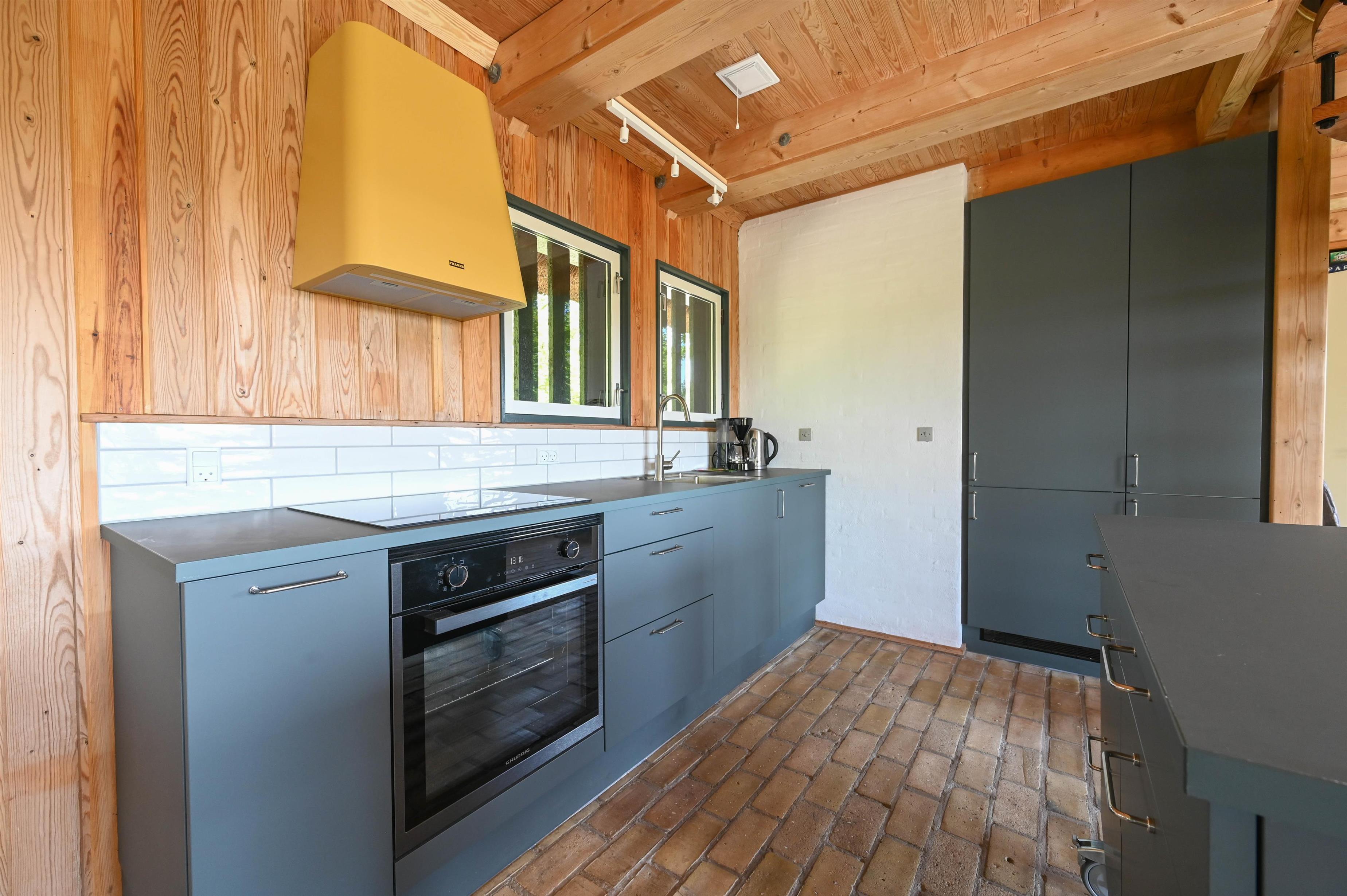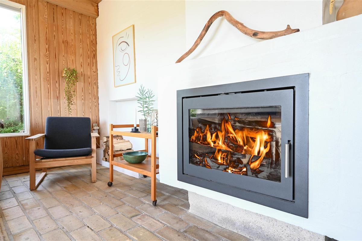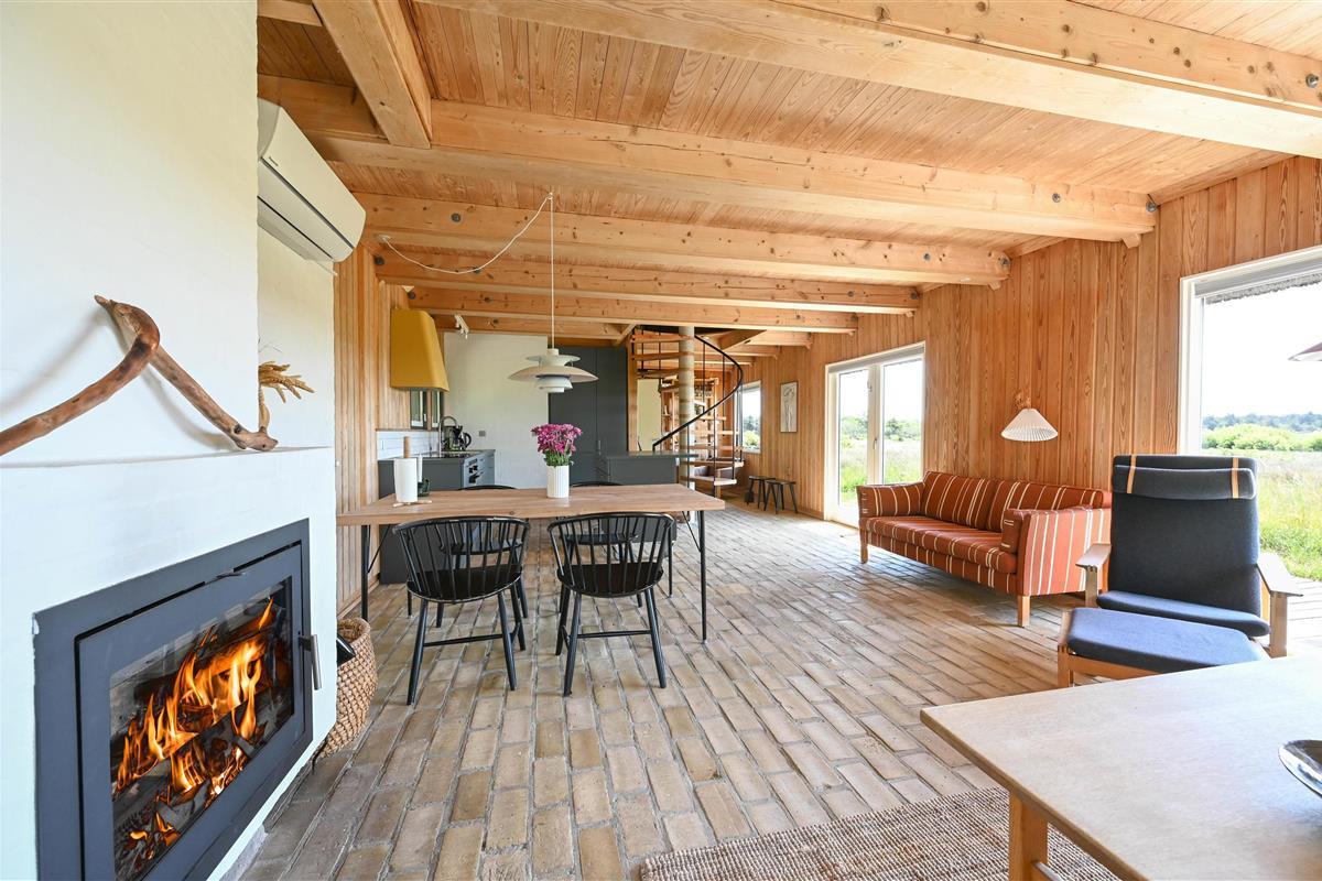 Layout: Entrance hallway with space for clothes. Small guest toilet. Utility room / hallway with access to the sauna. Nice bathroom with shower, toilet and underfloor heating. The open kitchen is bright and has large windows facing south, here you can enjoy the wide view over the fields to the dunes. The living room has a built-in wood stove and a central heat pump.