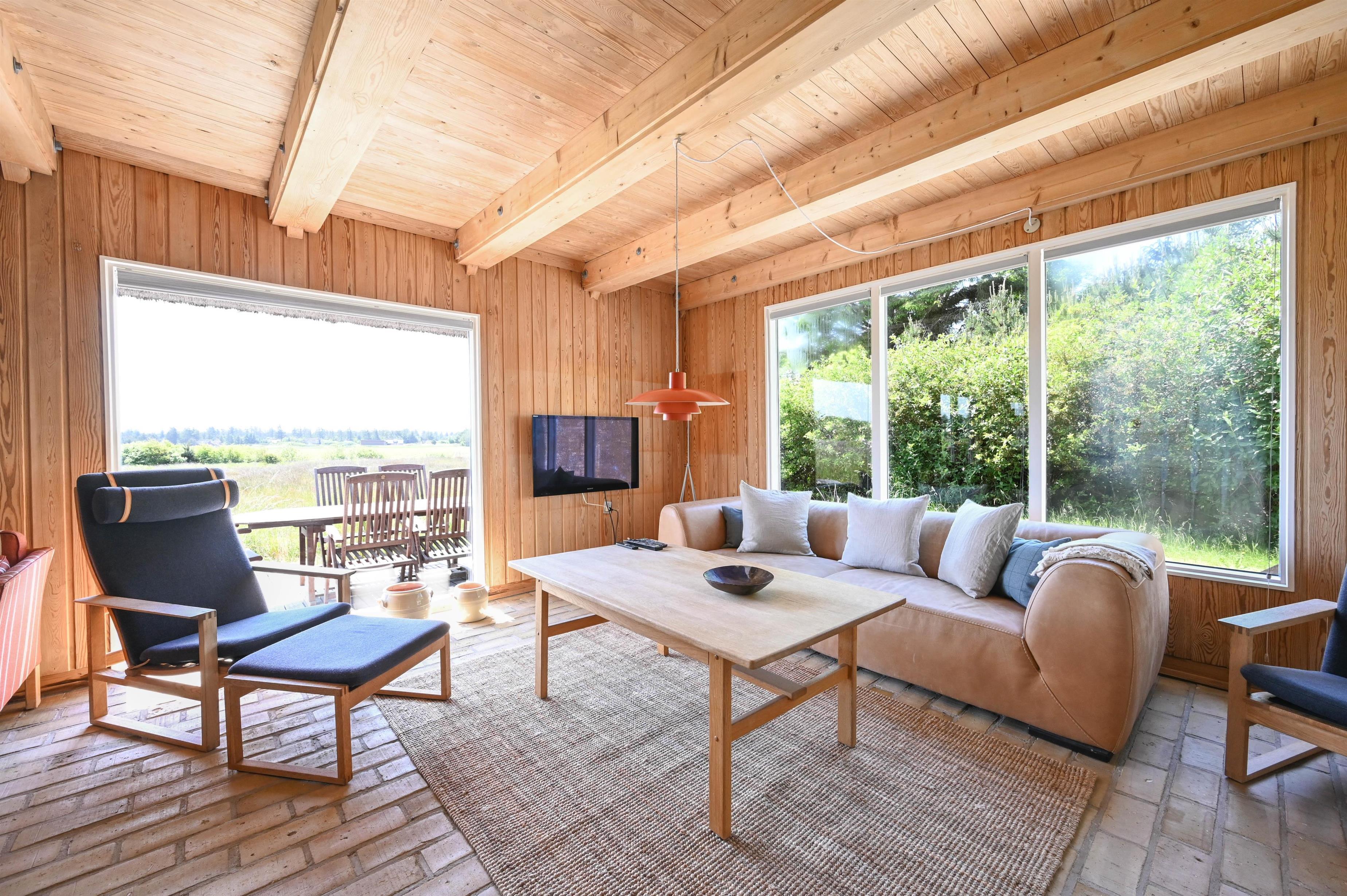 This renovated, tastefully furnished holiday home is located right on the edge of the Husby Klitplantage. Here you have an unobstructed view of the dunes and are quickly on the North Sea beach. Outside the summer season, you may be particularly happy about the beautiful sauna.