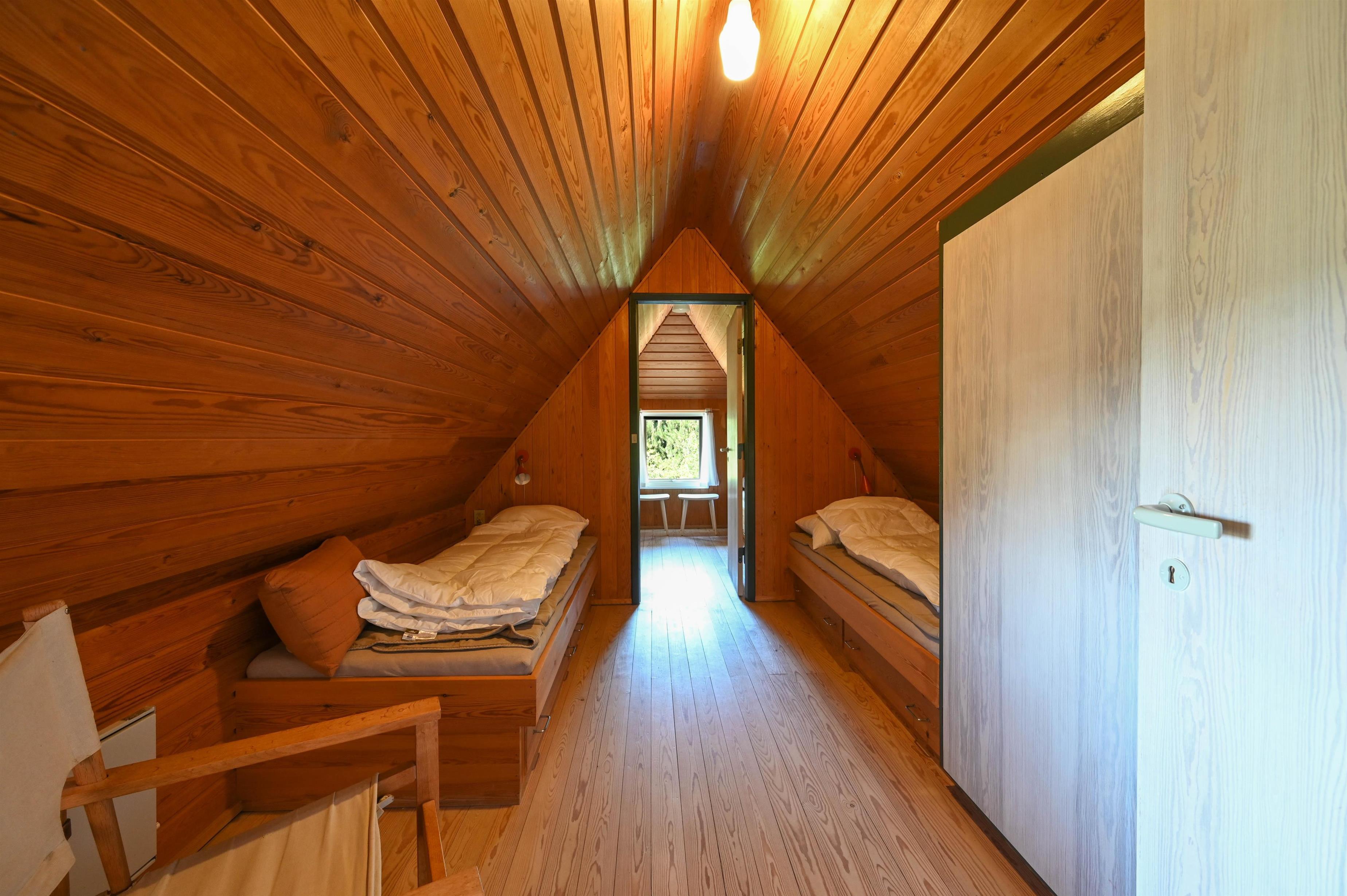 On the first floor there are 2 beautiful bedrooms. One with two single beds, the other with a double bed. Between the two rooms there is another room that can be used as a playroom or as an extra bedroom.
