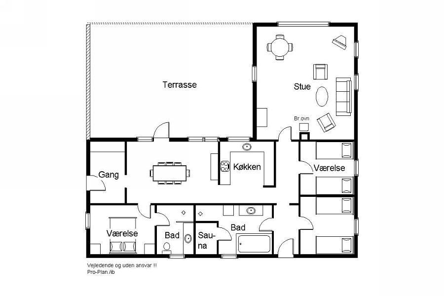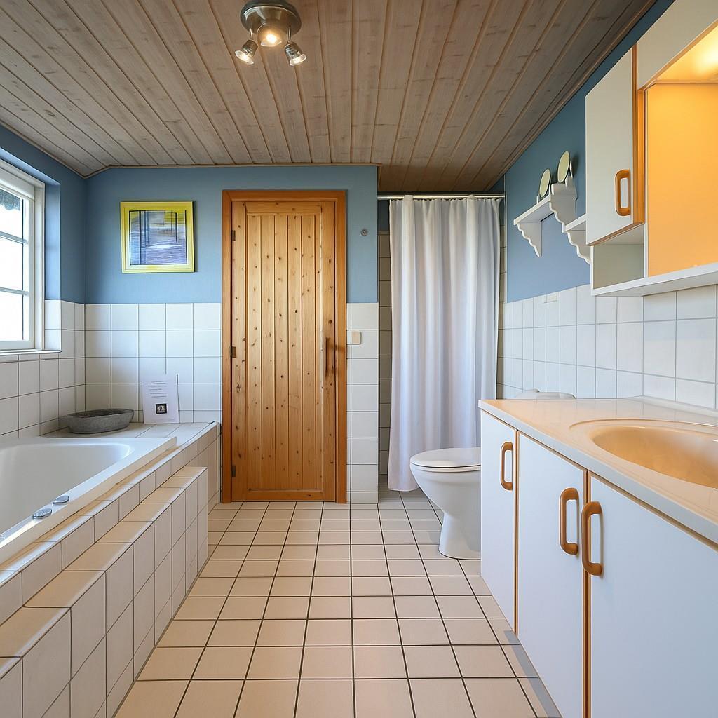 Layout: Hallway, kitchen with separate dining area and access to the terrace. Cosy living room with fireplace. A total of 3 bedrooms, one of which has a double bed and en-suite bathroom. Two further bedrooms with 2 single beds each. Large bathroom with jacuzzi and sauna. Freezer possibility approx. 60 l.