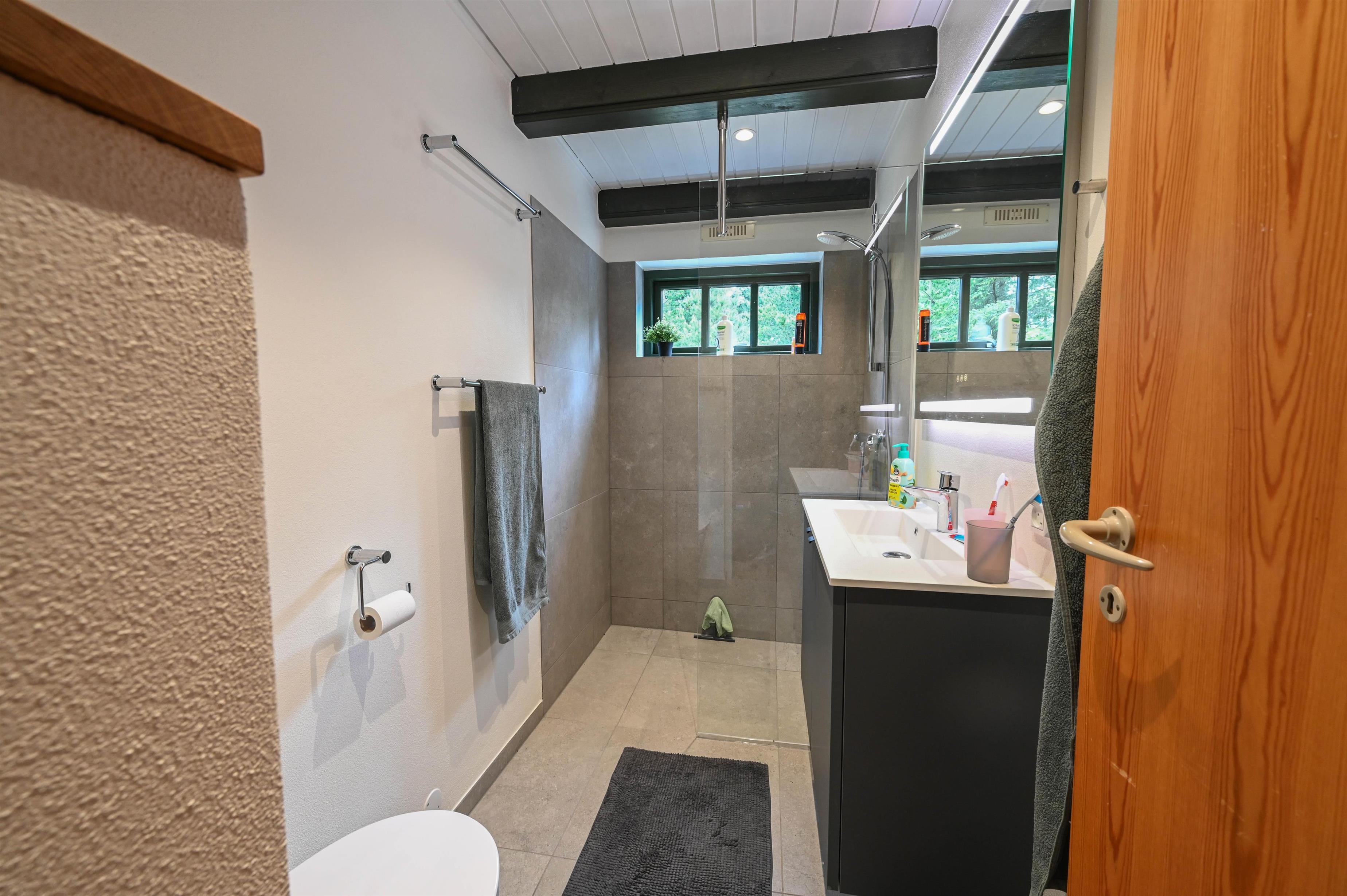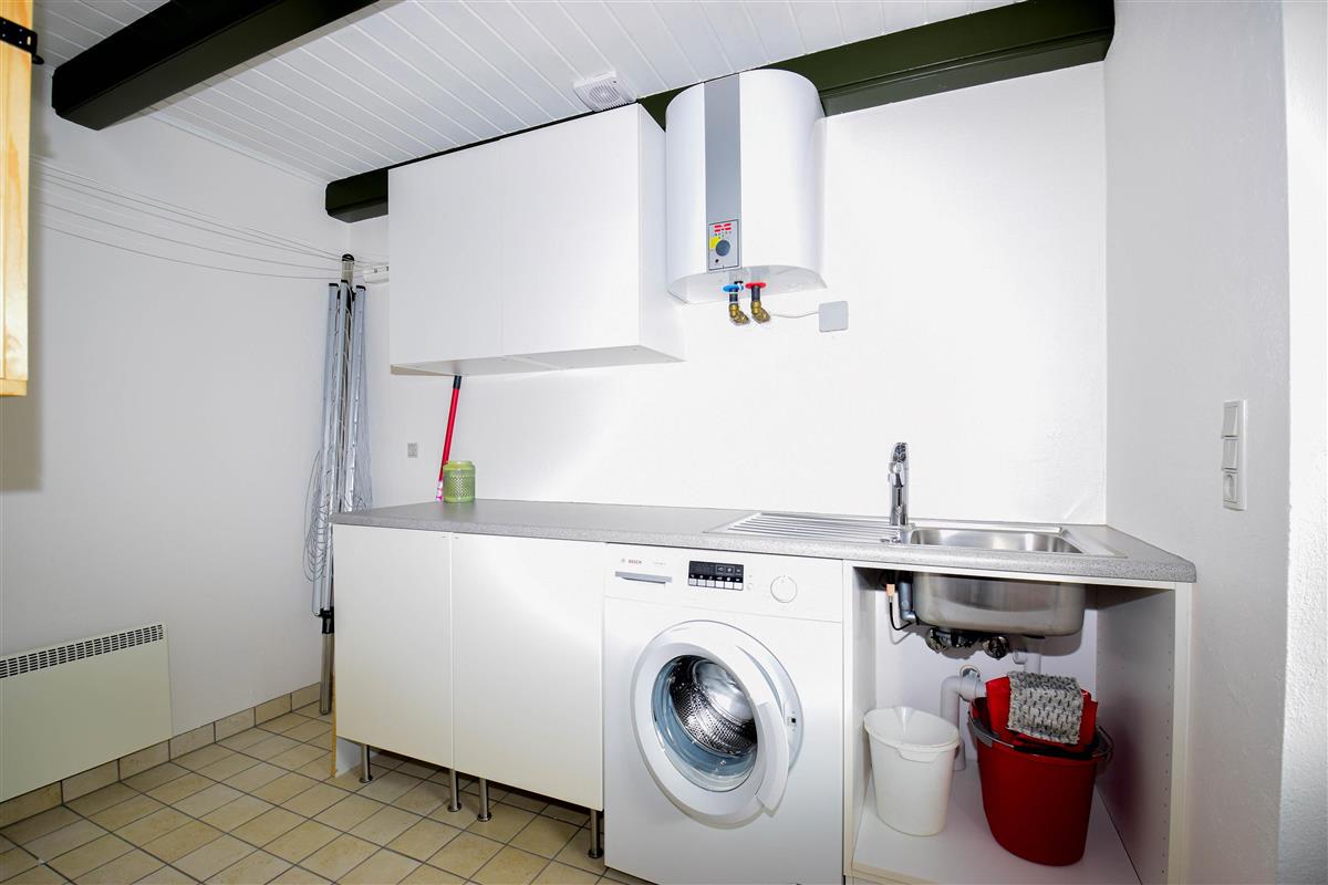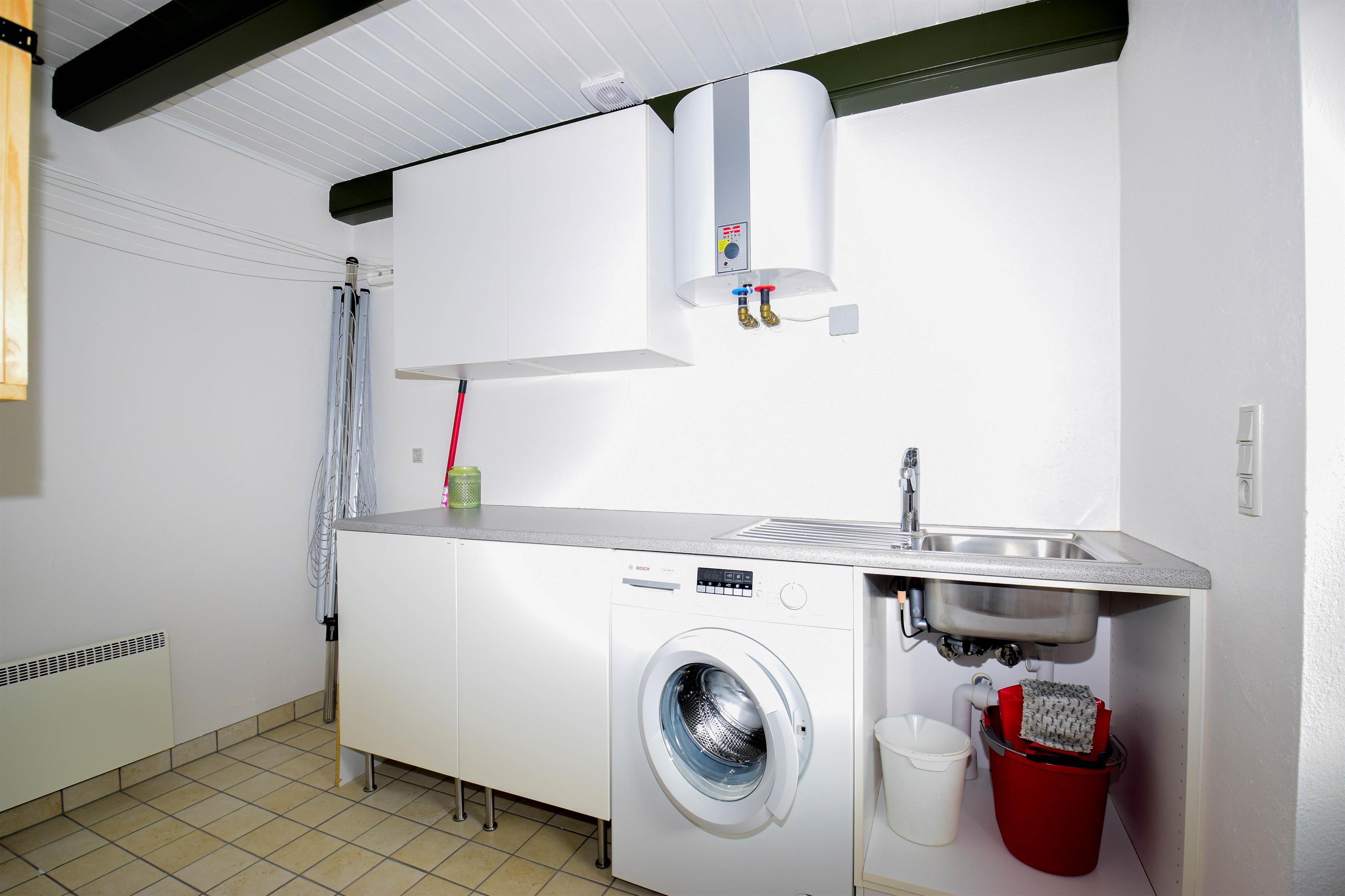 Practical: The large entrance hallway is also a utility room with an extra sink, washing machine and dryer. The functional bathroom has a large shower niche.