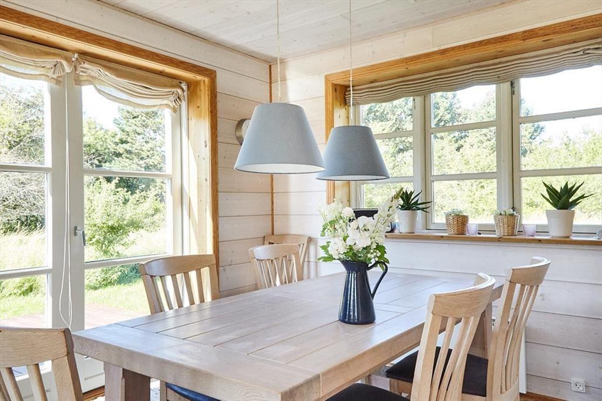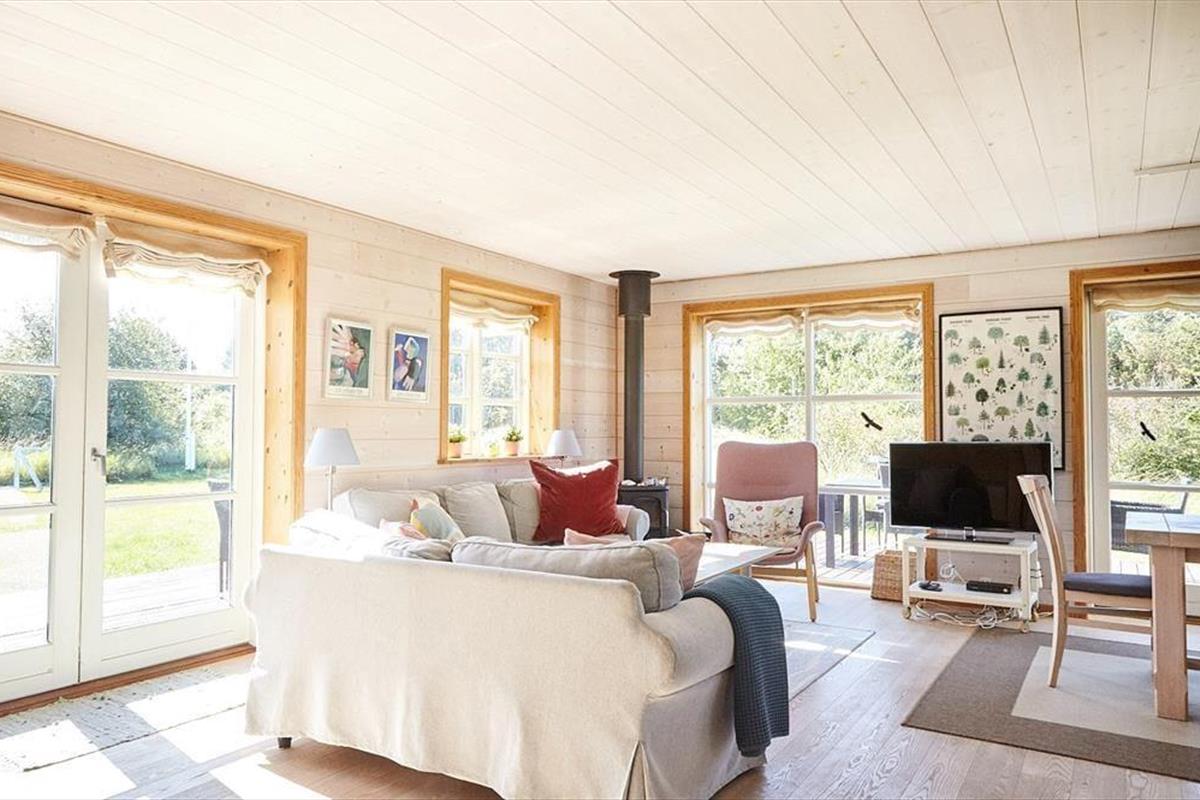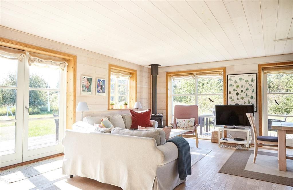 Das gut eingerichtete, geräumige Blockhaus ist gut für Familien mit Kindern geeignet. Es verfügt über zwei Etagen und beherbergt ohne Weiteres eine größere oder auch zwei kleine befreundete Familien. Einer der drei Schlafräume ist im Erdgeschoss untergebracht. Die anderen beiden Räume befinden sich zusammen mit einem Gäste-WC und Platz zum Spielen im oberen Stockwerk. Vom Balkon aus blickst du auf das Meer. Der helle, stimmungsvolle Wohnraum im Erdgeschoss ist mit großen Französischen Flügeltüren und großen Fenstern versehen, die dich mit einem reizvollen Ausblick verwöhnen. Die Küche ist offen in den Raum integriert. Dank der offenen Wohnlösung genießt du selbst während der Zubereitung der Mahlzeiten die Nähe und Gesellschaft deiner Lieben, die sich im Wohnraum tummeln.