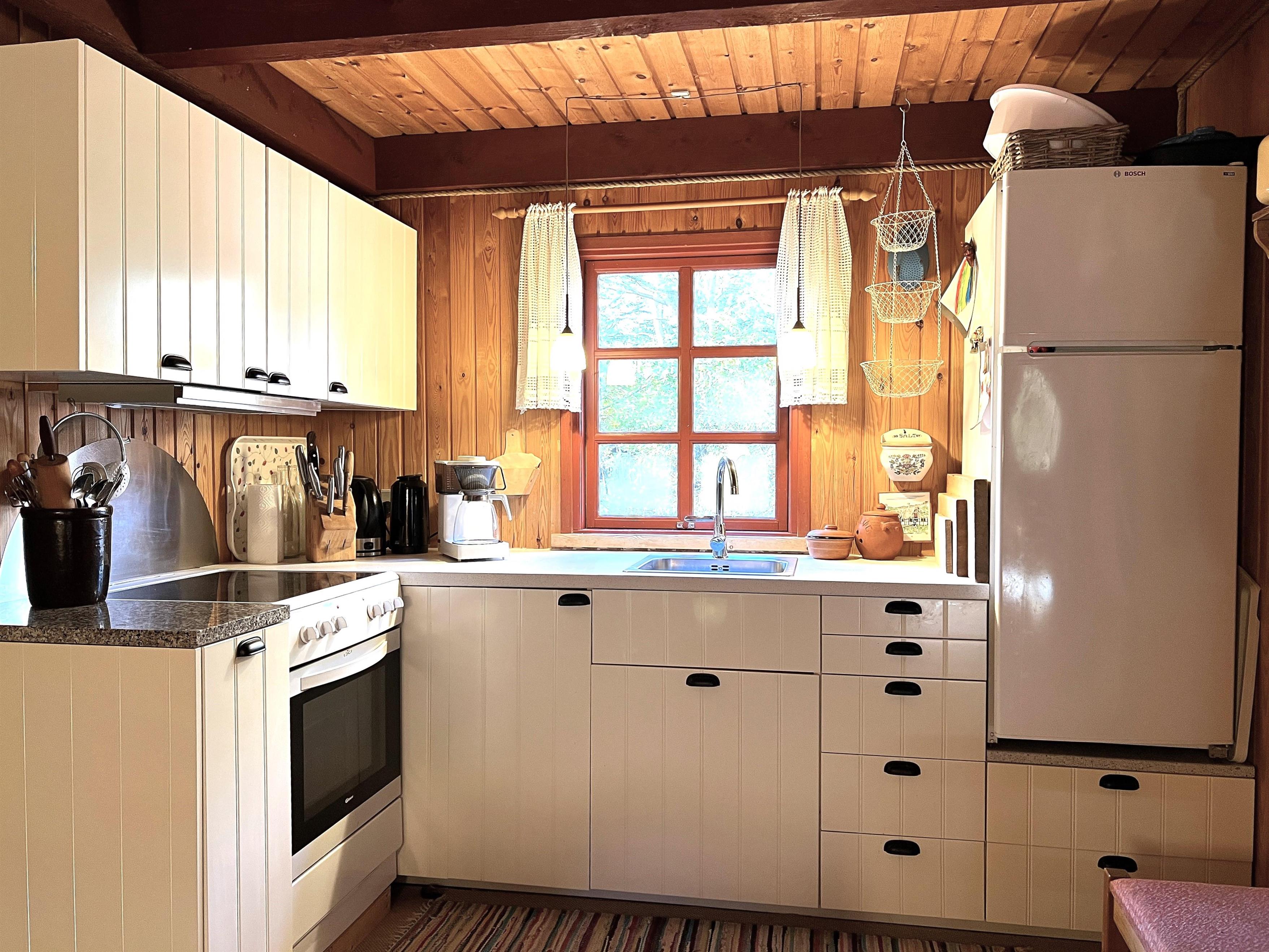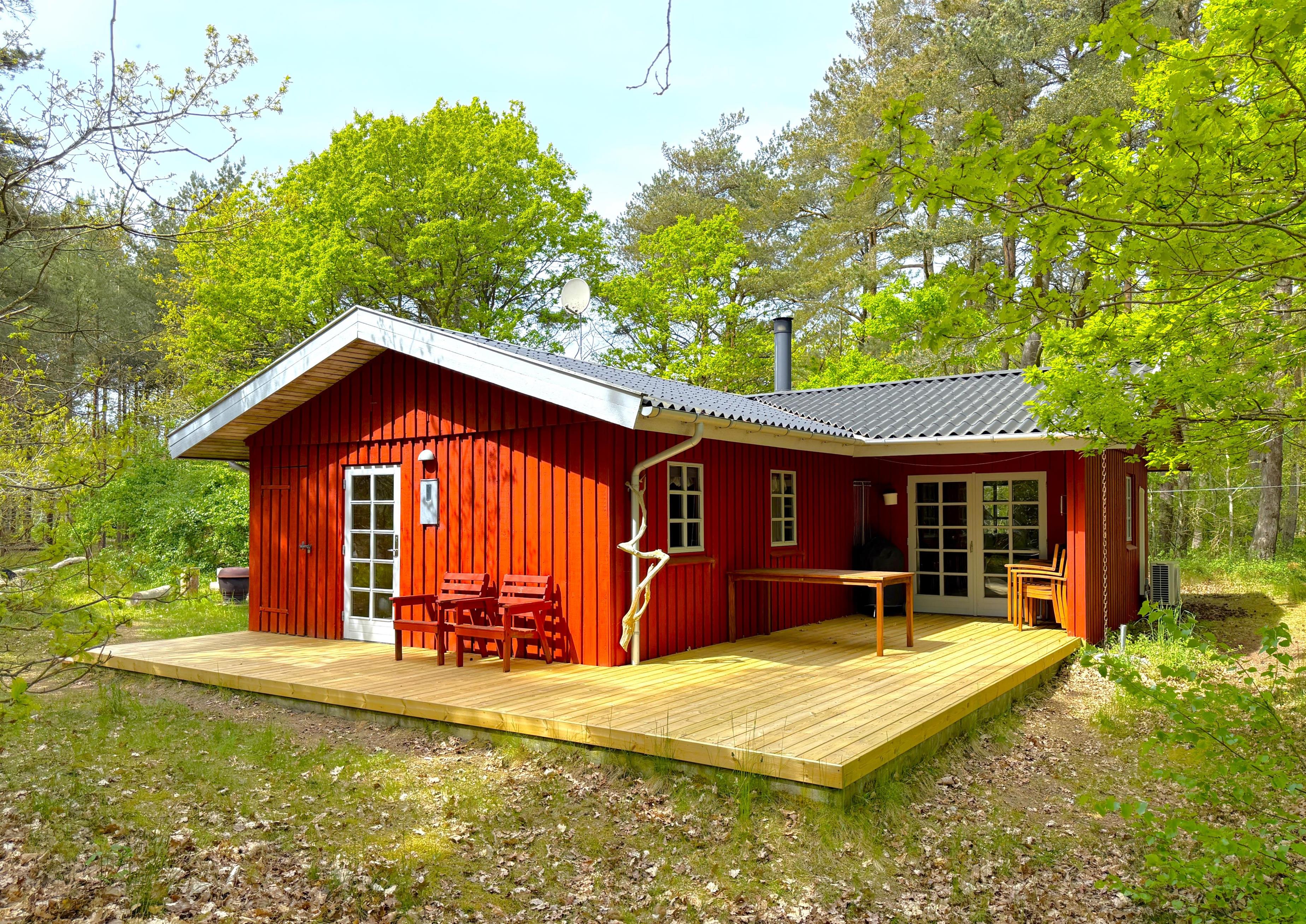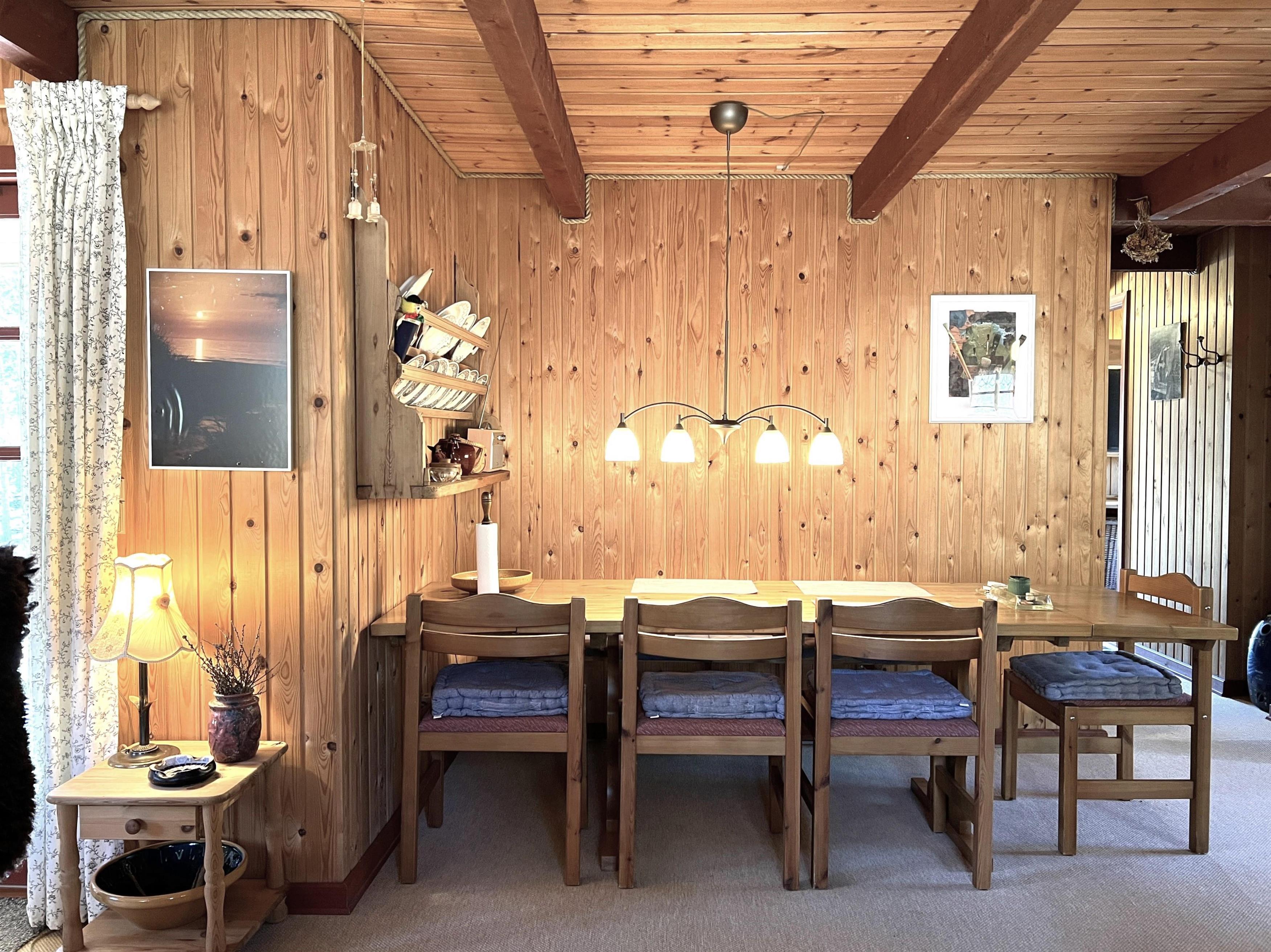 Das Haus verfügt über eine schöne Wohnküche mit Essbereich und im dazugehörigen, geräumigen und gemütlich eingerichteten Wohnzimmer werden Sie sich schnell wohlfühlen. Schönes Badezimmer mit Dusche. Alle drei Schlafzimmer verfügen über Doppelbetten. Es gibt Holzterrassen mit Gartenmöbeln und Grill und auf dem großen Grundstück gibt es eine wunderschöne Feuerstelle mit Platz für alle. Hier können Sie die Sommerabende einfach bei einem Lagerfeuer unter den wunderschönen Eichen genießen. Durch die Lage in der ruhigen Gegend am Kongestranden spüren Sie die echte Ferienhausatmosphäre, wo Sie nah am Strand wohnen und das Meer hören können. Es geht um. 1,5 km. zum Einkaufen, für Restaurants, den lokalen Fischhandel und die angenehme Hafenumgebung in Vesterø.