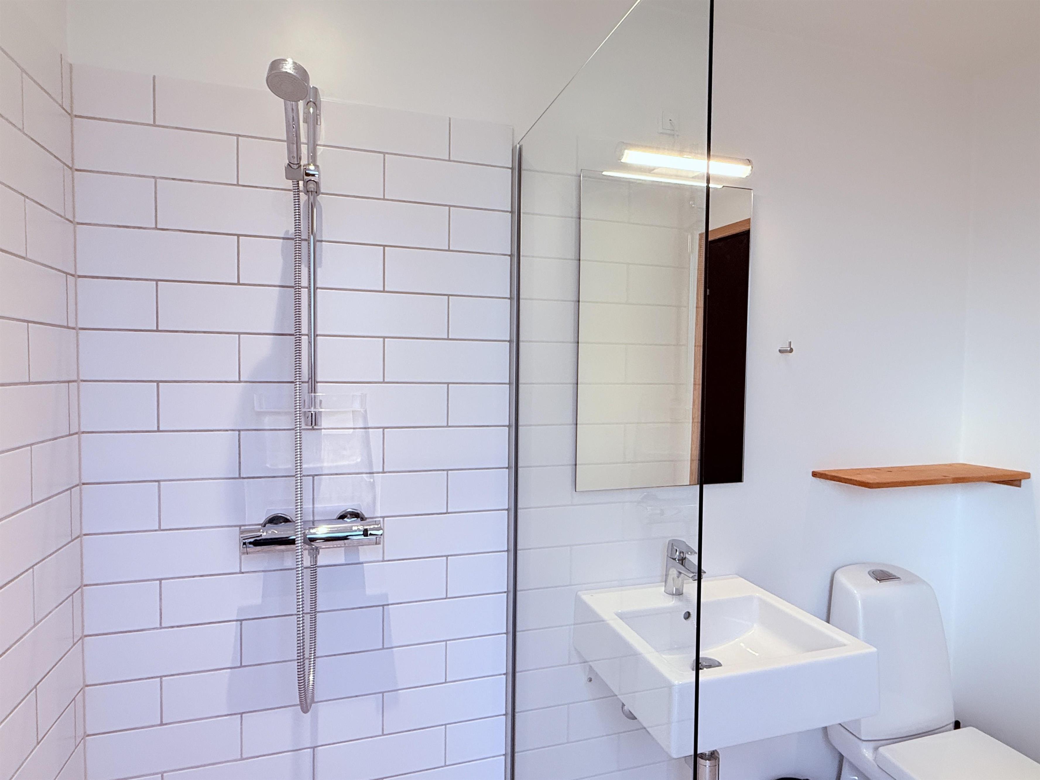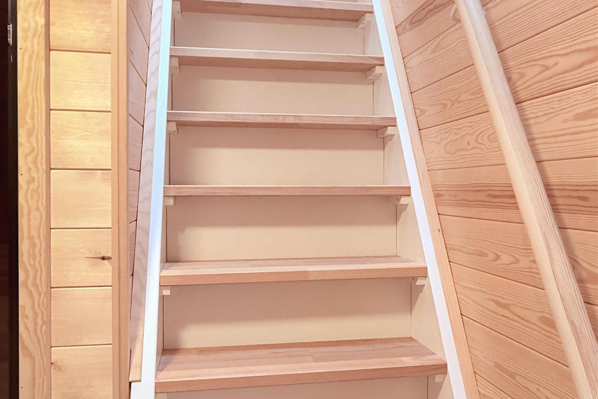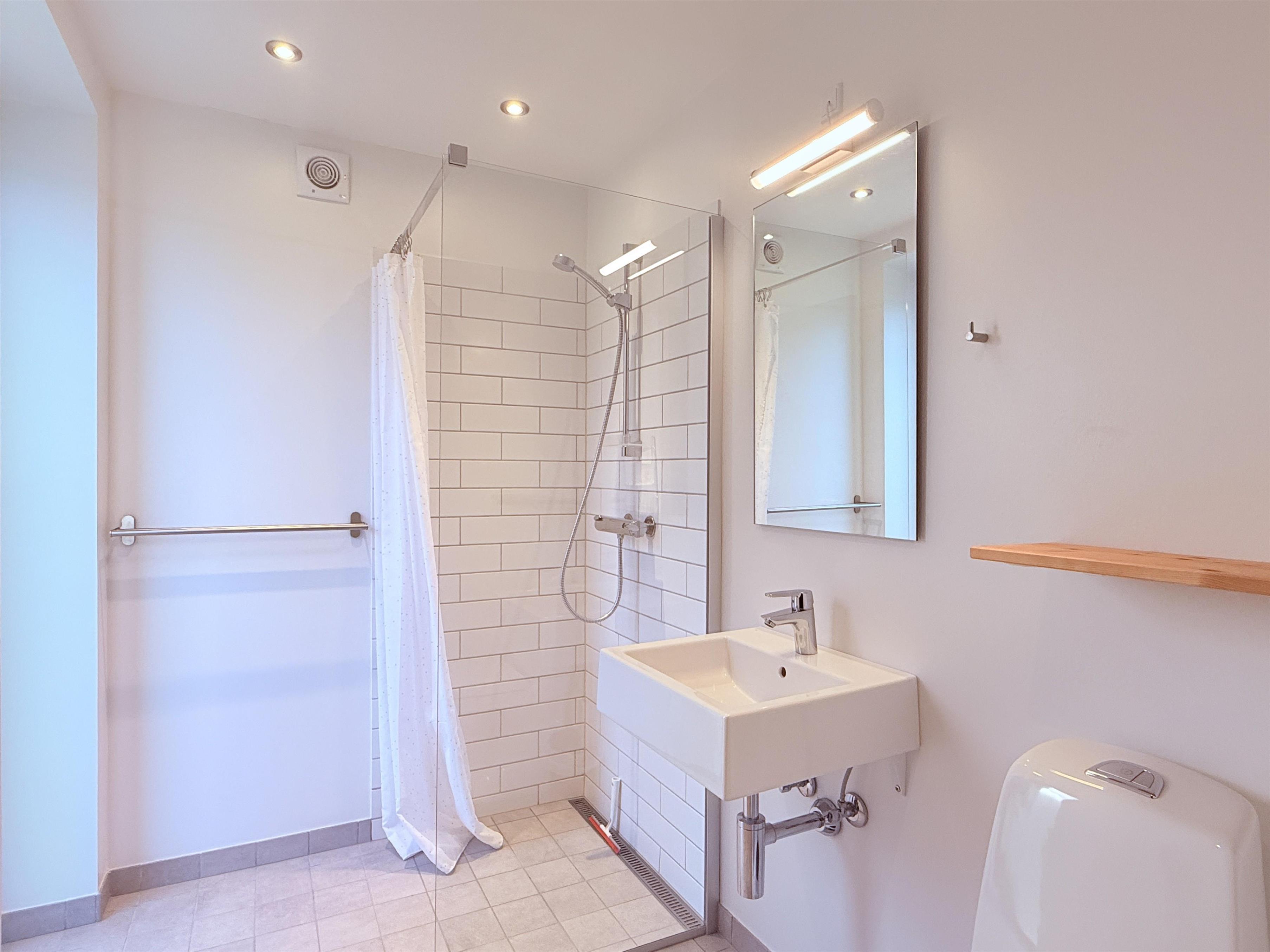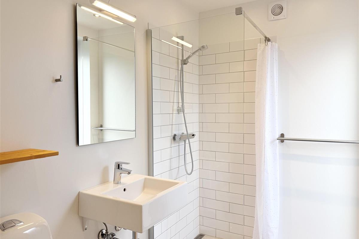 Das Haupthaus verfügt über eine große, helle Wohnküche mit Essbereich und gemütlicher Sofaecke. Außerdem gibt es ein Schlafzimmer mit Doppelbett, ein Badezimmer mit Dusche und eine Treppe zu einem weiteren Schlafzimmer mit Doppelbett. Eine ähnliche Aufteilung mit Schlafzimmern und Badezimmer befindet sich im gegenüberliegenden Flügel des Hauses, der durch die überdachte Terrasse vom Haupthaus getrennt ist. Die Schlafzimmer im ersten Stock bieten einen traumhaften Meerblick, und sowohl die Badezimmer als auch die Schlafzimmer im Erdgeschoss haben Zugang zum Garten. Die Raumaufteilung macht das Haus besonders geeignet für mehrere Familien. Vom Haupthaus aus gelangen Sie auf die nach Westen und Osten ausgerichteten Holzterrassen. Eine Außendusche lädt nach einem Strandbesuch zum Entspannen ein. Es bieten sich wirklich gute Gelegenheiten, den hauseigenen Grill zu nutzen und dabei den Sonnenuntergang über dem Meer zu genießen.