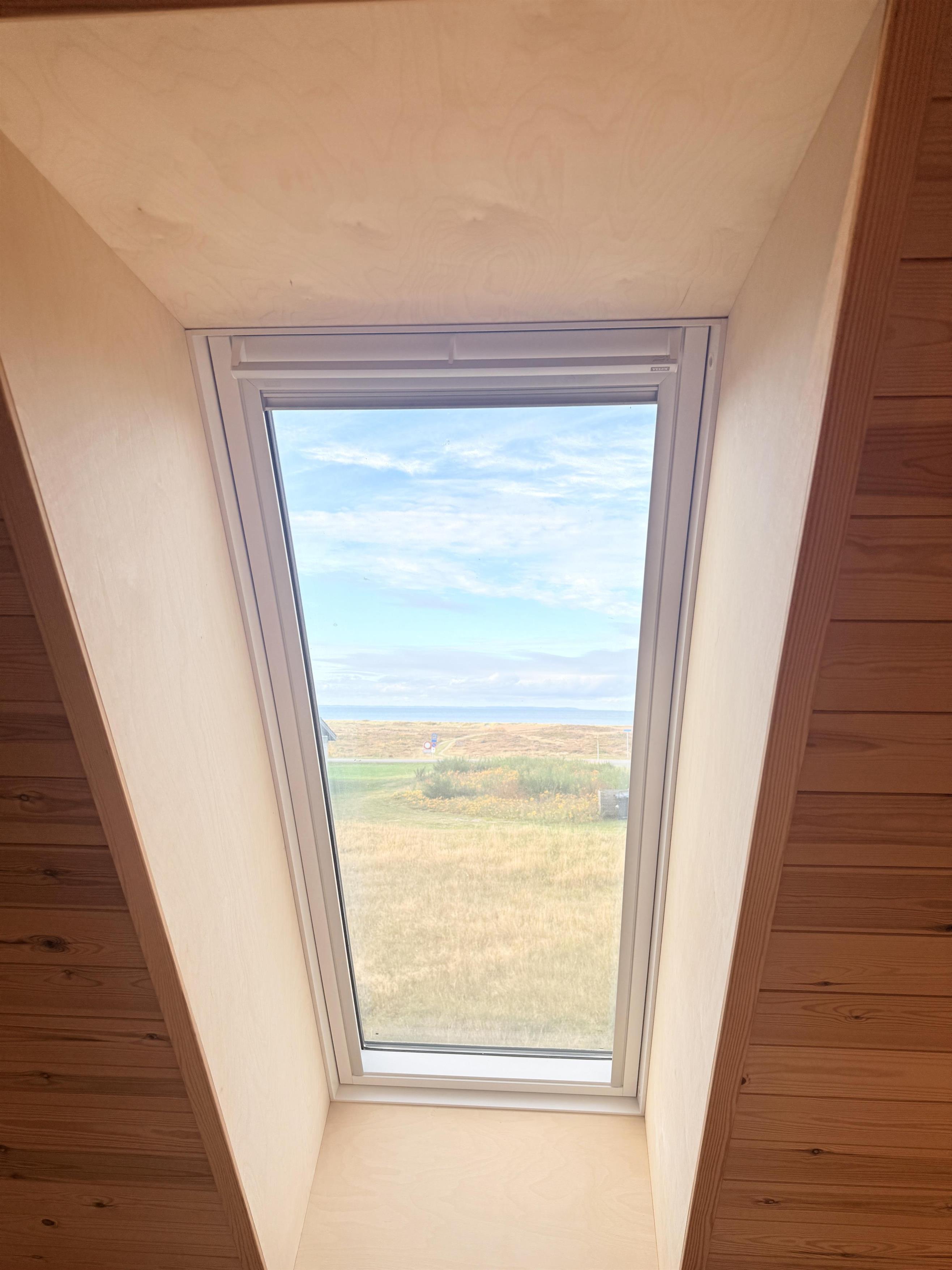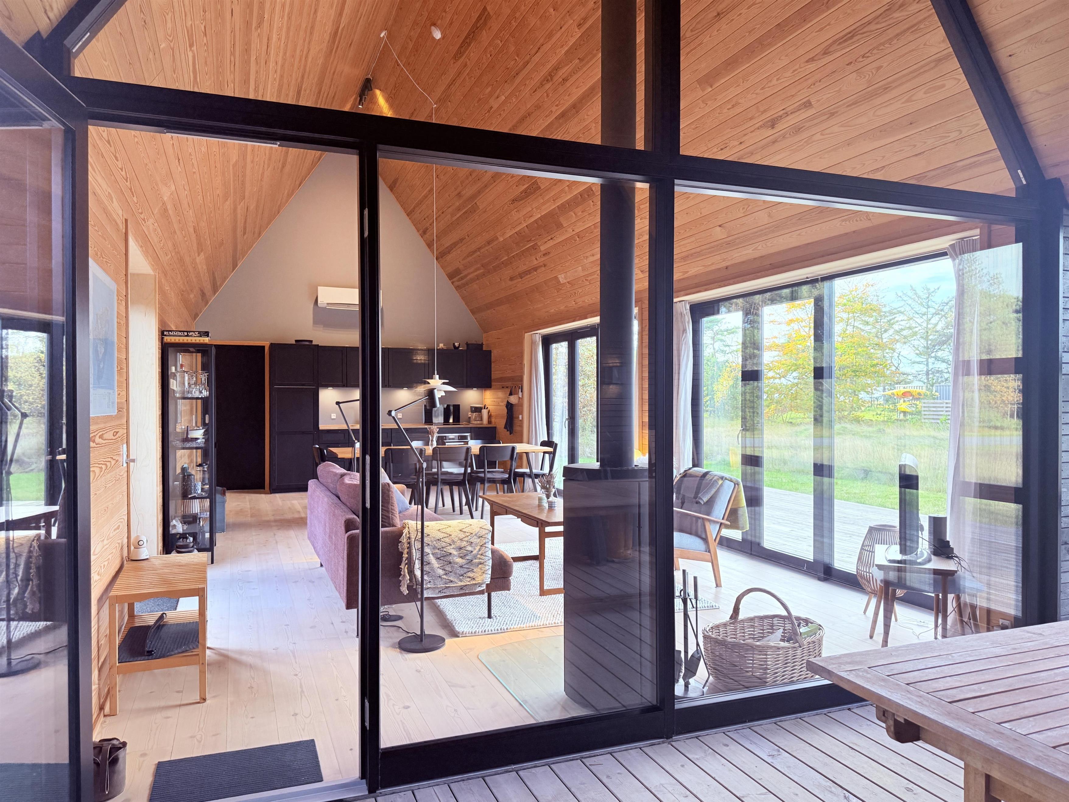 NEU bei Team Læsø: Ein wunderschönes, neu erbautes Ferienhaus mit Meerblick und einzigartiger Lage direkt am Kongestranden, dem wohl schönsten Strand der Insel. Dank der großen Fenster mit Meerblick und der modernen Architektur mit überdachter Terrasse im Zentrum des Hauses genießen Sie den herrlichen Blick auf Strand und Kattegat zu jeder Jahreszeit.