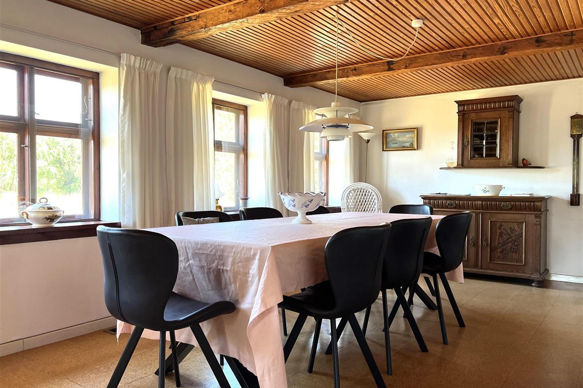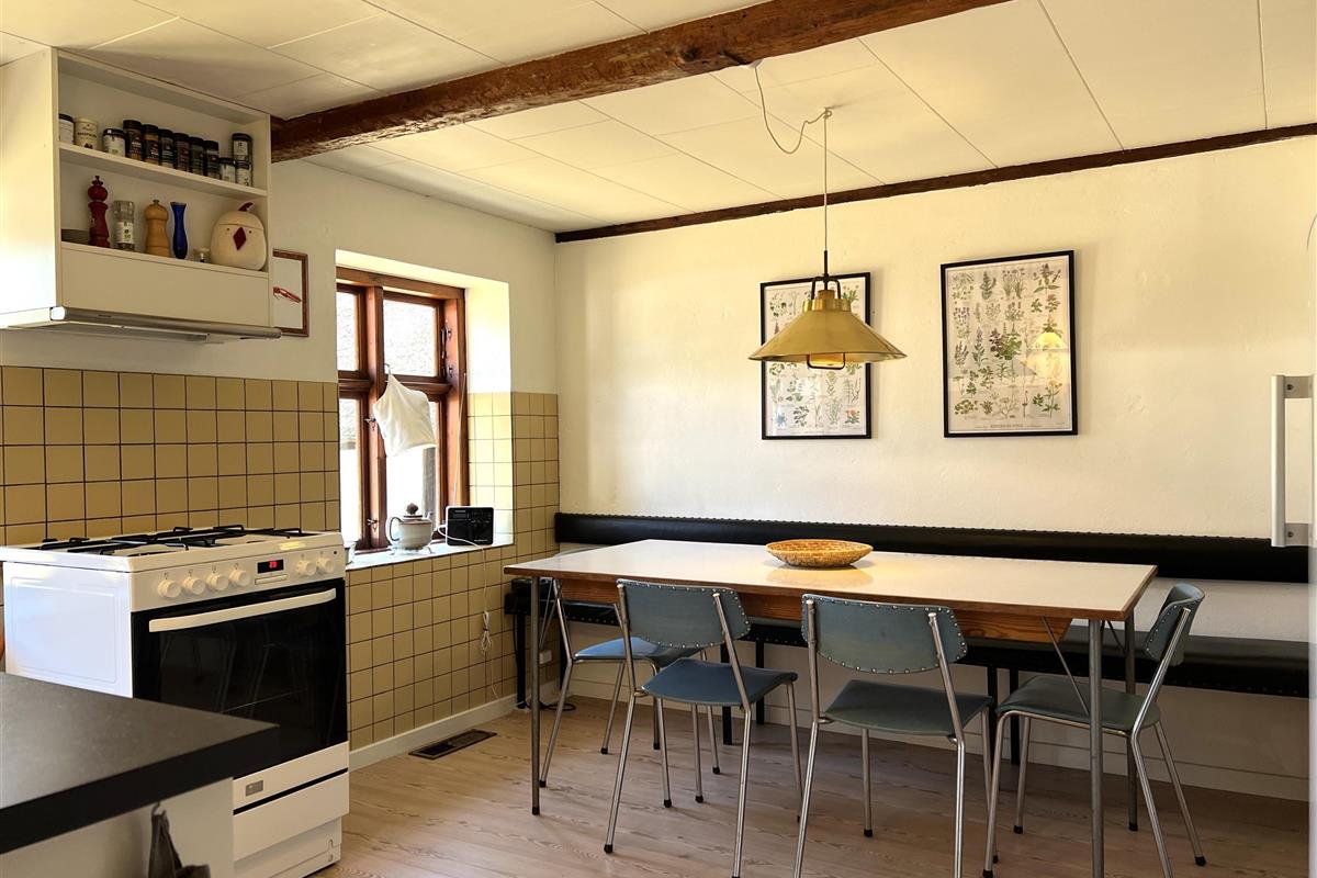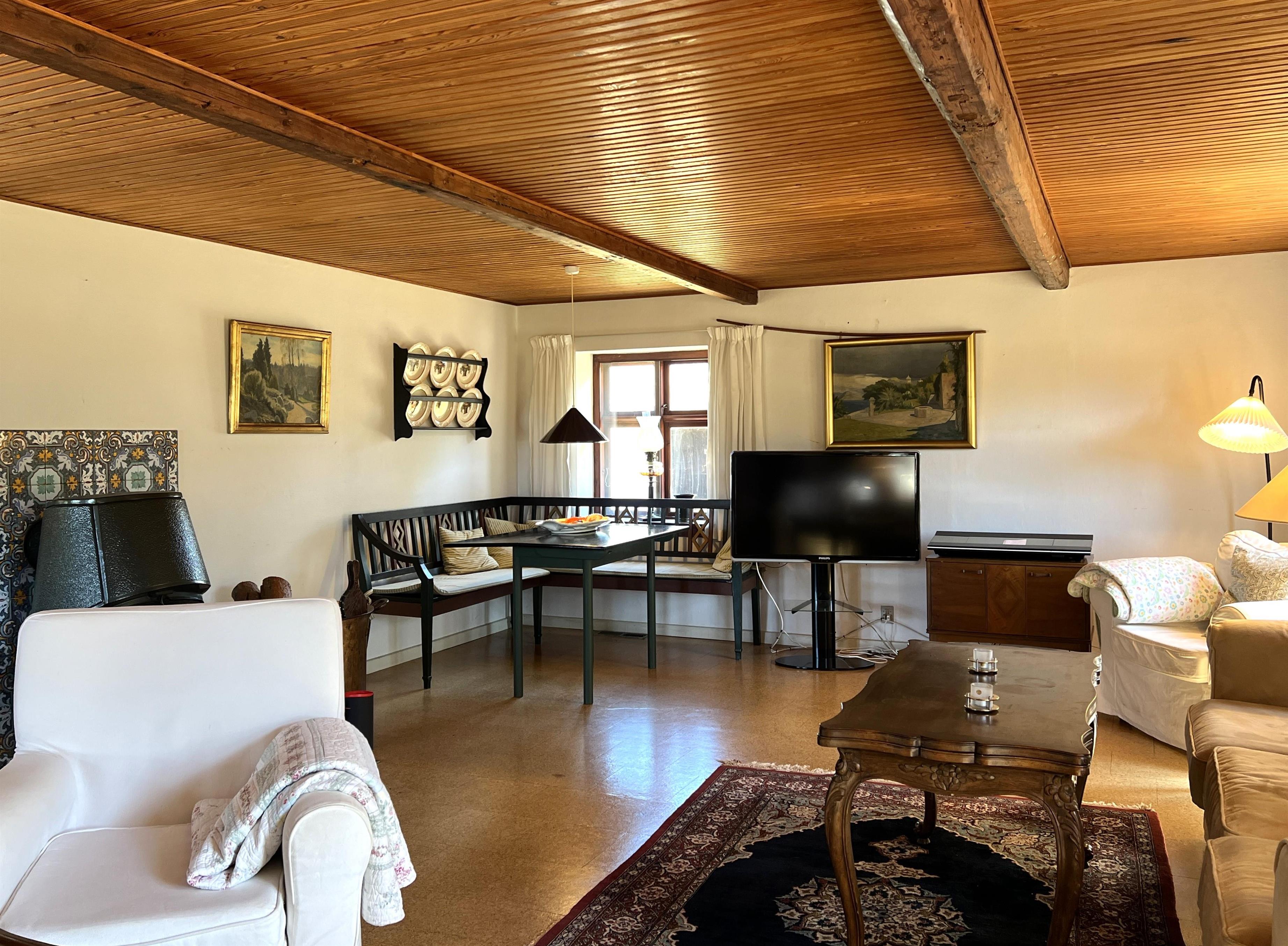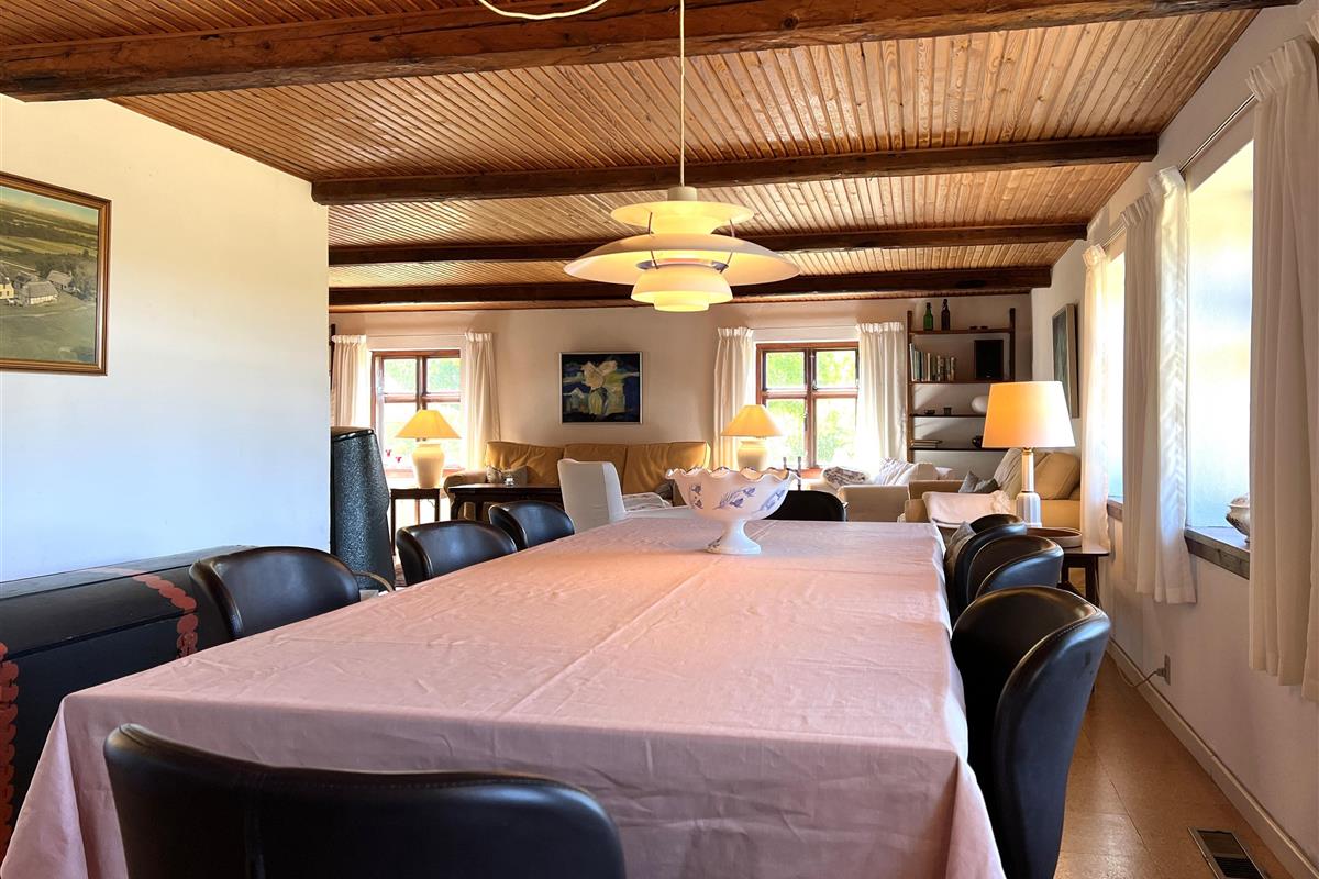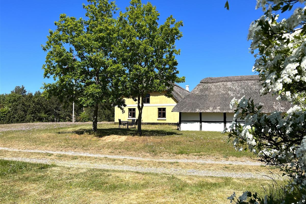 Dieser schöne, alte Læsø-Bauernhof ist einer der ältesten Læsøs und bietet die Gelegenheit für ein einzigartiges Urlaubserlebnis für die große Familie, die gerne in einer ruhigen, malerischen Gegend leben möchte. Der Hof liegt hoch oben auf dem großen Grundstück und bietet einen fantastisch schönen Blick über die großen Freiflächen, wo Sie den Sonnenuntergang über dem Kattegat genießen können. Die kurvenreiche alte Feldstraße führt hinunter zur Søndre Kirke und zum Kongestranden, dem wahrscheinlich besten Strand der Insel. Der Hof „Rimmen“ wurde sorgfältig und mit viel Respekt für Stil und Atmosphäre renoviert und Sie werden beispielsweise auf authentische Deckenbalken von den Schiffen aus den vielen Strandungen rund um Læsø stoßen. Die Fliesen in den Badezimmern, die bei der Übernahme des Hofes im Jahr 1965 vorhanden waren, sind intakt. Hier auf dem Bauernhof begleiten Sie nur die besondere Læsø-Ruhe und die wunderschöne Aussicht auf den See, die Felder und die Natur. Das große Haupthaus verfügt über vier Schlafzimmer, davon drei mit neuen Doppelbetten und eines mit zwei Einzelbetten. Zusätzliches, fünftes Schlafzimmer mit zwei Einzelbetten, damit sich die große Familie ausbreiten kann. Charmante Küche mit „dem alten“ Esstisch und ein beeindruckend großes Wohnzimmer mit Esstisch und mehreren Komfortbereichen mit Sofas, Sesseln und TV. In Verlängerung des Zimmerflügels gibt es Zugang zu einer Außendusche, von der aus Sie den Blick auf den großen Garten genießen können. Es gibt einen schönen Raum mit Waschmaschine, Wäschetrockner, zusätzlichem Kühlschrank und Gefrierschrank. Es gibt viele gute Sonnen-/Wohlfühlecken mit Gartenmöbeln, sowohl mit Blick auf den See als auch im alten, gemütlichen Innenhof, geschützt von den angrenzenden Fachwerkhäusern.