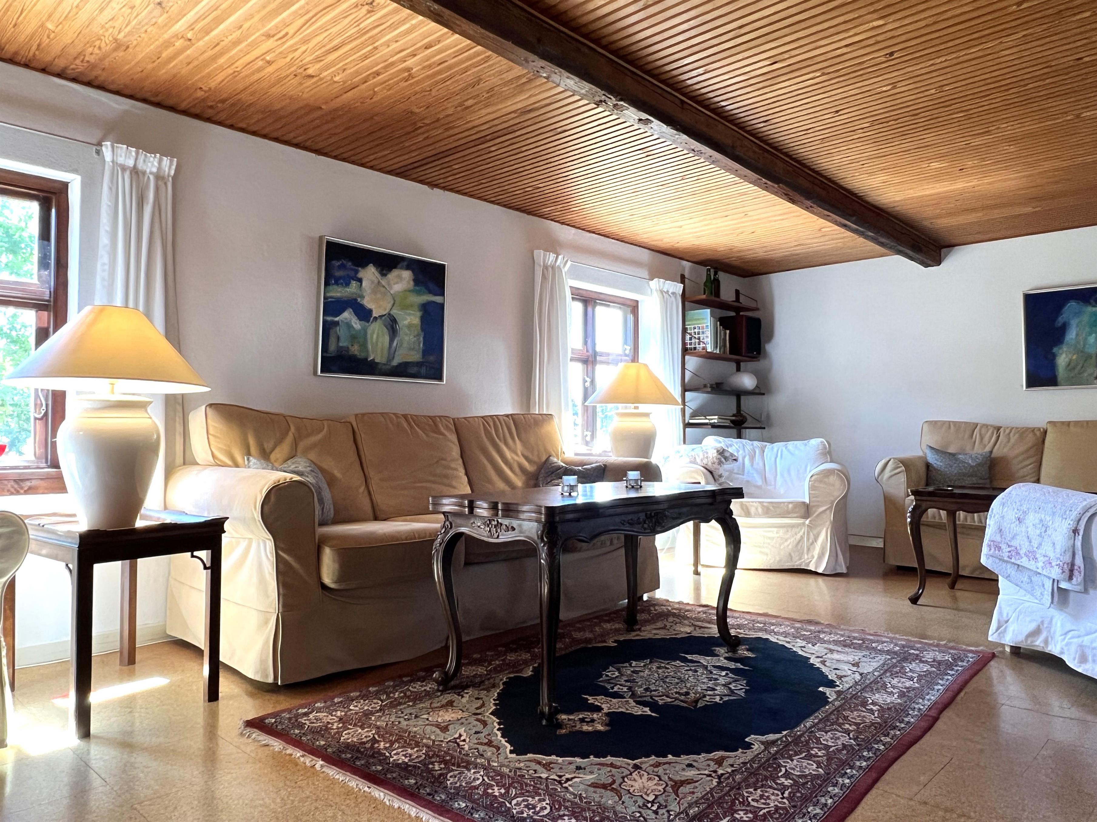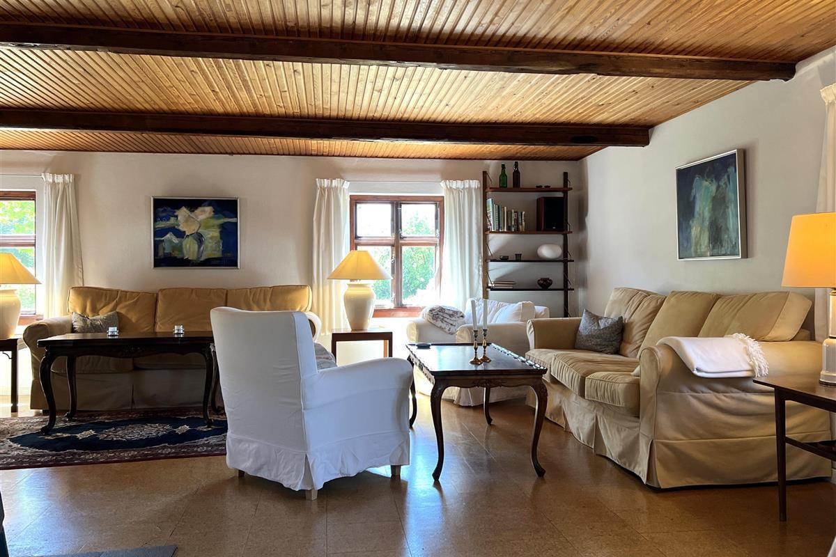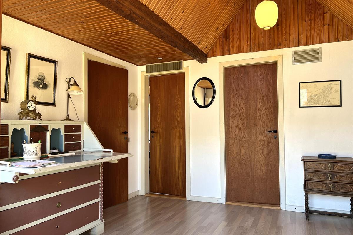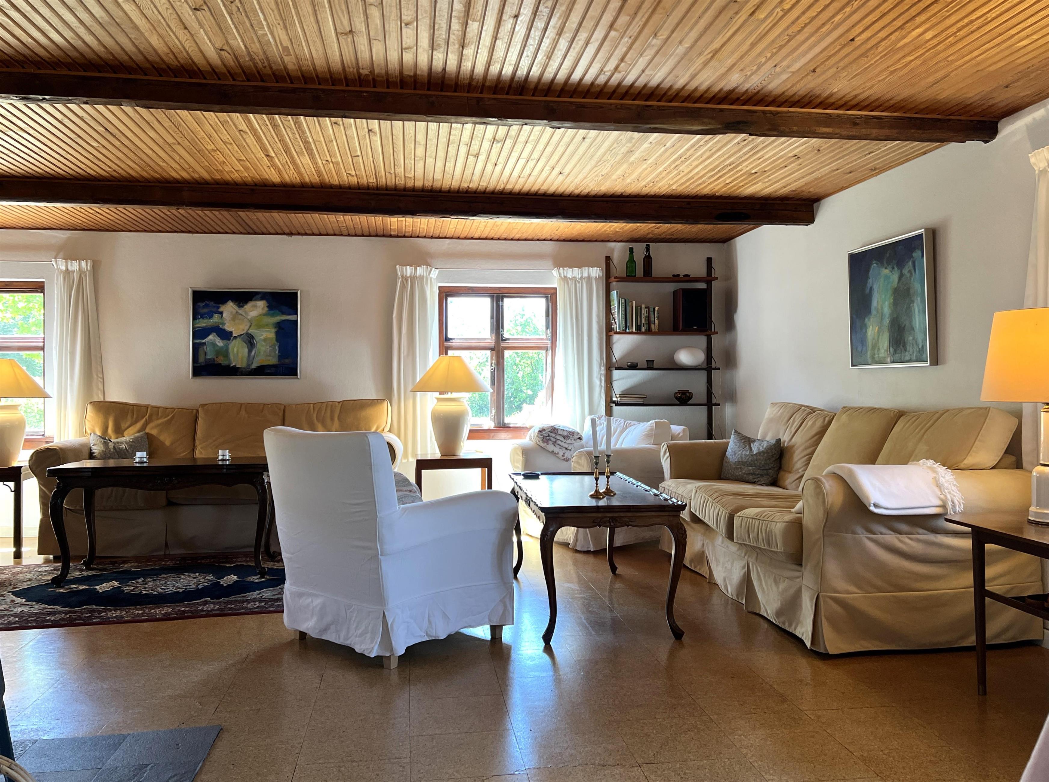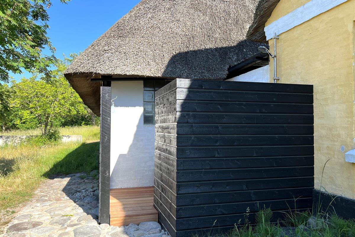Dieser schöne, alte Læsø-Bauernhof ist einer der ältesten Læsøs und bietet die Gelegenheit für ein einzigartiges Urlaubserlebnis für die große Familie, die gerne in einer ruhigen, malerischen Gegend leben möchte. Der Hof liegt hoch oben auf dem großen Grundstück und bietet einen fantastisch schönen Blick über die großen Freiflächen, wo Sie den Sonnenuntergang über dem Kattegat genießen können. Die kurvenreiche alte Feldstraße führt hinunter zur Søndre Kirke und zum Kongestranden, dem wahrscheinlich besten Strand der Insel. Der Hof „Rimmen“ wurde sorgfältig und mit viel Respekt für Stil und Atmosphäre renoviert und Sie werden beispielsweise auf authentische Deckenbalken von den Schiffen aus den vielen Strandungen rund um Læsø stoßen. Die Fliesen in den Badezimmern, die bei der Übernahme des Hofes im Jahr 1965 vorhanden waren, sind intakt. Hier auf dem Bauernhof begleiten Sie nur die besondere Læsø-Ruhe und die wunderschöne Aussicht auf den See, die Felder und die Natur. Das große Haupthaus verfügt über vier Schlafzimmer, davon drei mit neuen Doppelbetten und eines mit zwei Einzelbetten. Zusätzliches, fünftes Schlafzimmer mit zwei Einzelbetten, damit sich die große Familie ausbreiten kann. Charmante Küche mit „dem alten“ Esstisch und ein beeindruckend großes Wohnzimmer mit Esstisch und mehreren Komfortbereichen mit Sofas, Sesseln und TV. In Verlängerung des Zimmerflügels gibt es Zugang zu einer Außendusche, von der aus Sie den Blick auf den großen Garten genießen können. Es gibt einen schönen Raum mit Waschmaschine, Wäschetrockner, zusätzlichem Kühlschrank und Gefrierschrank. Es gibt viele gute Sonnen-/Wohlfühlecken mit Gartenmöbeln, sowohl mit Blick auf den See als auch im alten, gemütlichen Innenhof, geschützt von den angrenzenden Fachwerkhäusern.