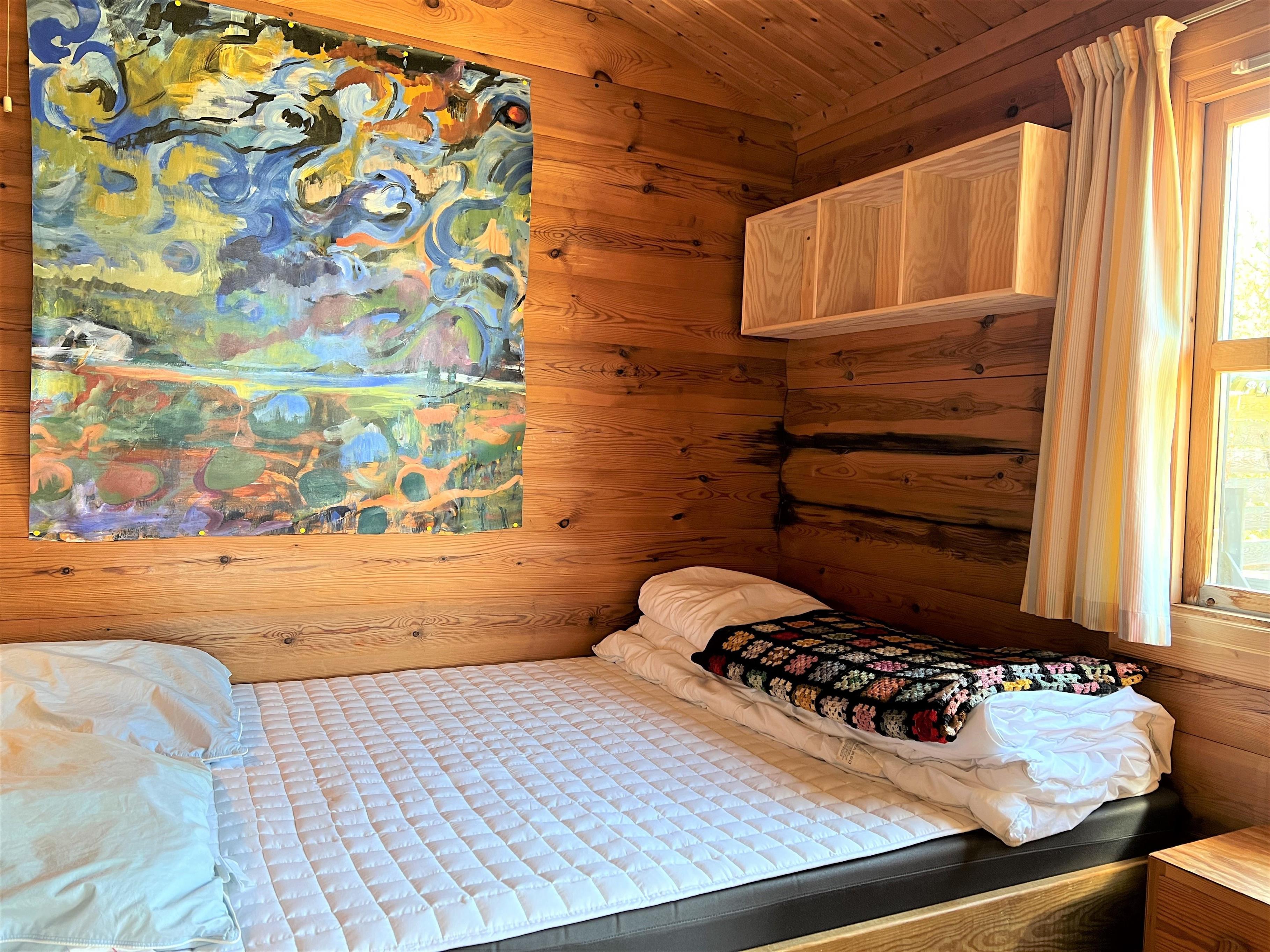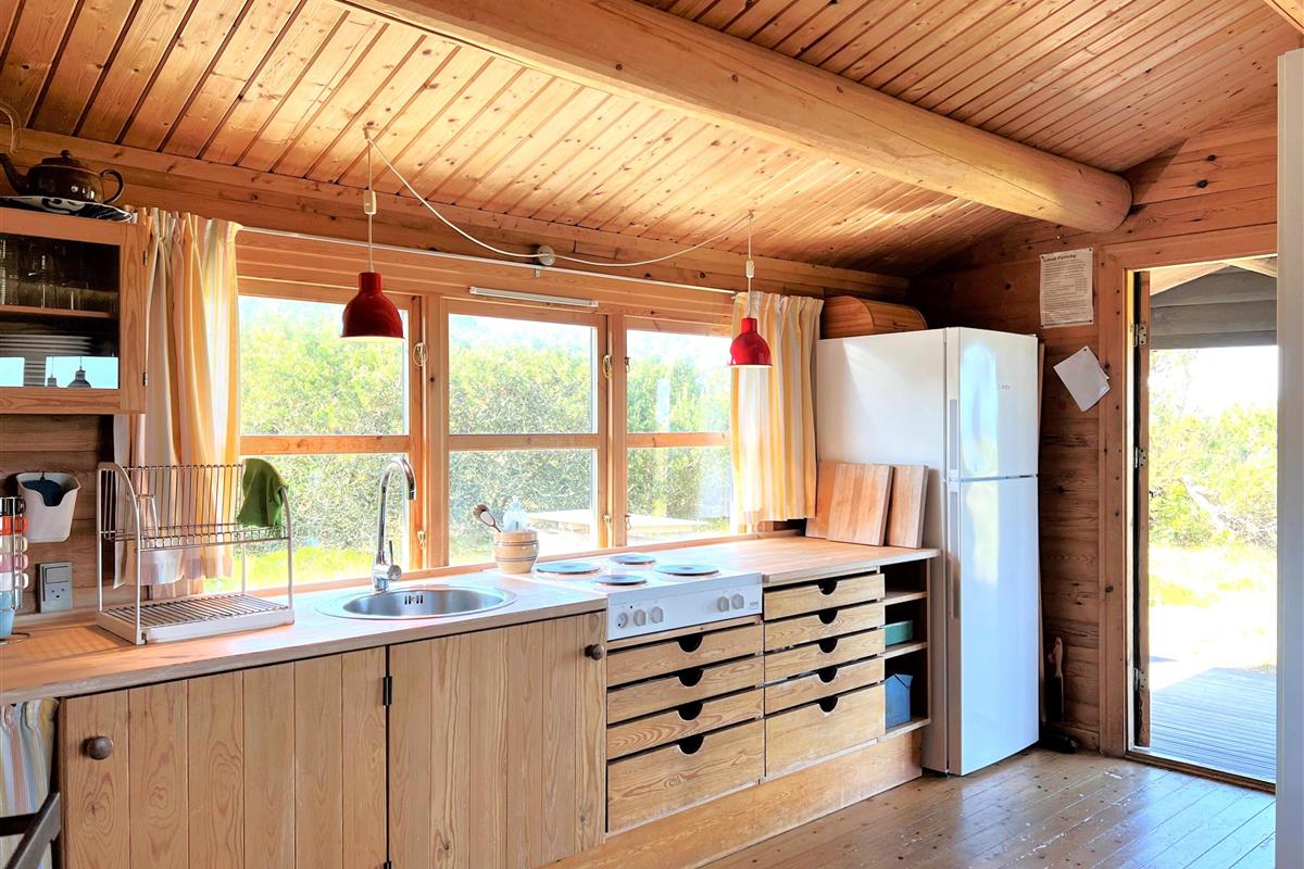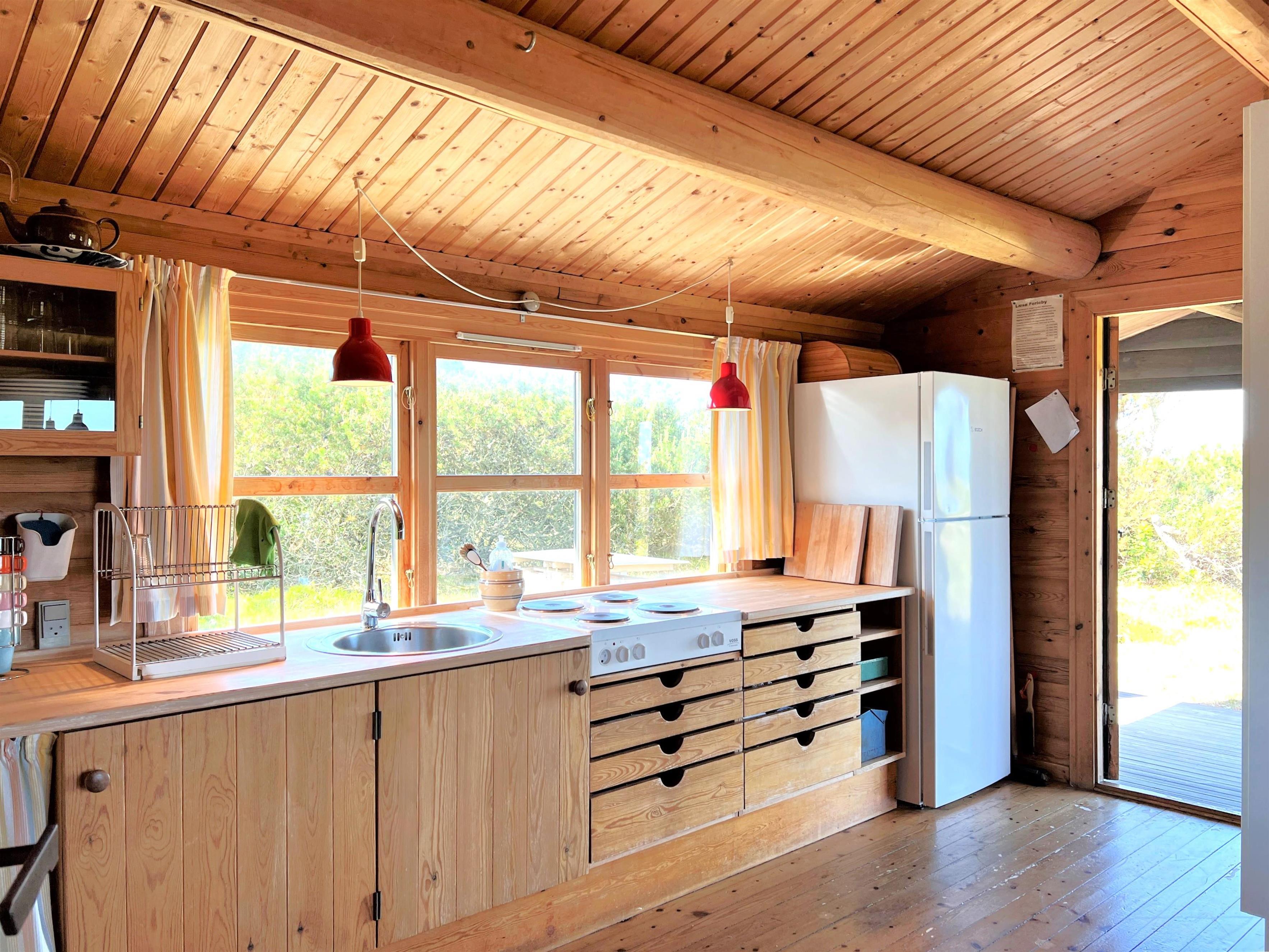 Das Haus hat ein grosser Küchen/Essplatz , Schlafsofa, 2 Schlafzimmer mit einem 120 cm grossem Bett, und eines mit 2 Einzelbetten. Feines funktionelles Badezimmer. Ausserhalb hat es einen Tisch und Bänkeset mit einem extra Tisch, auf dem man das Essen zubereiten kann, und gleichzeitig eine herlliche Aussicht geniesst.