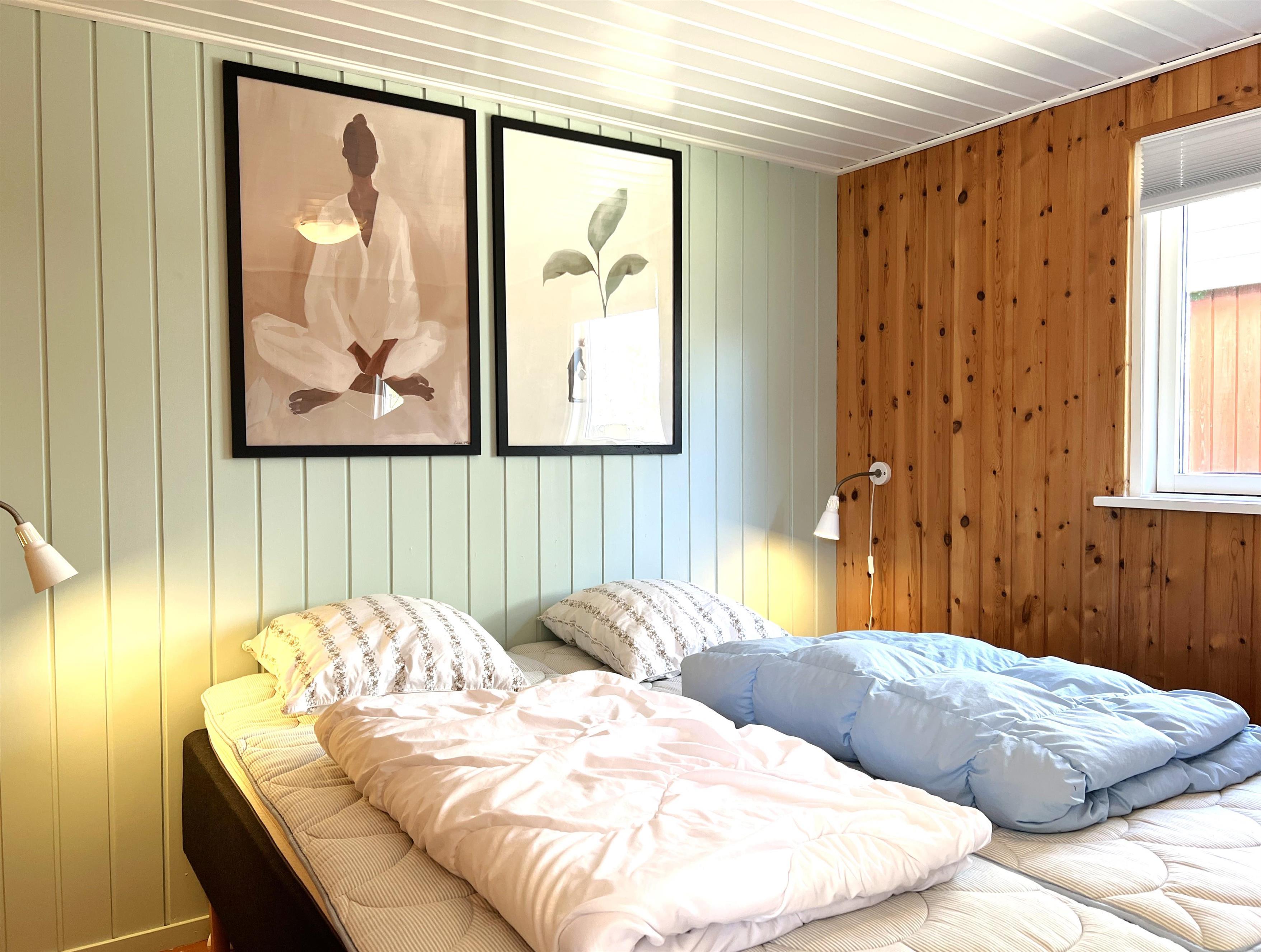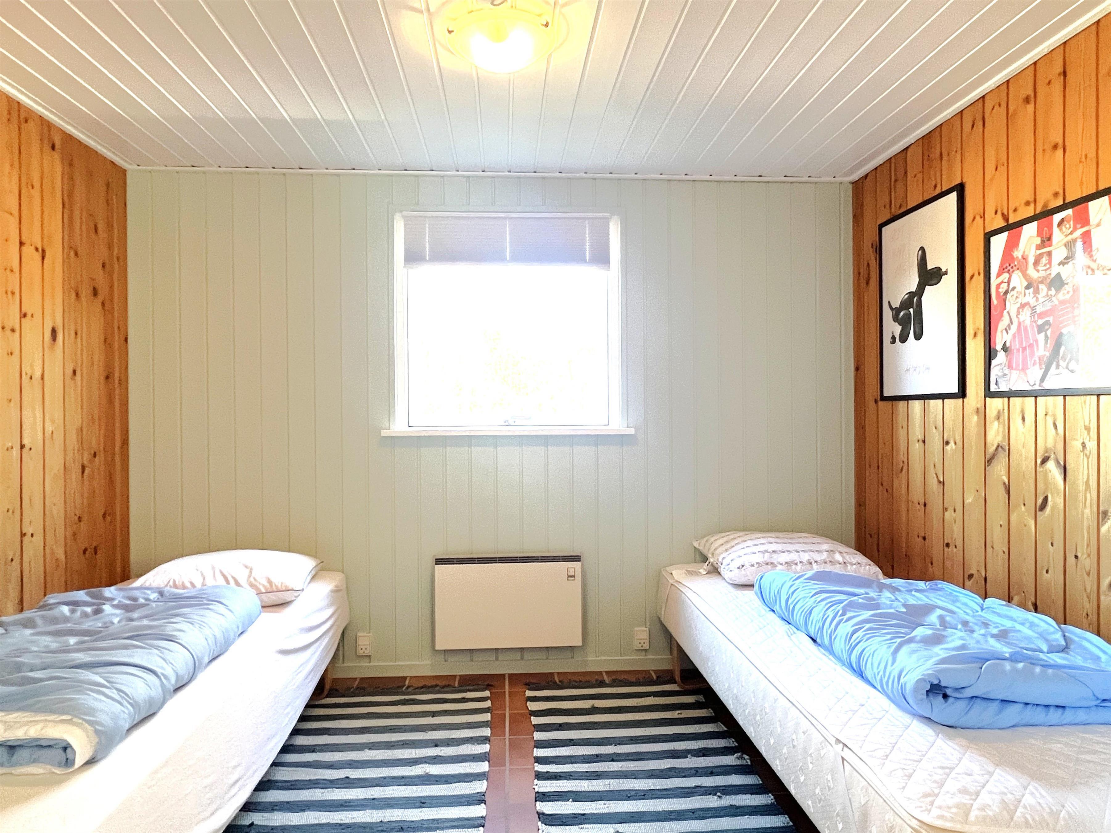 Schönes, neu renoviertes Ferienhaus in Vesterø. Das Haus verfügt über eine schöne moderne Küche, die zu einem geräumigen, gemütlichen Wohnzimmer mit Essbereich, Holzofen und Sofaecke führt. Zwei gute Schlafzimmer, eines mit Doppelbett und eines mit 2 Einzelbetten. Schönes Badezimmer mit Dusche.