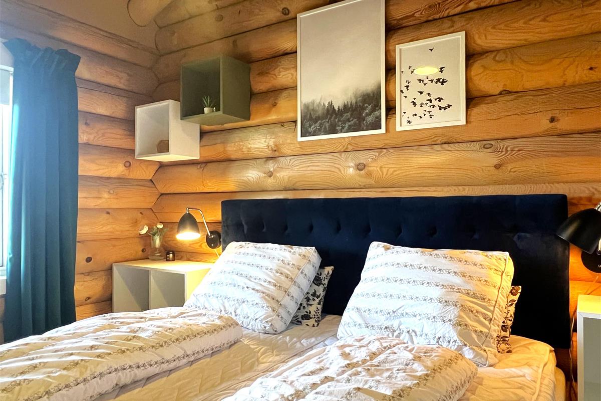 Ein wirklich schönes, geräumiges Blockhaus mit großer überdachter Terrasse und schönem umzäunten Garten.