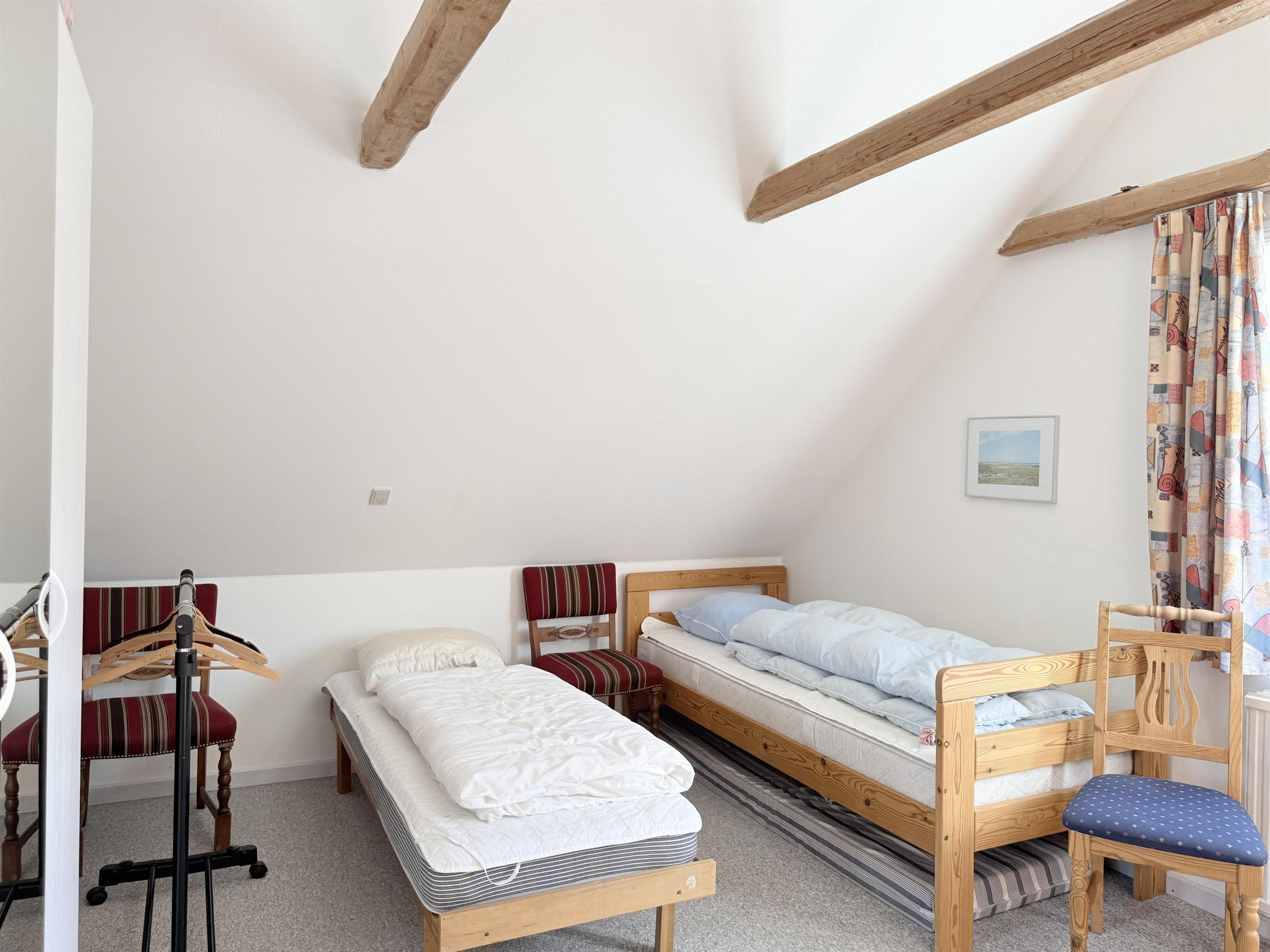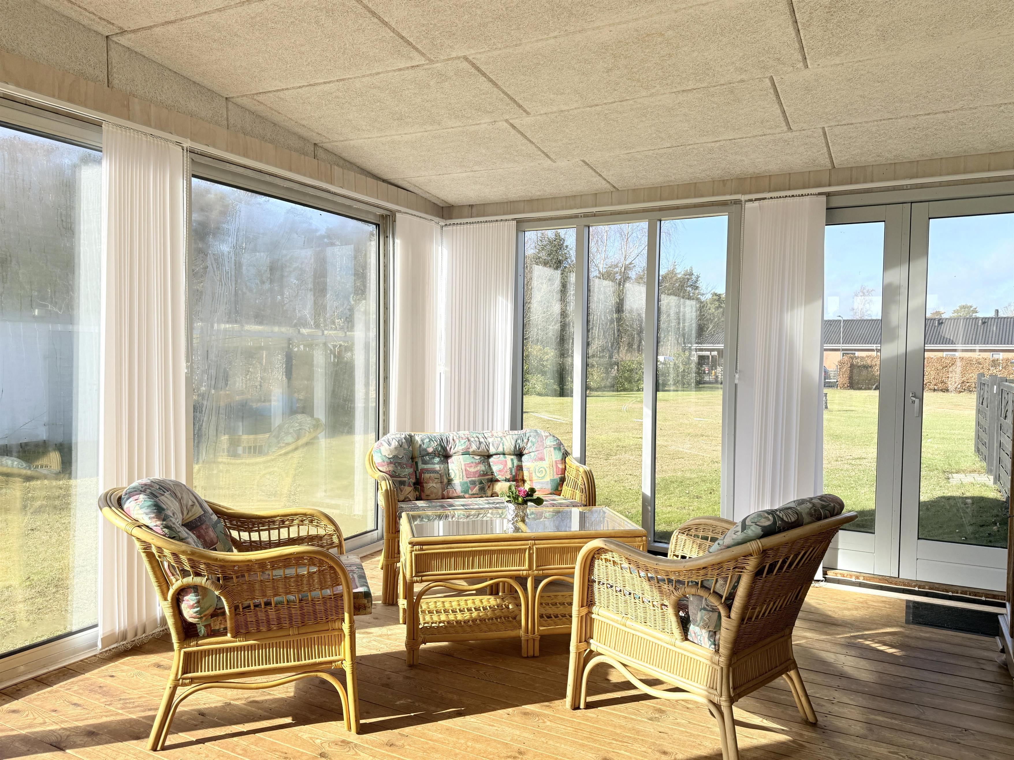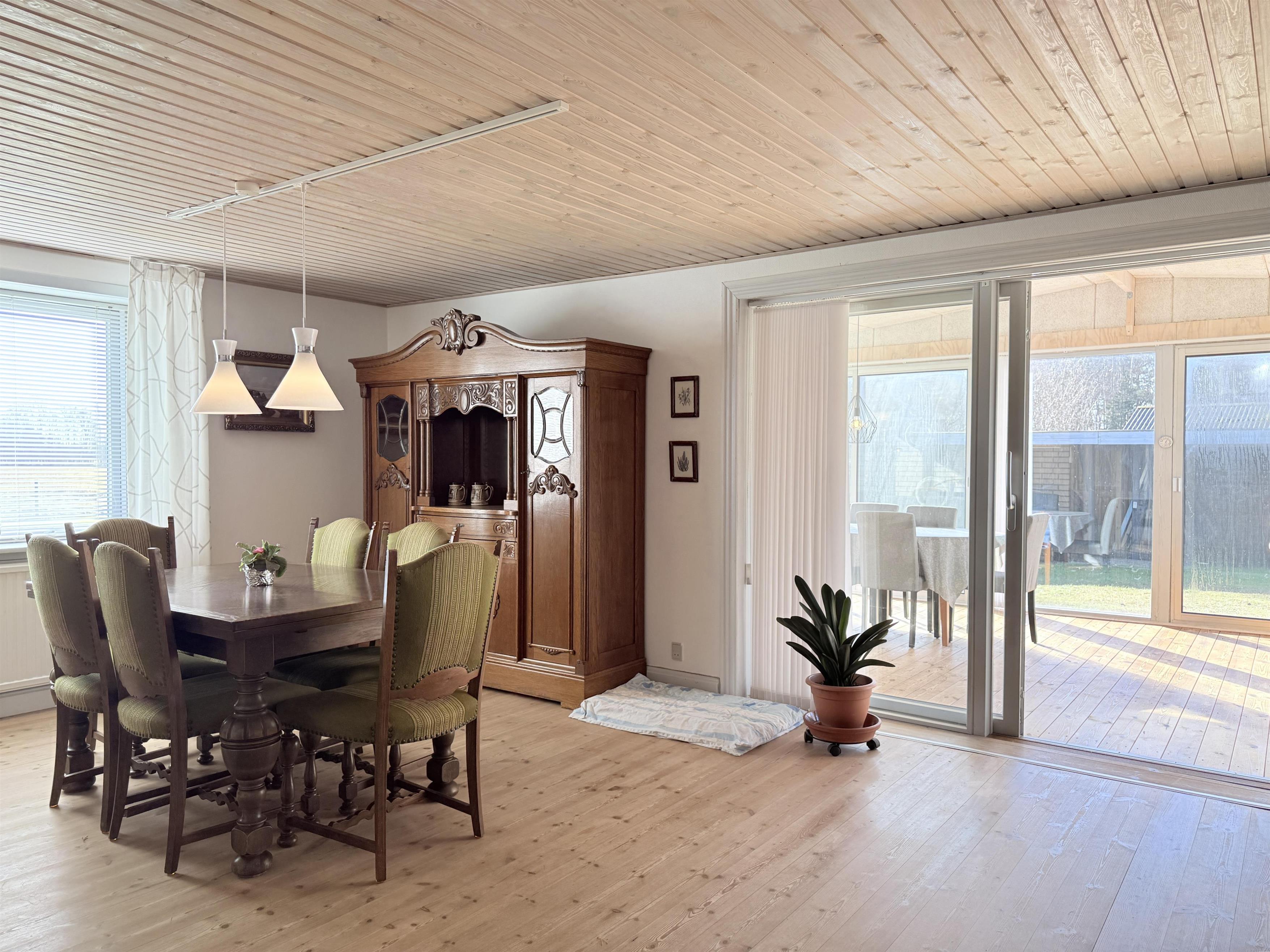 NEU im Team Læsø. Dieses charmante Ferienhaus liegt auf einem großen, wunderschönen und komplett umzäunten Grundstück. Ihre vierbeinigen Freunde können sich daher auf den ca. 3000 m² rund um das Haus frei bewegen. Das Haus selbst verfügt über ein gemütliches Wohnzimmer mit Essbereich und TV-Ecke. Vom Wohnzimmer aus gelangen Sie auf eine große, überdachte und umzäunte Terrasse mit Gartenmöbeln, von der aus Sie fast zu jeder Jahreszeit die Aussicht genießen können. Eine schöne, gut ausgestattete Küche grenzt an das Wohnzimmer an. Insgesamt gibt es drei Schlafzimmer mit insgesamt zwei Doppelbetten und zwei Einzelbetten. Zwei der Schlafzimmer befinden sich im ersten Stock, wo sich auch eine Küchenzeile befindet. Zwei schöne Badezimmer mit Dusche stehen ebenfalls zur Verfügung. Das Haus bietet außerdem einen praktischen Hauswirtschaftsraum mit Waschmaschine, Gefriertruhe und viel Stauraum. Eine schöne, gut gelegene Terrasse mit Gartenmöbeln, Gasgrill und Sonnenliegen lädt zum Verweilen ein. Hier können Sie an lauen Sommerabenden den Sonnenuntergang in vollen Zügen genießen.