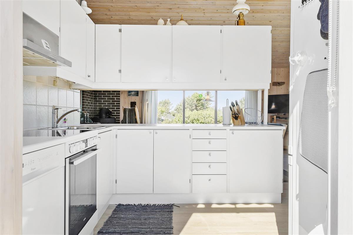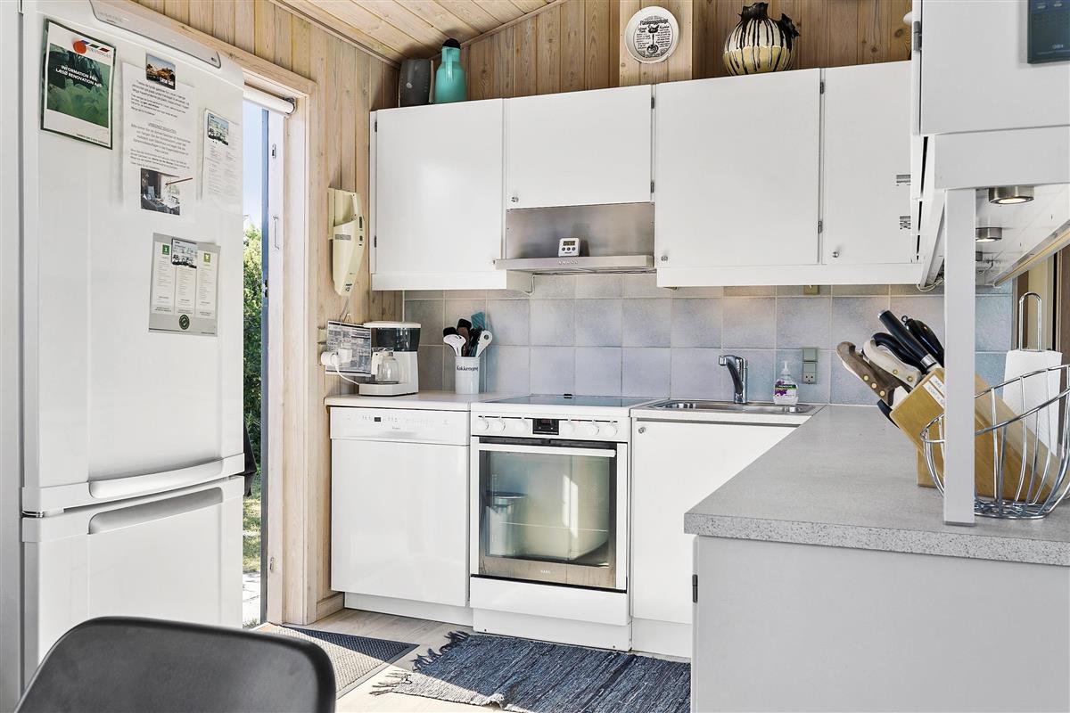 Offene Küche mit Speiseecke. Schönes, helles Wohnzimmer mit Brennofen. Schlafzimmer mit Doppelbett, Badezimmer mit Dusch. Auserdem gemütlicher Anbau mit Doppelbett und Badezimmer. Schöne Terrasse.