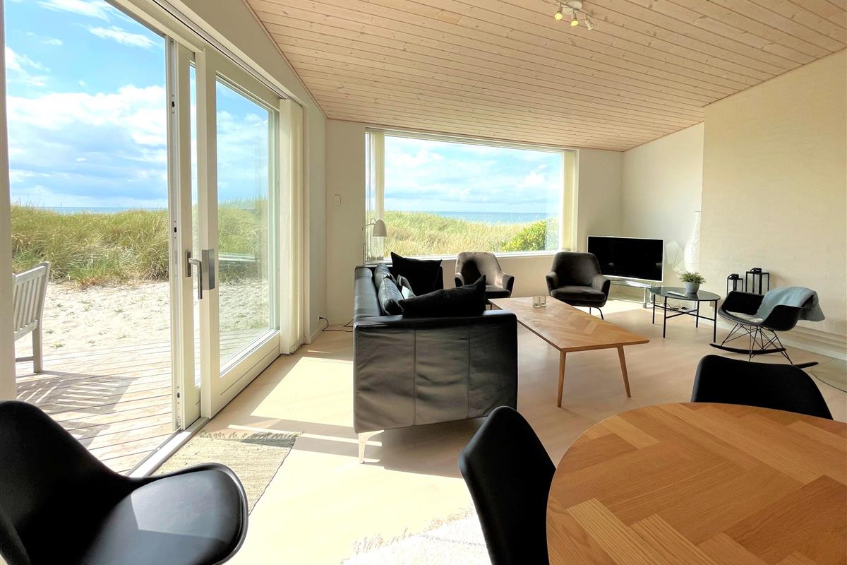 Neu bei Team Læsø. Inmitten der Dünen mit voller Meersicht, liegt dieses fantastische Strandhaus. Dies ist eines der besten Lage auf Læsø, zudem an einem der besten Sandstränden auf Læsø. Wo man wirklich den Strand und die Natur geniessen kann, und gleichzeitig nahe beim gemütlichem Hafenviertel ist. Selbst das Strandhaus beinhaltet einen schönen Eingang, grosse helle und Moderne Küche/Waschküche mit Barstuhl und Essplatz