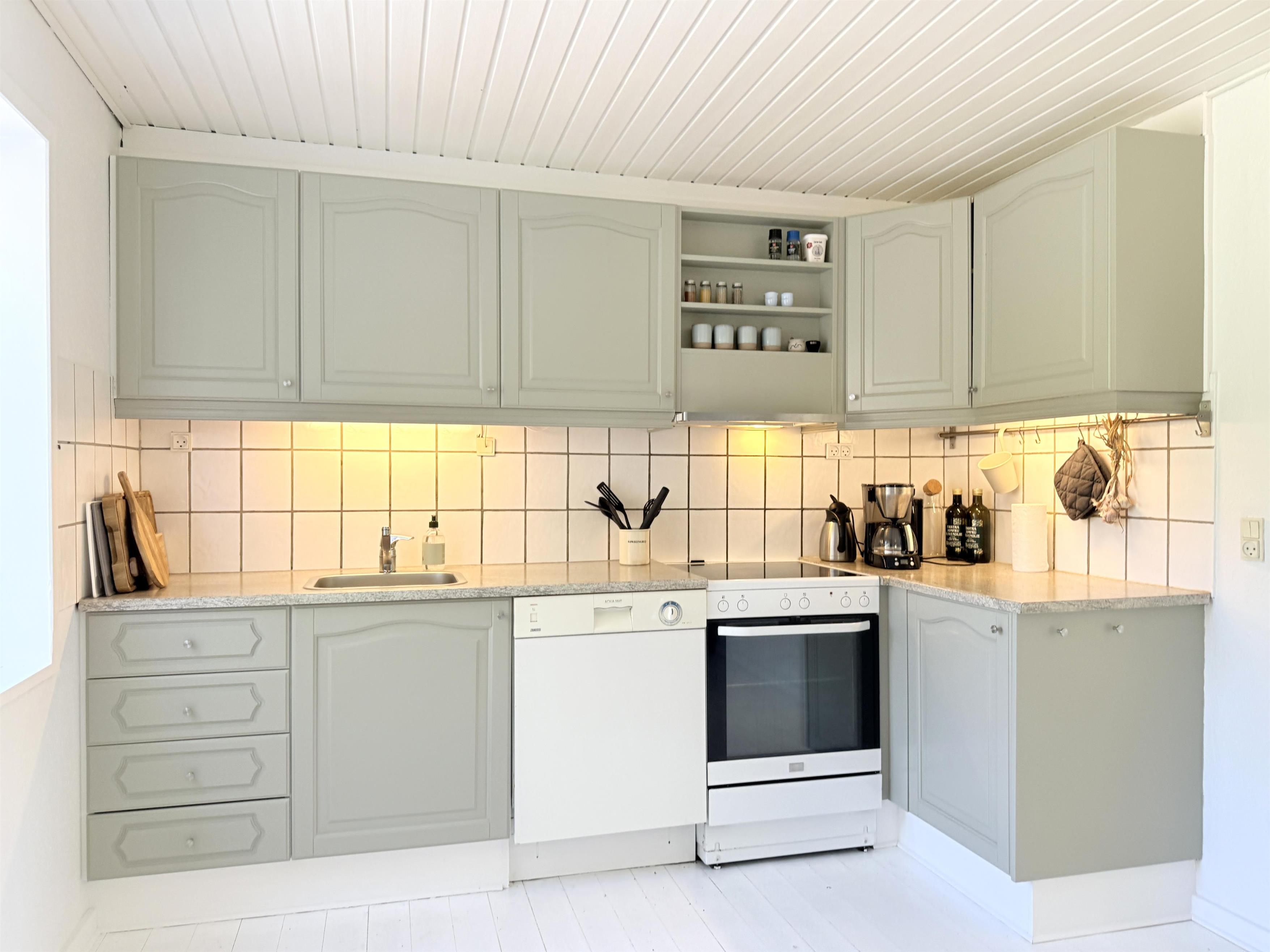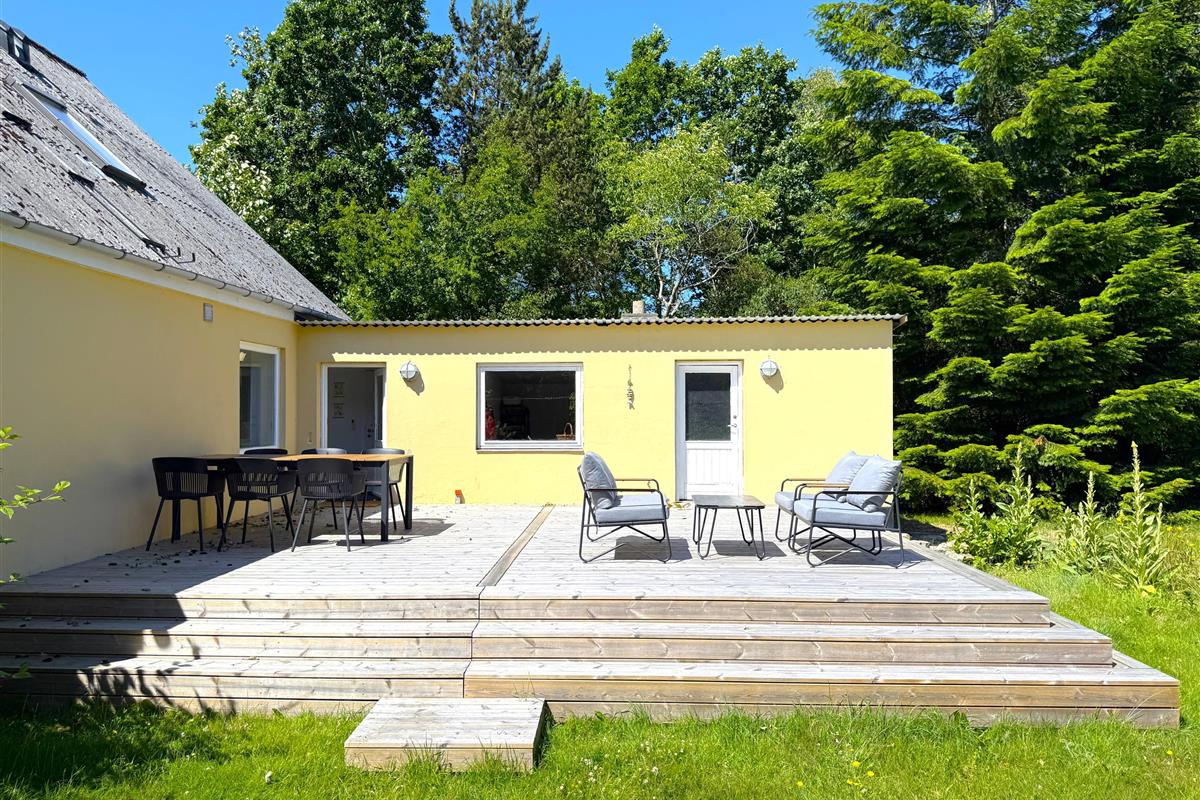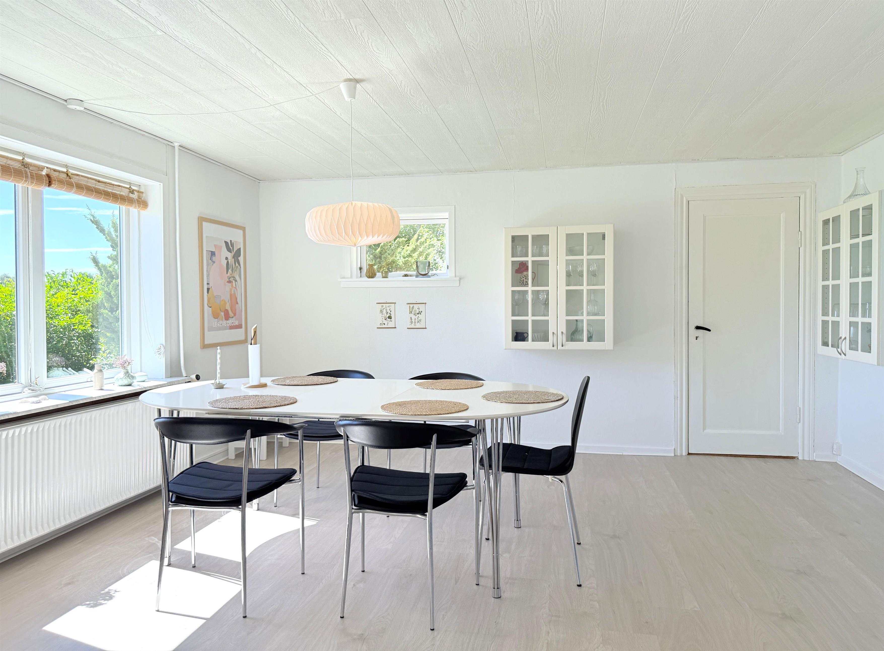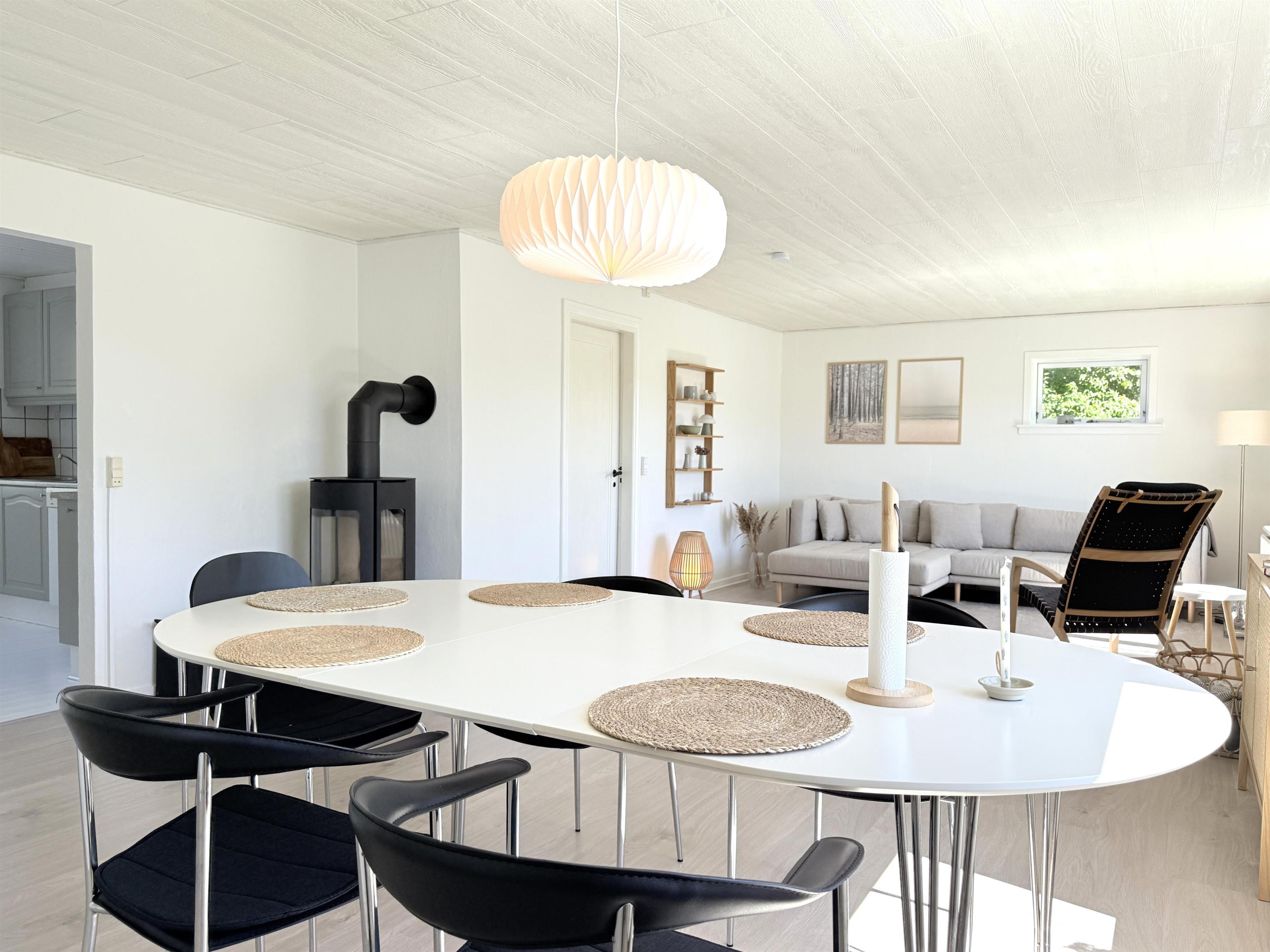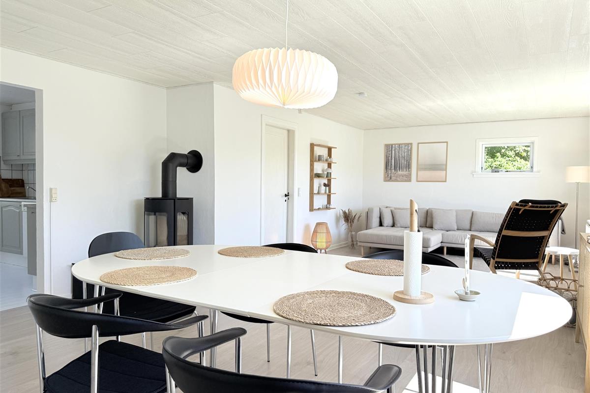 NEU bei Team Læsø. Dieses schöne Ferienhaus, das 2023 renoviert wurde, liegt auf einem großen, schönen Naturgrundstück und wirkt mit seinen vielen Quadratmetern äußerst einladend. Das Haus ist hell und geräumig und geschmackvoll eingerichtet. Es verfügt über eine große Küche in offener Verbindung zum Esszimmer und einem Sofabereich mit Fernseher. Von der Küche aus gelangt man auf eine große, schöne Terrasse mit mehreren Sonnenliegen und Gartenmöbeln sowie Blick auf das schöne, große Grundstück. Hier können Familie und Hund sich vergnügen, und der hauseigene Grill kann genutzt werden. Das Ferienhaus verfügt über zwei große Schlafzimmer mit Doppelbetten und ein Schlafzimmer mit zwei Einzelbetten. Ein schönes Badezimmer mit Dusche und Badewanne ist ebenfalls vorhanden. Das Ferienhaus liegt unweit von Læsøs wahrscheinlich schönstem Strand, dem Kongestranden, und dem gemütlichen Hafenviertel von Vesterø mit Einkaufsmöglichkeiten, Restaurants und Fischgeschäften. Vom Haus aus lässt sich Læsø leicht erkunden, und die Umgebung bietet viele gute Fahrradwege.