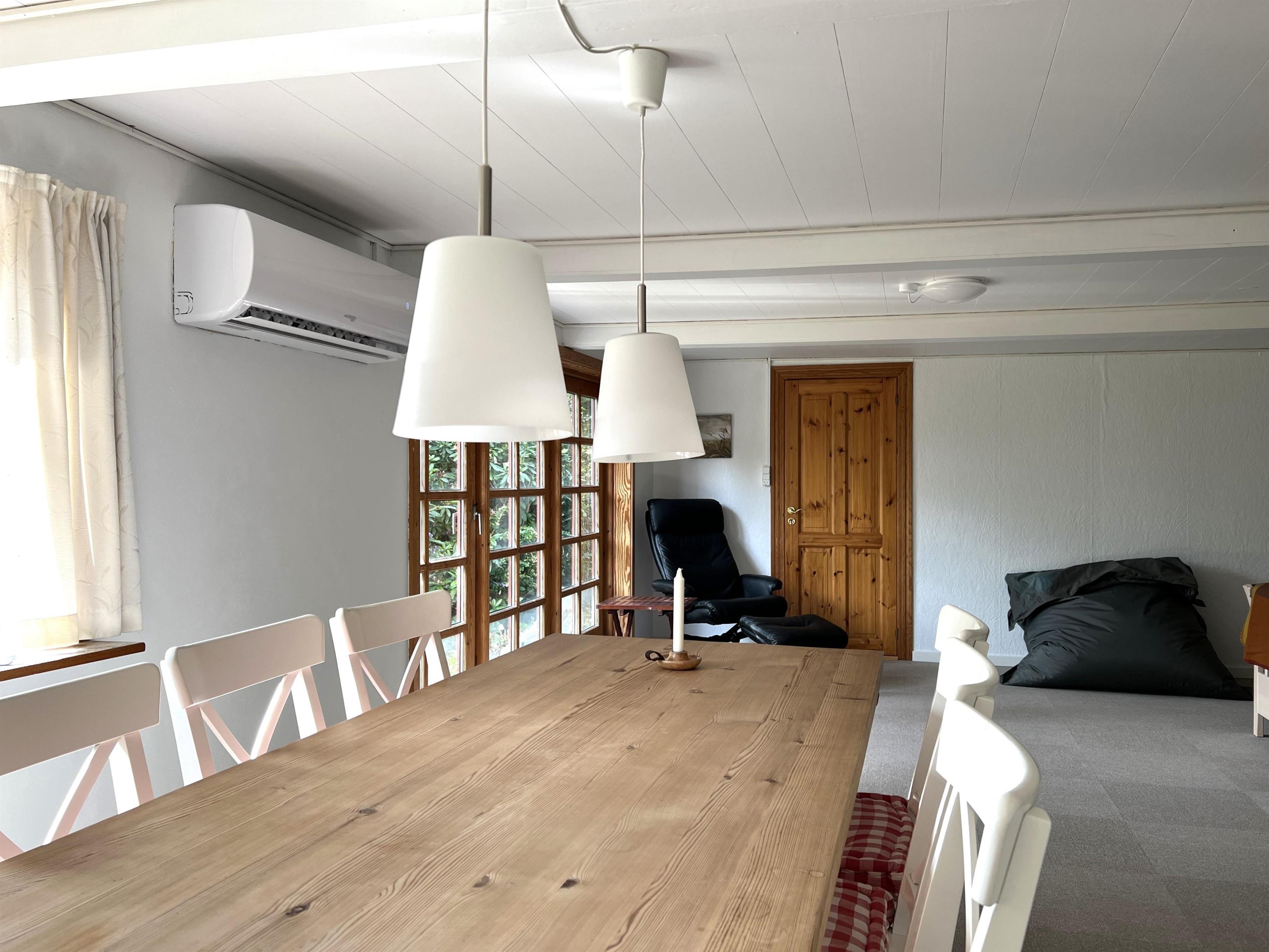 Dieses gemütliche Gehöft wurde gerade innen renoviert und wirkt einladend und komfortabel mit viel Platz für die große Familie. Das Haus liegt an einer ruhigen, kinderfreundlichen Straße mit umzäuntem Garten und Blick auf Felder. Darüber hinaus liegt es nicht weit vom wahrscheinlich besten Strand der Insel, Kongestranden, und der gemütlichen Hafenumgebung des Vesterø-Hafens entfernt. Das Haus selbst bietet Platz für neun Personen in drei Schlafzimmern mit Doppelbetten und einem Schlafzimmer mit drei Einzelbetten. Große, funktionale Küche in Verbindung mit Essbereich und sehr schönes, geräumiges Wohnzimmer. Im Wohnzimmer gibt es einen weiteren Esstisch für die große Familie. Ausgang zur Terrasse mit Garten und guten Liegeflächen. Schönes Badezimmer mit Dusche. Kurze Entfernung zum Hafen von Vesterø mit Fischhändlern, Einkaufsmöglichkeiten, Lebensmittelgeschäften und Restaurants.