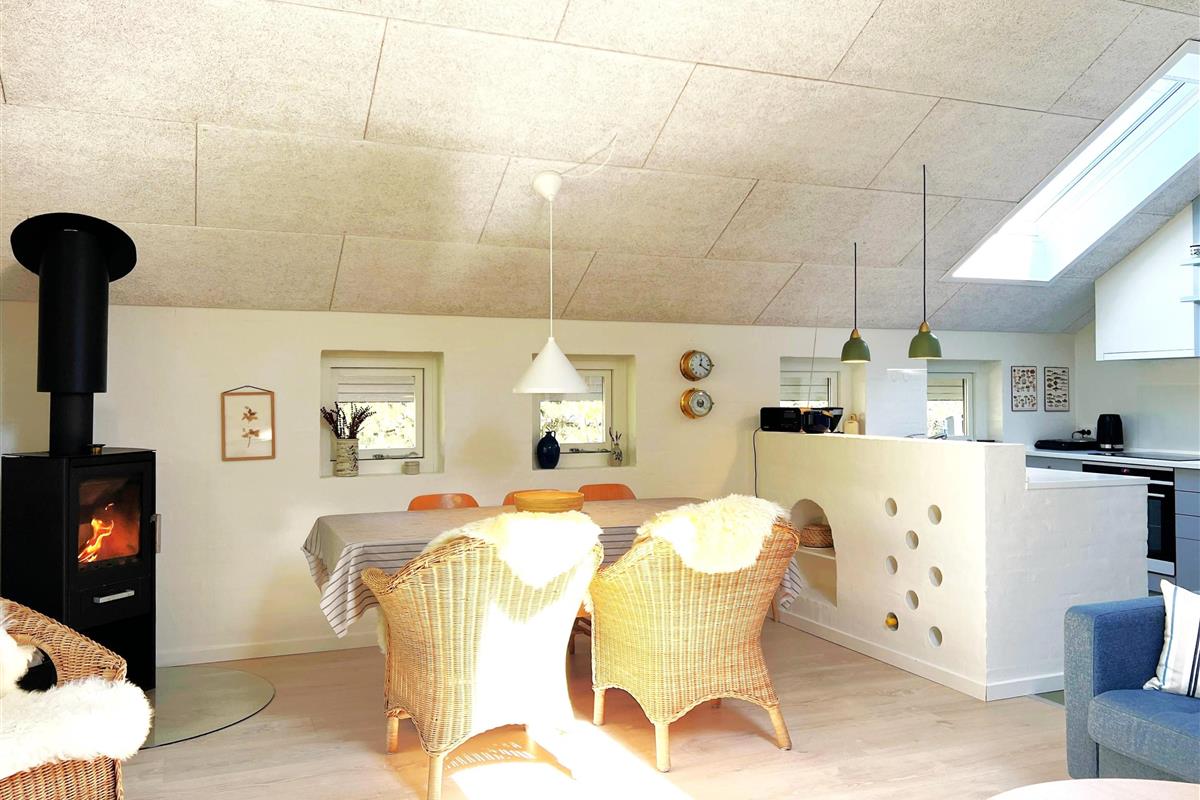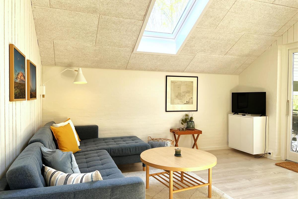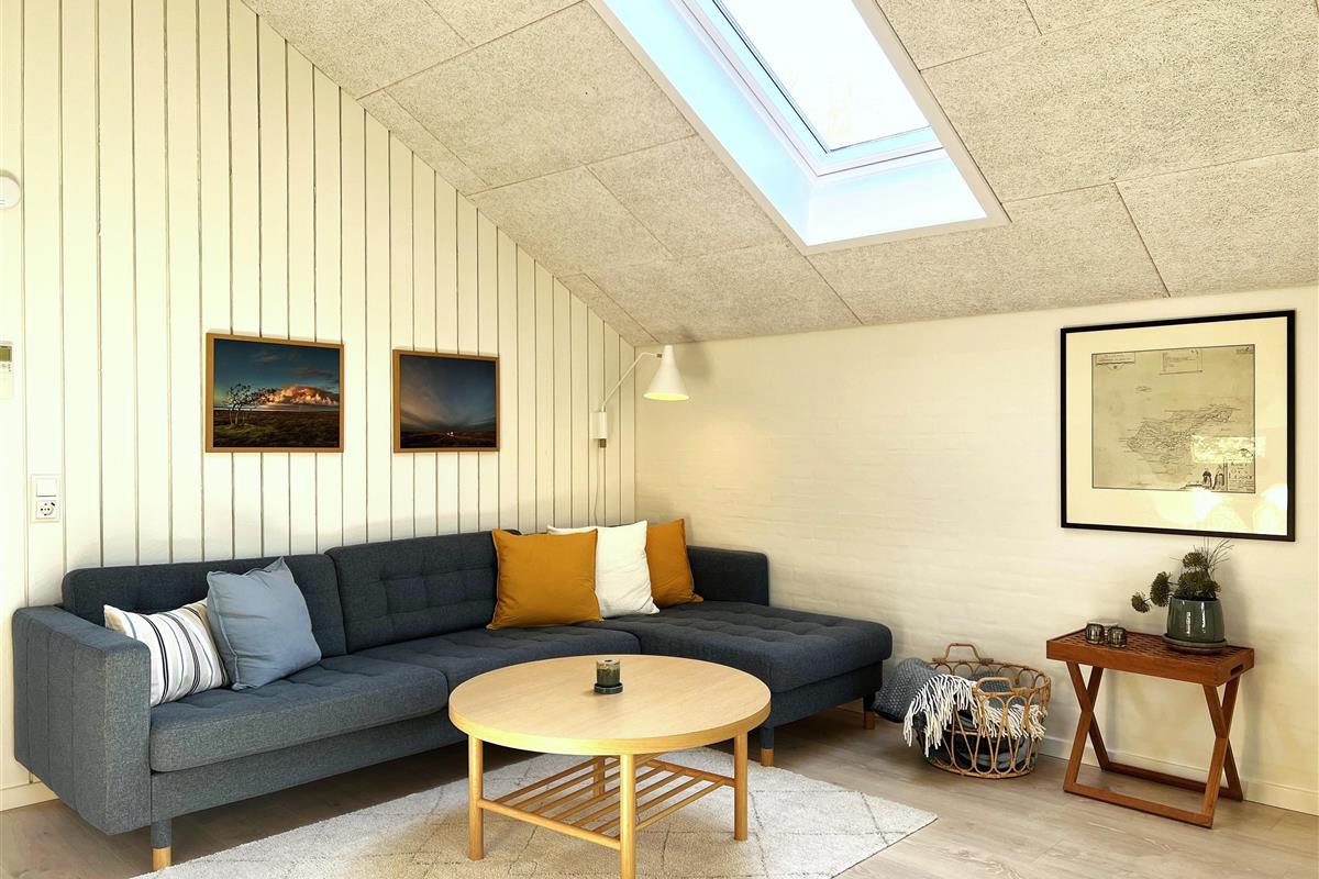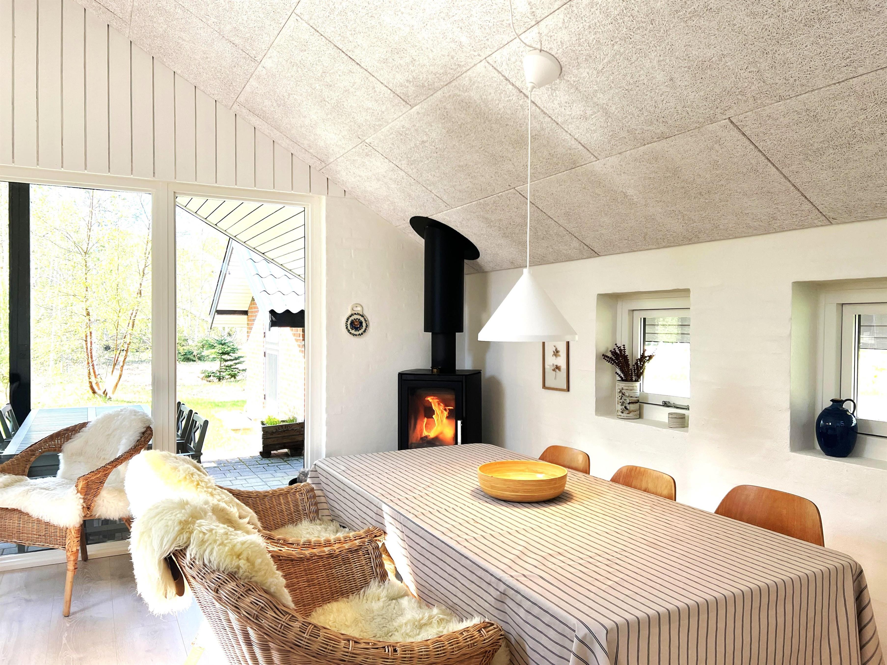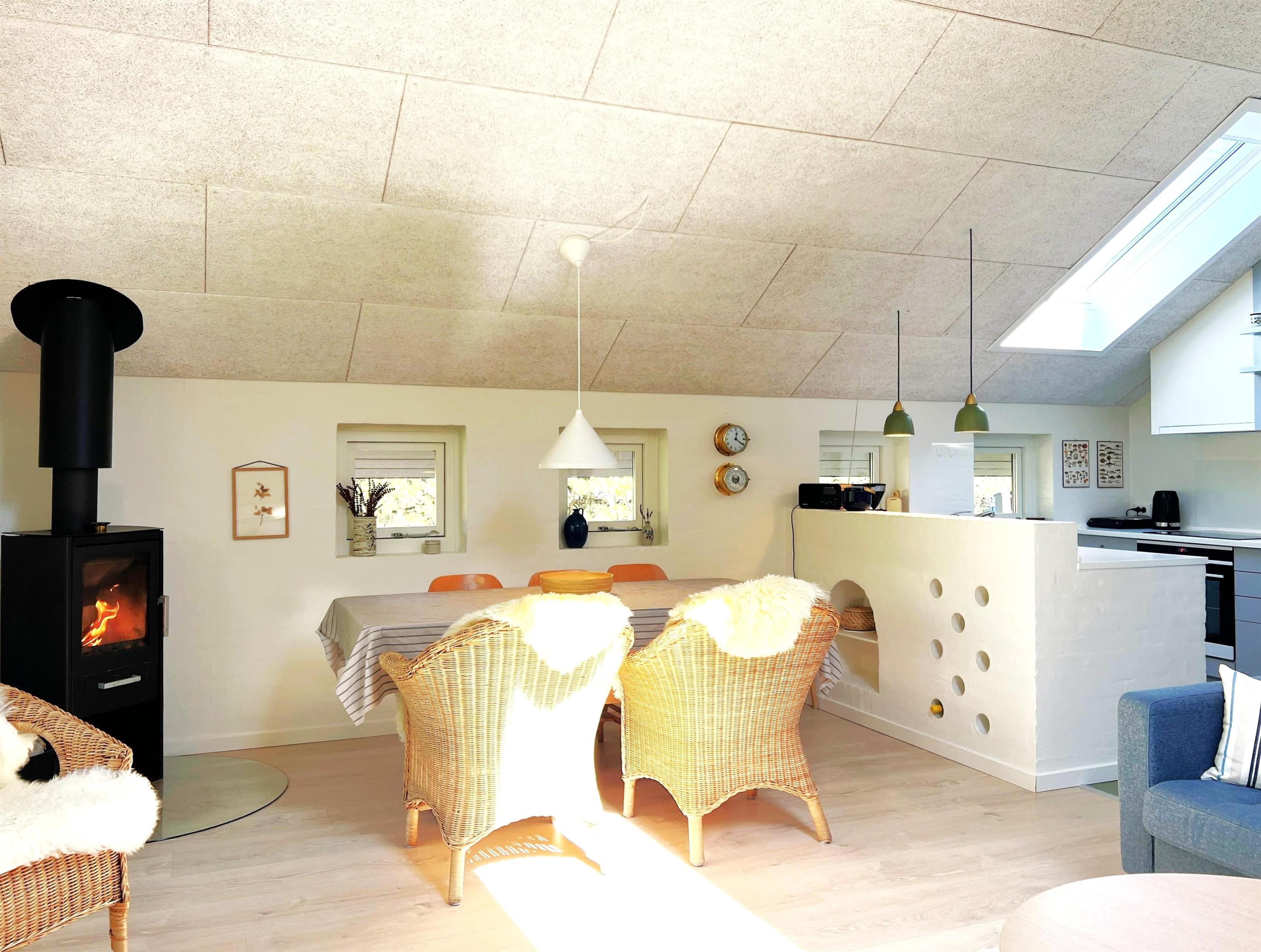 Das Ferienhaus selbst verfügt über eine schöne, moderne Küche in offener Verbindung zum Esszimmer und einer Sofaecke mit Fernseher. Hier kann sich die ganze Familie versammeln und vom Wohnzimmer aus hat man Zugang zu einer schön gelegenen, überdachten Terrasse mit Gartenmöbeln und einem Grill. Rund um das Haus stehen mehrere schöne Sonnenliegen und Gartenmöbel zur Verfügung, wo Sie das besondere Læsøro im Einklang mit der Natur genießen können. Im Garten befindet sich zudem eine gemütliche Feuerstelle mit Sitzgarnitur. Das Ferienhaus verfügt außerdem über zwei geräumige Schlafzimmer, eines mit einem Doppelbett und eines mit zwei Einzelbetten. Schönes Badezimmer mit Dusche. Das Haus ist liebevoll eingerichtet und man spürt die gemütliche Sommerhausatmosphäre des Hauses.