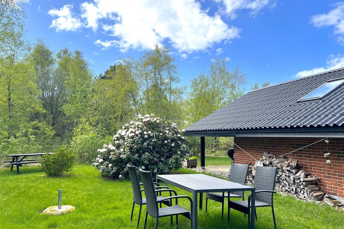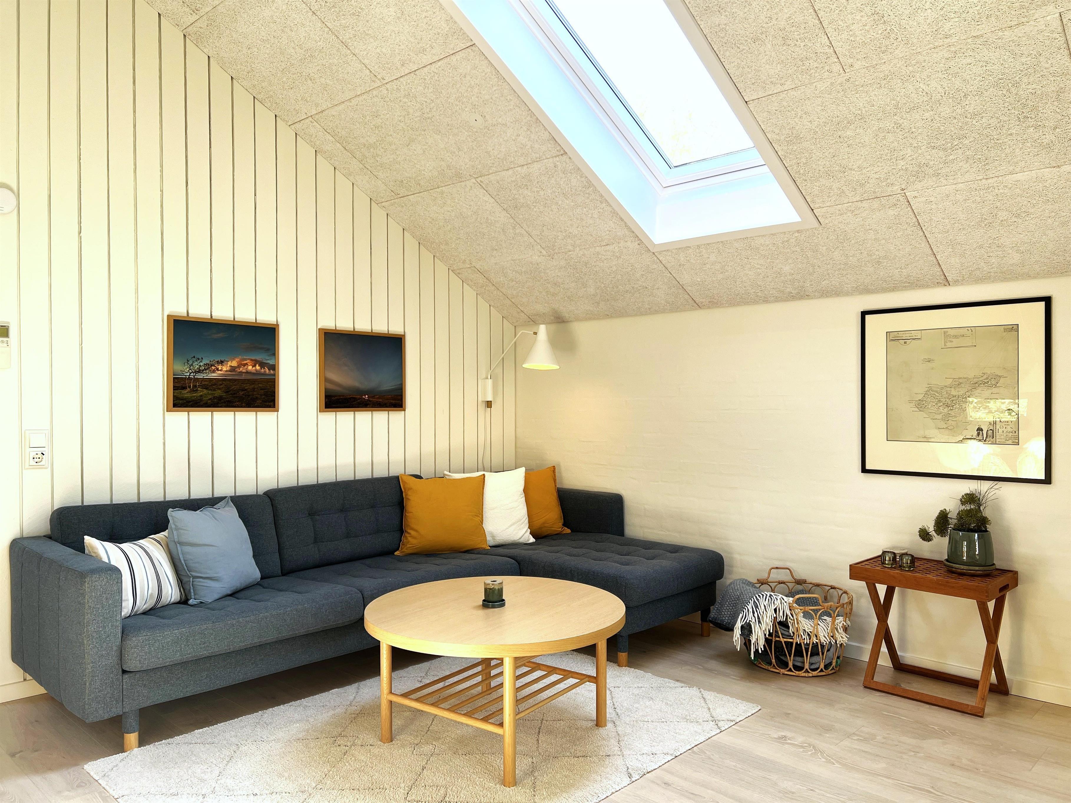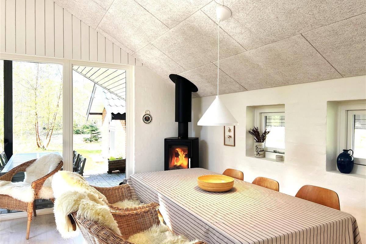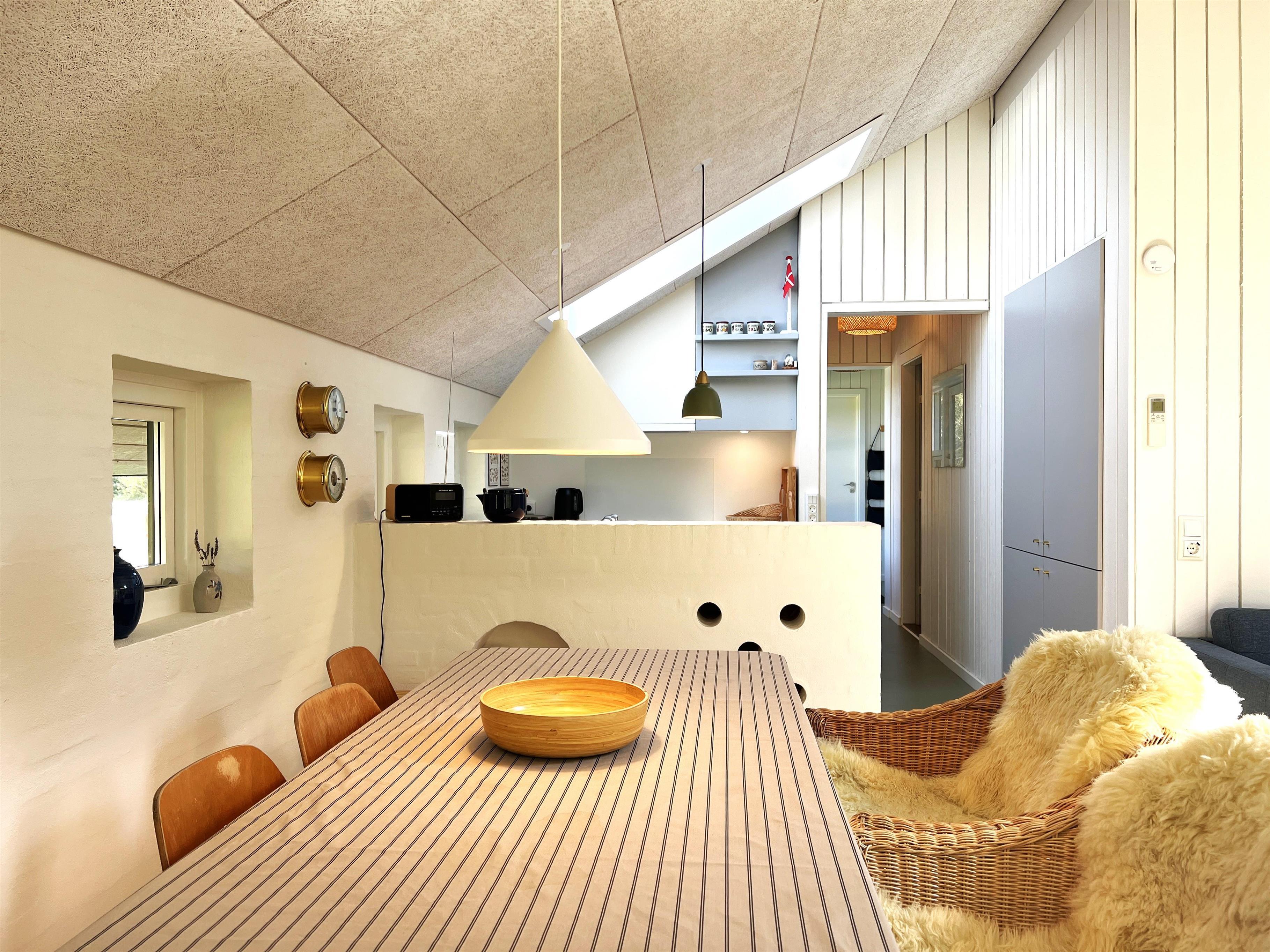 Das Ferienhaus selbst verfügt über eine schöne, moderne Küche in offener Verbindung zum Esszimmer und einer Sofaecke mit Fernseher. Hier kann sich die ganze Familie versammeln und vom Wohnzimmer aus hat man Zugang zu einer schön gelegenen, überdachten Terrasse mit Gartenmöbeln und einem Grill. Rund um das Haus stehen mehrere schöne Sonnenliegen und Gartenmöbel zur Verfügung, wo Sie das besondere Læsøro im Einklang mit der Natur genießen können. Im Garten befindet sich zudem eine gemütliche Feuerstelle mit Sitzgarnitur. Das Ferienhaus verfügt außerdem über zwei geräumige Schlafzimmer, eines mit einem Doppelbett und eines mit zwei Einzelbetten. Schönes Badezimmer mit Dusche. Das Haus ist liebevoll eingerichtet und man spürt die gemütliche Sommerhausatmosphäre des Hauses.