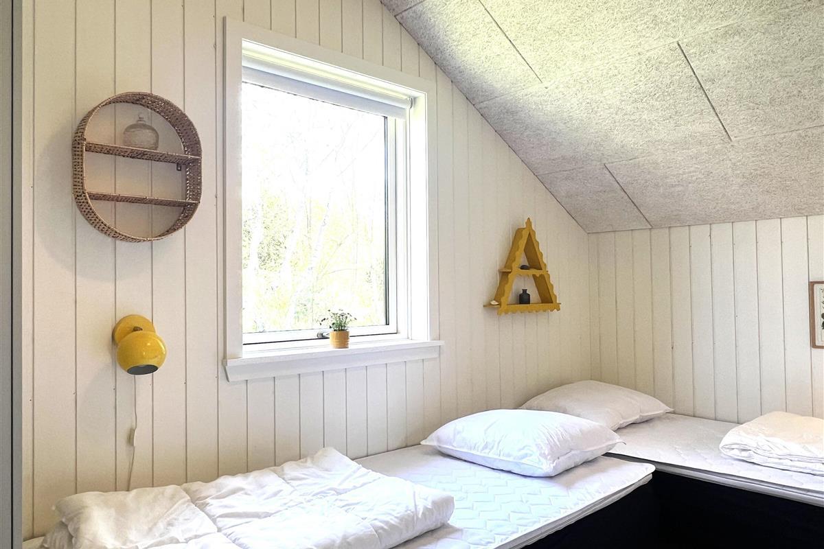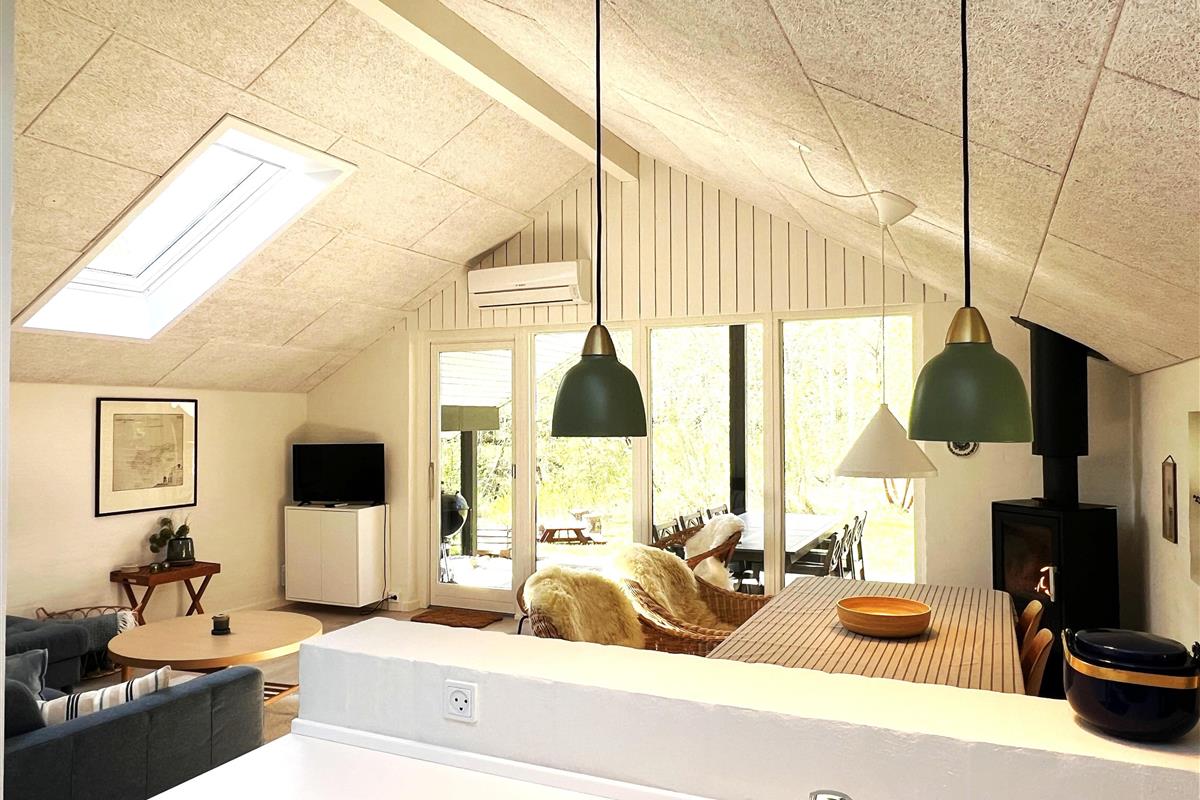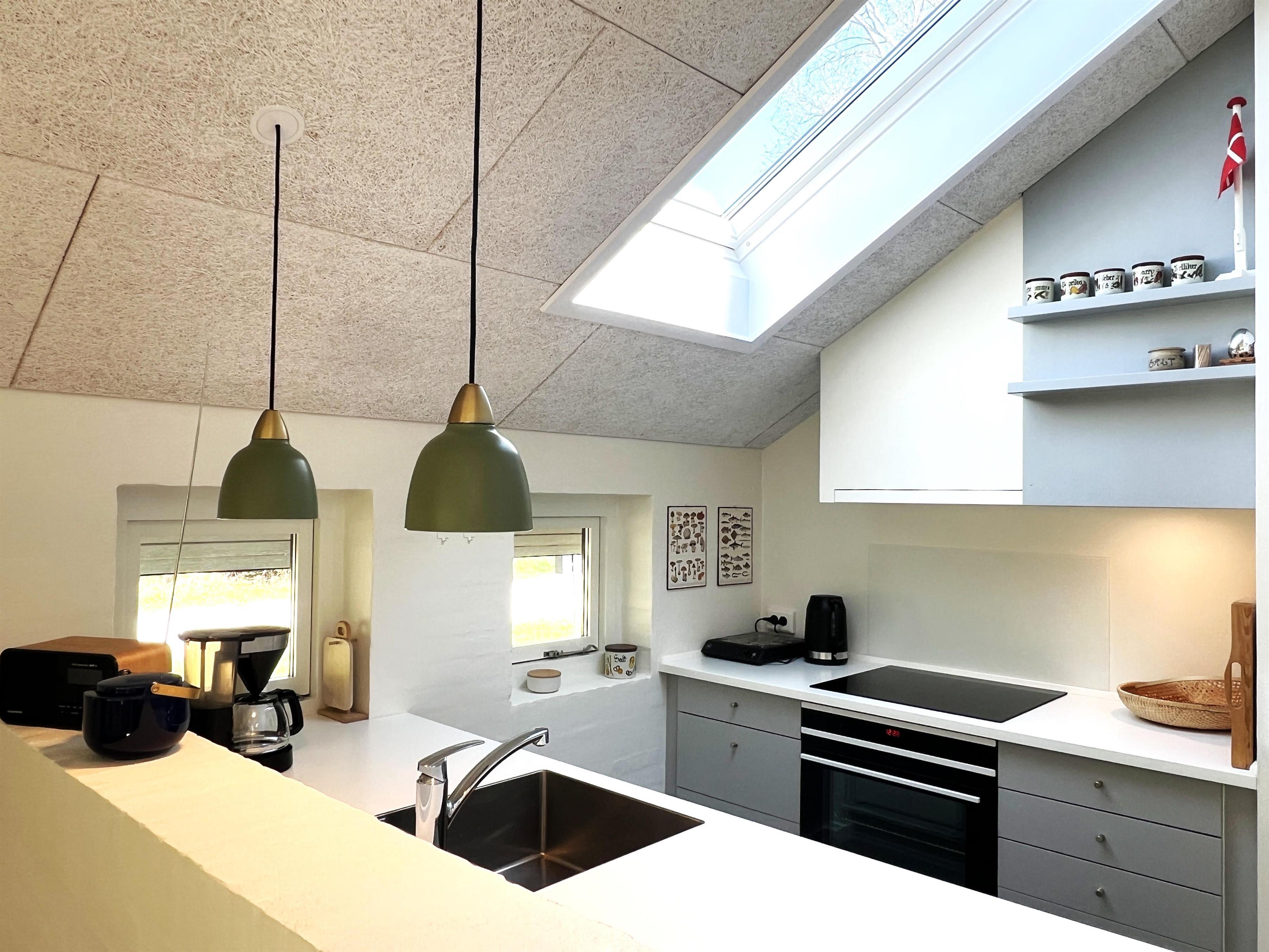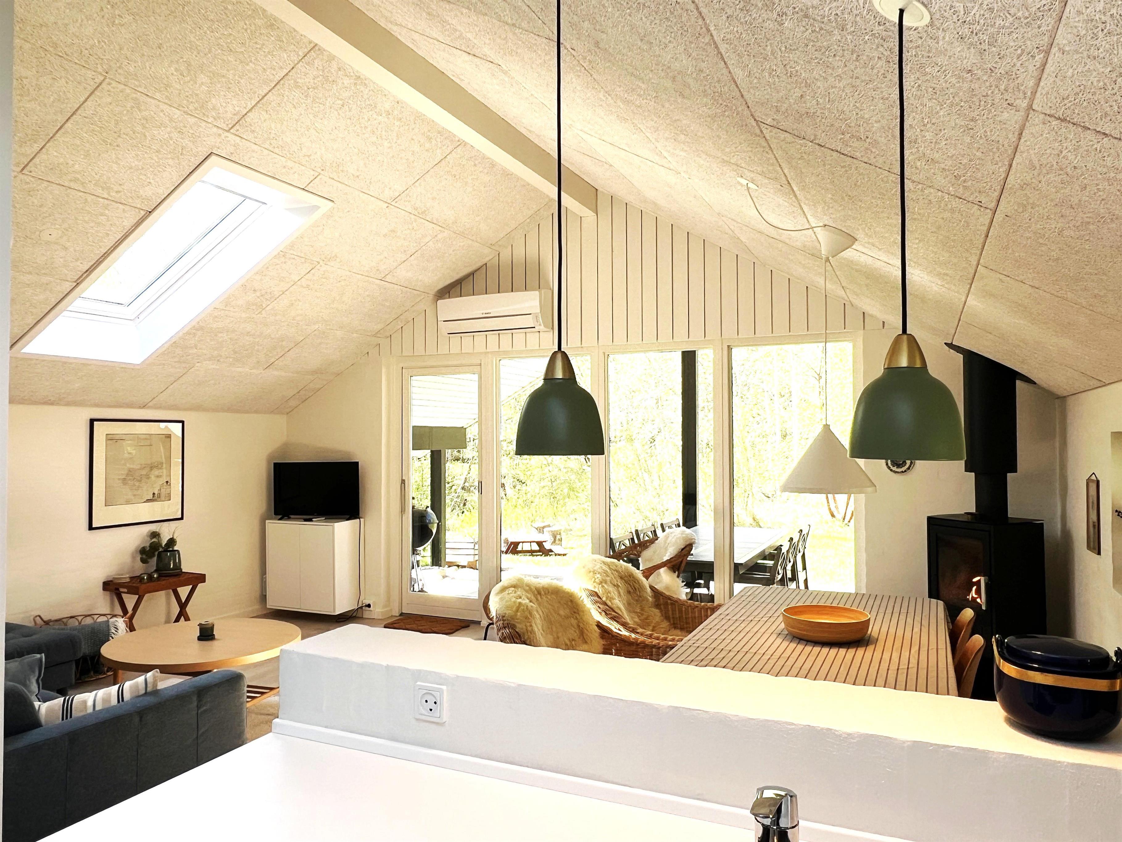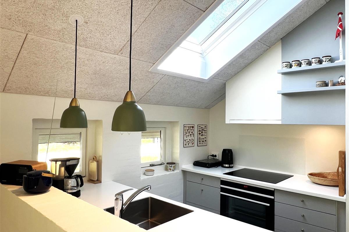 Das Ferienhaus selbst verfügt über eine schöne, moderne Küche in offener Verbindung zum Esszimmer und einer Sofaecke mit Fernseher. Hier kann sich die ganze Familie versammeln und vom Wohnzimmer aus hat man Zugang zu einer schön gelegenen, überdachten Terrasse mit Gartenmöbeln und einem Grill. Rund um das Haus stehen mehrere schöne Sonnenliegen und Gartenmöbel zur Verfügung, wo Sie das besondere Læsøro im Einklang mit der Natur genießen können. Im Garten befindet sich zudem eine gemütliche Feuerstelle mit Sitzgarnitur. Das Ferienhaus verfügt außerdem über zwei geräumige Schlafzimmer, eines mit einem Doppelbett und eines mit zwei Einzelbetten. Schönes Badezimmer mit Dusche. Das Haus ist liebevoll eingerichtet und man spürt die gemütliche Sommerhausatmosphäre des Hauses.