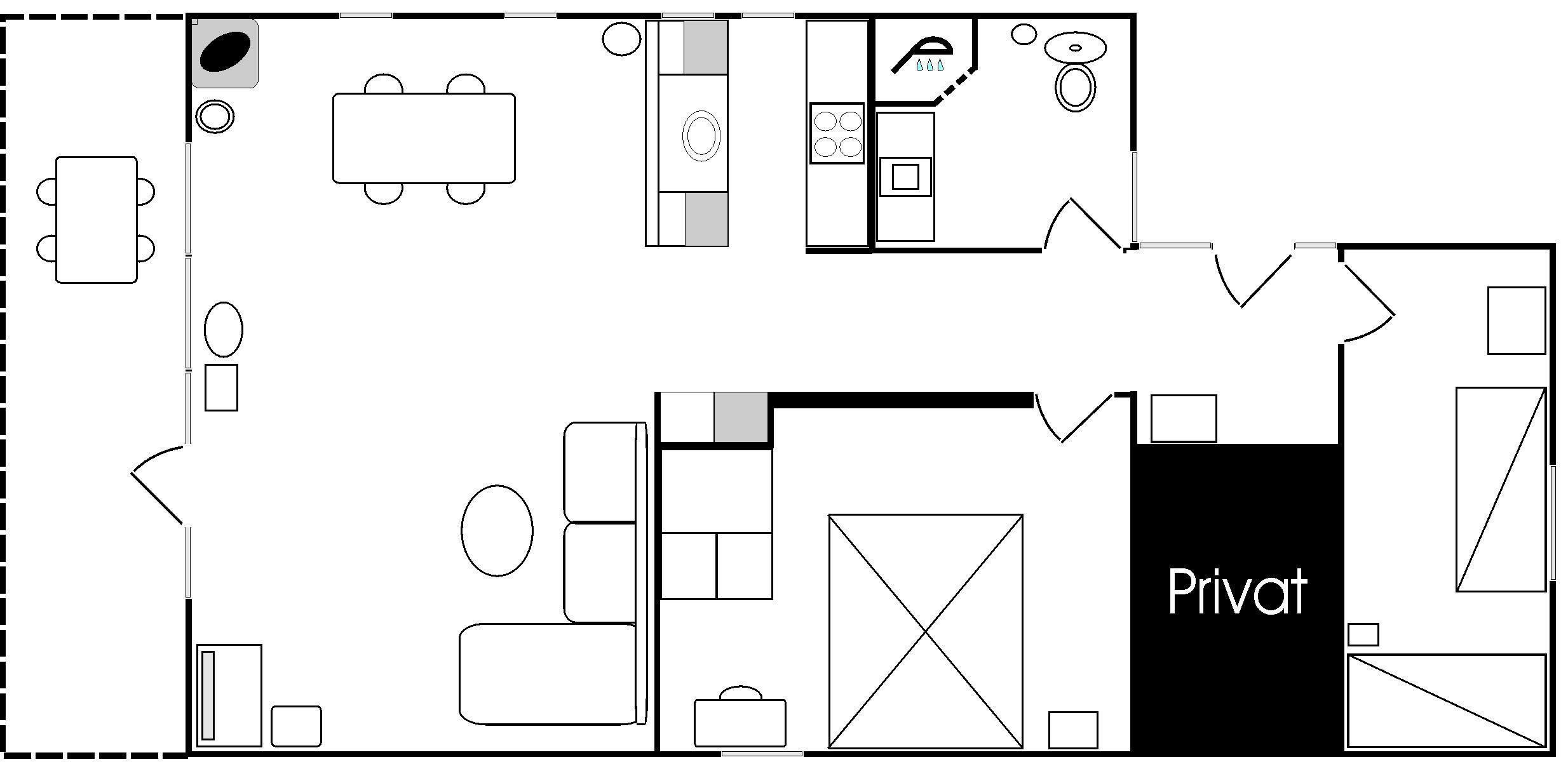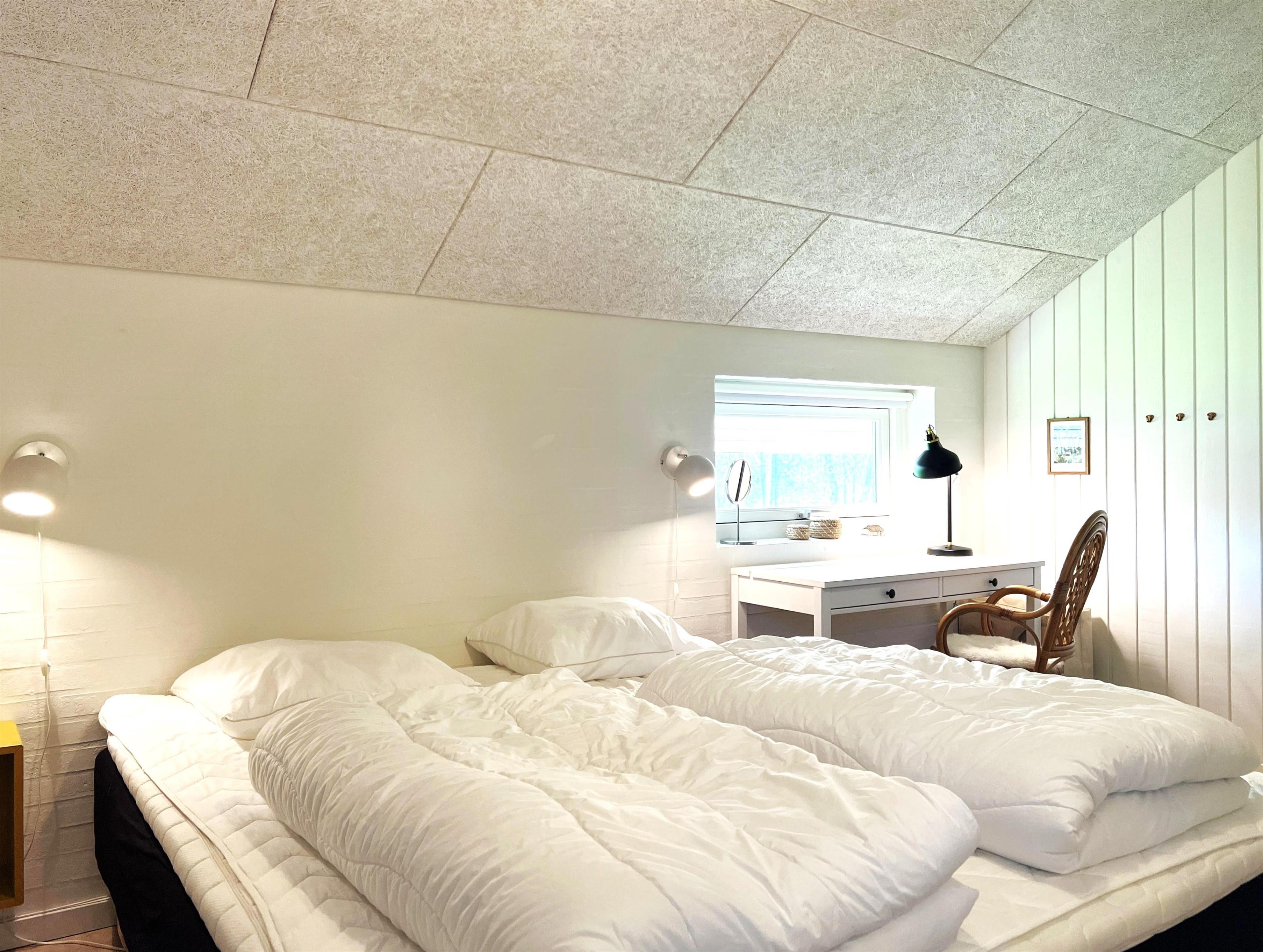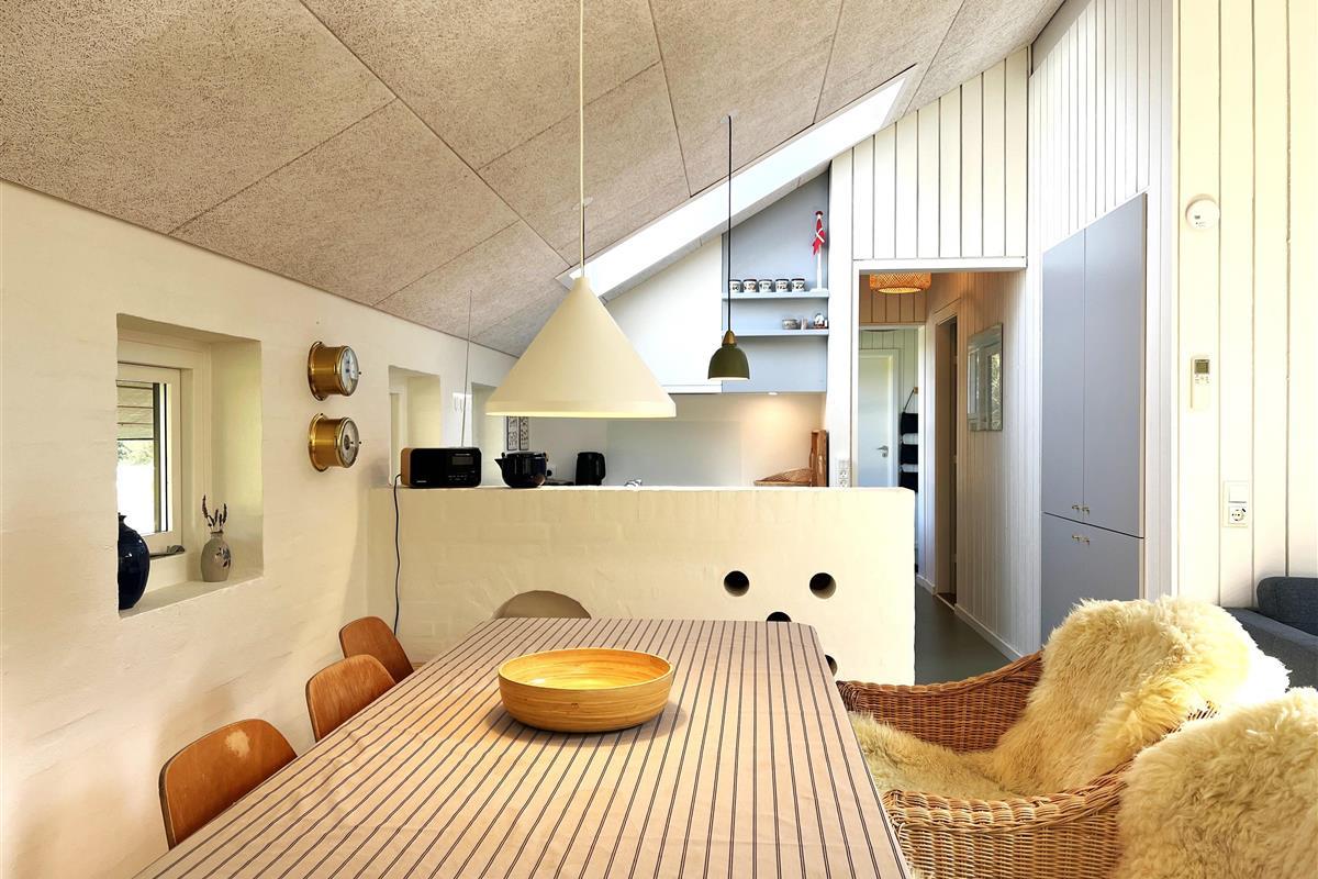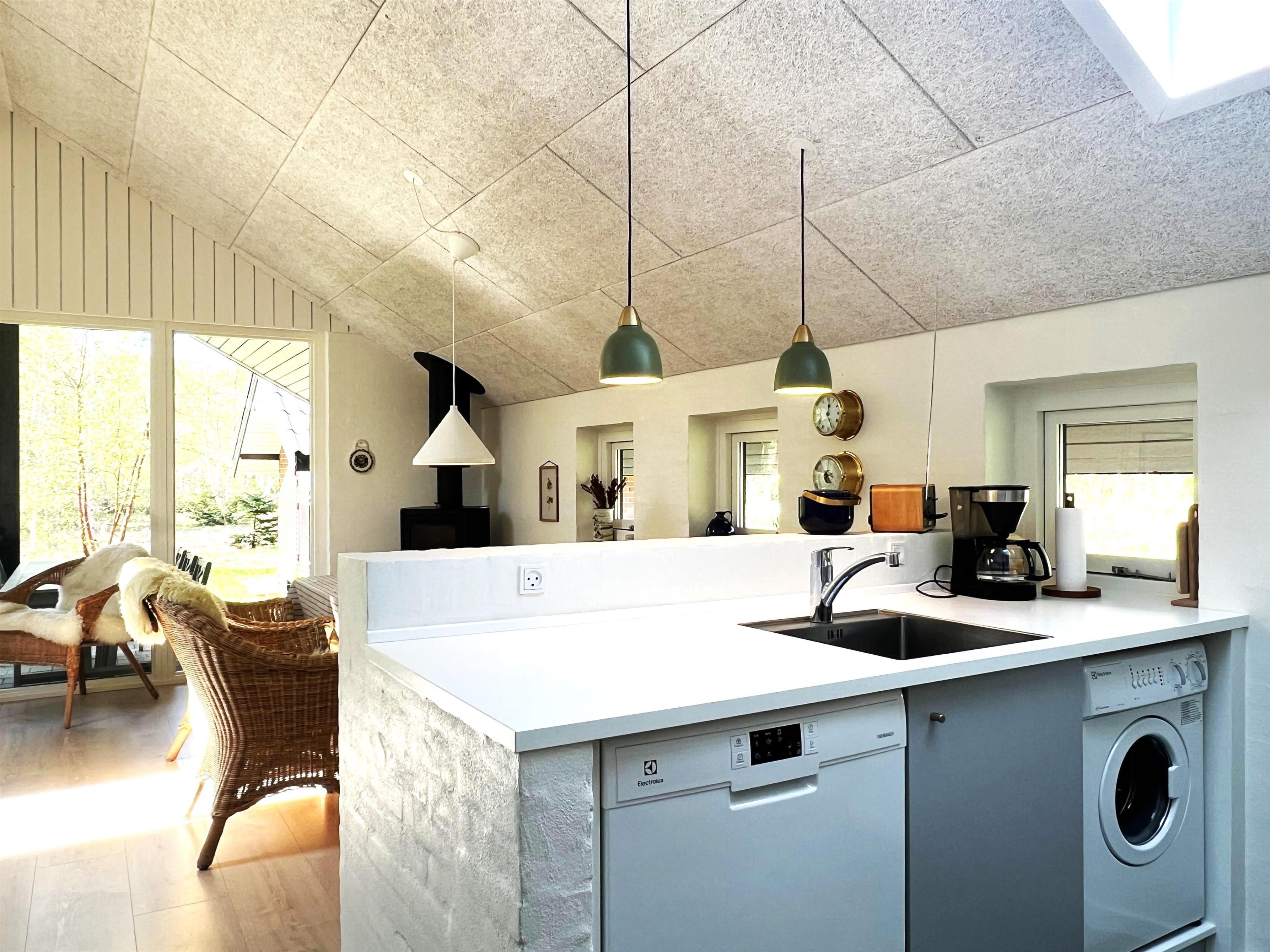 Das Ferienhaus selbst verfügt über eine schöne, moderne Küche in offener Verbindung zum Esszimmer und einer Sofaecke mit Fernseher. Hier kann sich die ganze Familie versammeln und vom Wohnzimmer aus hat man Zugang zu einer schön gelegenen, überdachten Terrasse mit Gartenmöbeln und einem Grill. Rund um das Haus stehen mehrere schöne Sonnenliegen und Gartenmöbel zur Verfügung, wo Sie das besondere Læsøro im Einklang mit der Natur genießen können. Im Garten befindet sich zudem eine gemütliche Feuerstelle mit Sitzgarnitur. Das Ferienhaus verfügt außerdem über zwei geräumige Schlafzimmer, eines mit einem Doppelbett und eines mit zwei Einzelbetten. Schönes Badezimmer mit Dusche. Das Haus ist liebevoll eingerichtet und man spürt die gemütliche Sommerhausatmosphäre des Hauses.