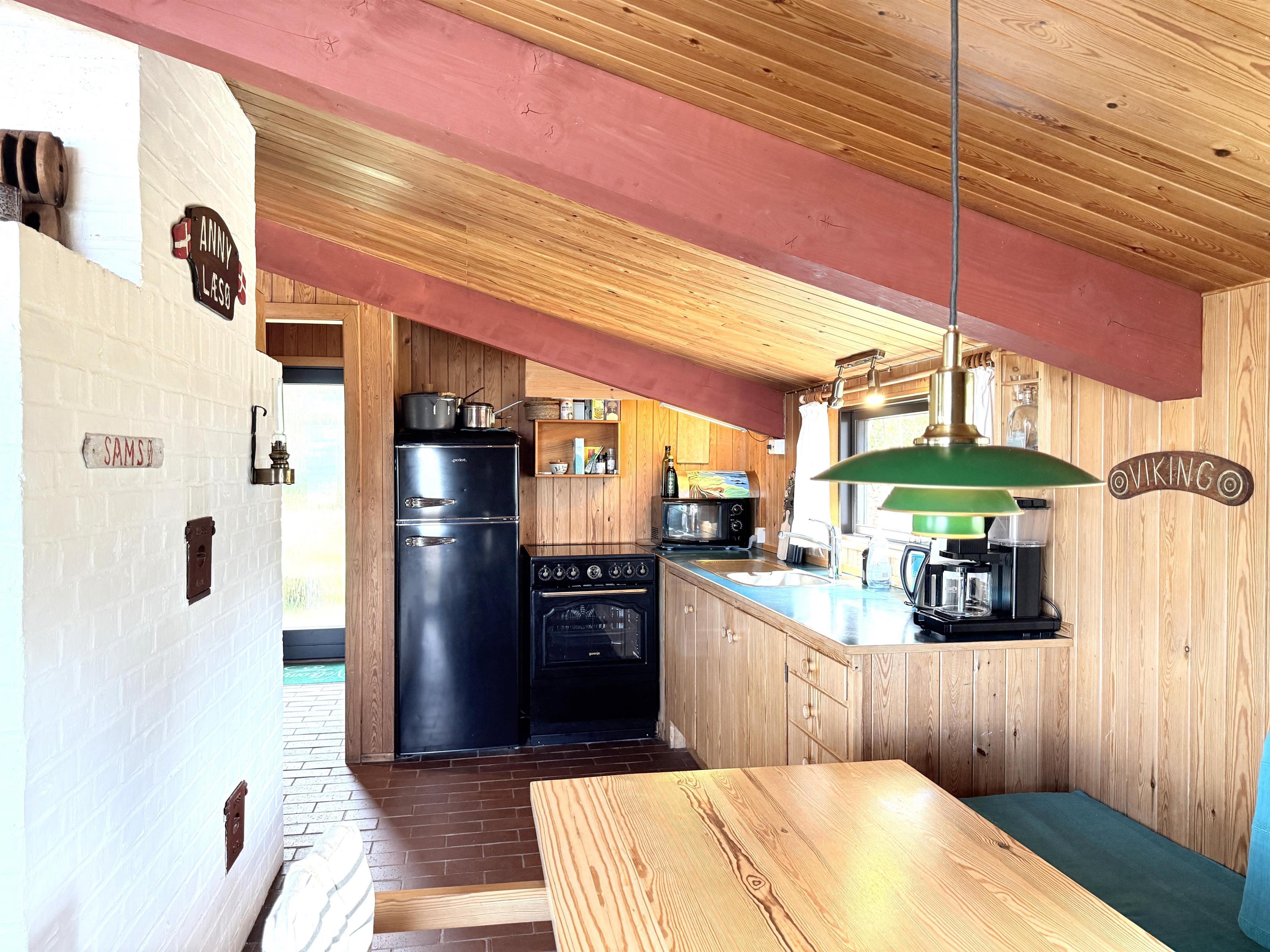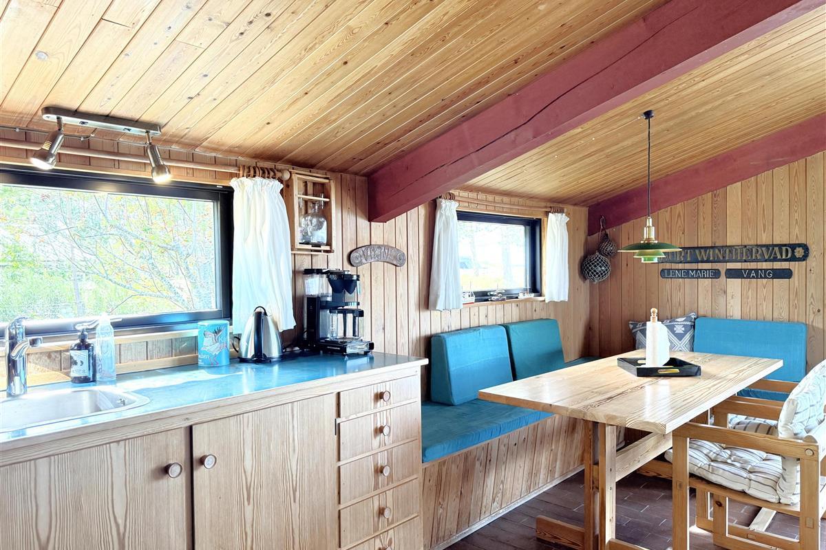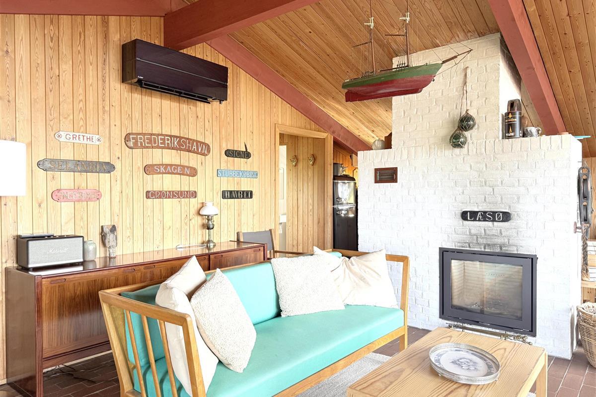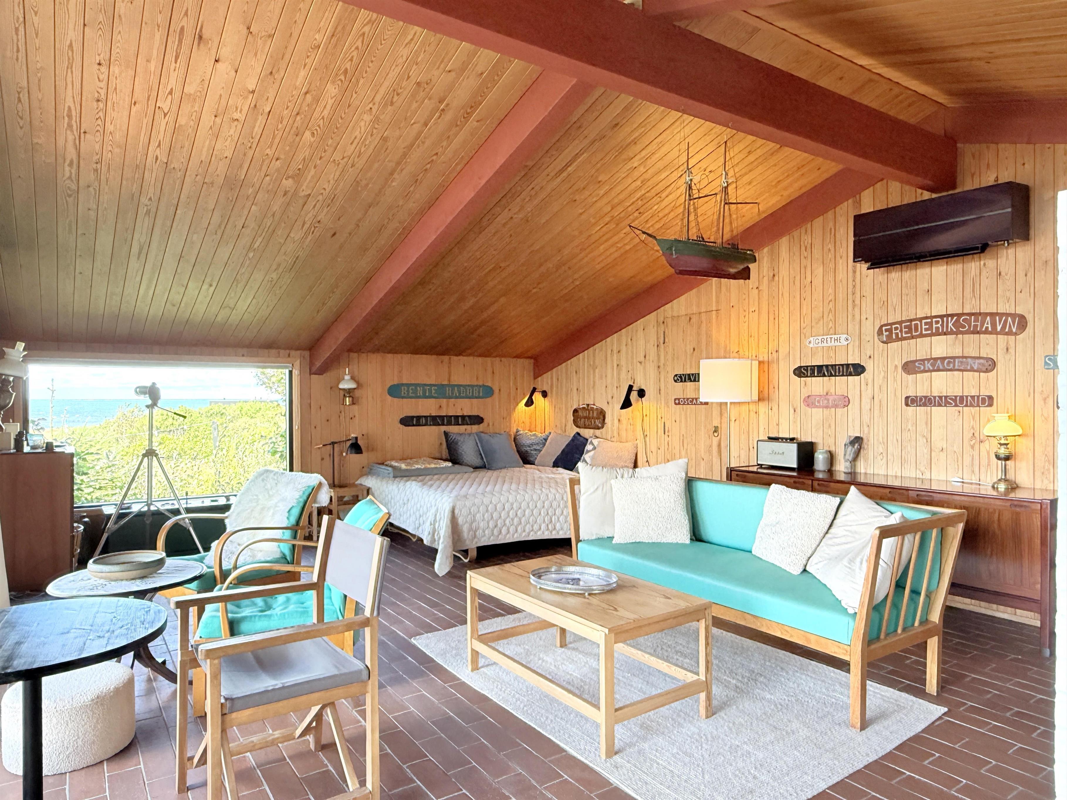 Die alten Bootstafeln schmücken die Wände, das es das Ferienhaus zu einem gemütlichem Ort macht. Der Garten ist uneinsehbar, mit einer überdeckten Terrasse Richtung Meer, das gibt die Garantie für gemütliche Stunden und Ferien-erlebnisse. Das Essen können sie auf einem Kohlen oder Gasgrill zubereiten, und geniessen. Und am Abend können die Lichter von Frederikshavn und der Führturm von Rønnerne das Gemüt zur Ruhe bringen.