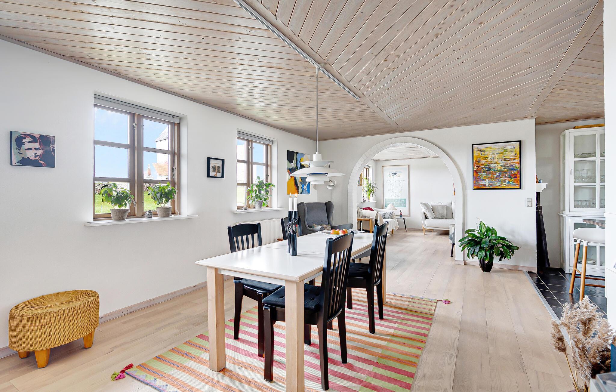 Het interieur van je vakantiehuis in Strandby, dat genoeg ruimte biedt voor een grote familie, maakt indruk met zijn open en lichte ontwerp. In de woonkamer nodigen comfortabele stoelen en een grote eethoek uit om samen tijd door te brengen. De moderne keuken is goed uitgerust zodat je met gemak kunt koken. Boven kun je genieten van een prachtig uitzicht op de Limfjord. Dit is de ideale plek om een ontspannen middag door te brengen. De smaakvolle inrichting creëert een uitnodigende sfeer waardoor je je meteen thuis voelt.