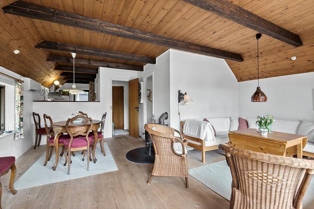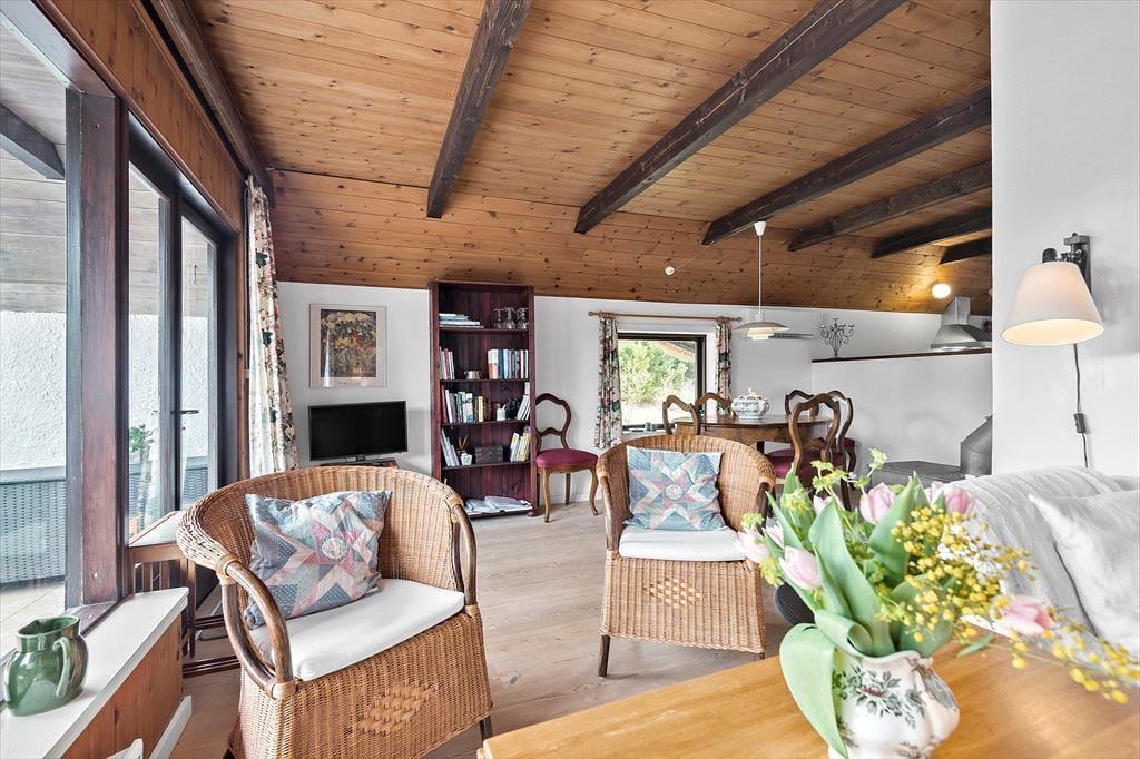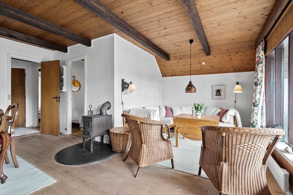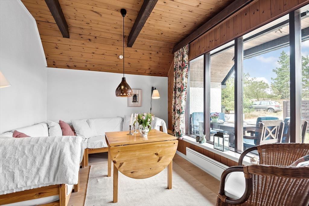 Dieses einladende Haus aus dem Jahr 1968 beinhaltet zwei Schlafzimmer, ein Badezimmer, eine Küche und ein schönes Wohnzimmer, welches um eine Ecke herum reicht. Alle Räume erstrahlen in einem gepflegten Zustand, und die klassische Möblierung trägt zusammen mit dem Kaminofen, den sichtbaren Balken und anderen stimmungsvollen Details zur gemütlichen Atmosphäre im Wohnbereich bei. Das Wohnzimmer und die Küche wurden im Zuge der Renovierung des Hauses im Jahr 1999 modernisiert. Beide Räumlichkeiten werden lediglich durch eine halbhohe Mauer voneinander geteilt, sodass du beim Zubereiten der Mahlzeiten schön im Familienleben integriert bleiben kannst. Wenn schließlich das Essen serviert wird, kannst du den Esstisch mit dem zum Inventar gehörenden feinen Porzellan decken.