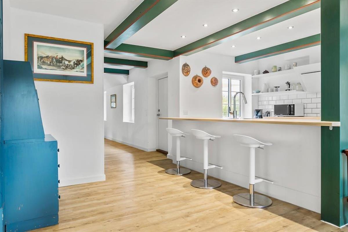 „Bornholmerhus“, wie das Gebäude genannt wird, hat eine Geschichte, die bis ins 19. Jahrhundert zurückreicht. Zunächst gehörte es dem Walfänger Kapitän Andersen und später einer Kaufmannsfamilie. Obwohl es heute als schicke Ferienwohnung eingerichtet ist, wirst du in eine andere Zeit versetzt, wenn du durch das Gartentor und auf die verzierte Haustür zugehst. Innen wurden die Räume sorgfältig mit holländischen Fliesen, farbenfrohen Holzmöbeln im Landhausstil und anderen Gegenständen eingerichtet, die perfekt passen – aber auch moderne Elemente wurden integriert, um den Komfort zu erhöhen. Zum Beispiel wirst du im größeren der beiden Badezimmer mit einem Whirlpool und einer Sauna verwöhnt, und die gut ausgestattete offene Küche lässt das Herz eines jeden Hobbykochs höher schlagen, wenn es Zeit ist, zu kochen und zu backen. In einem der beiden Wohnzimmer gibt es einen gemütlichen Kamin, an dem sich alle versammeln können: Vielleicht ist dies der Ort, an dem ihr stundenlang zusammensitzt, bis es Zeit ist, sich in den einladenden Schlafzimmern zur Ruhe zu legen.