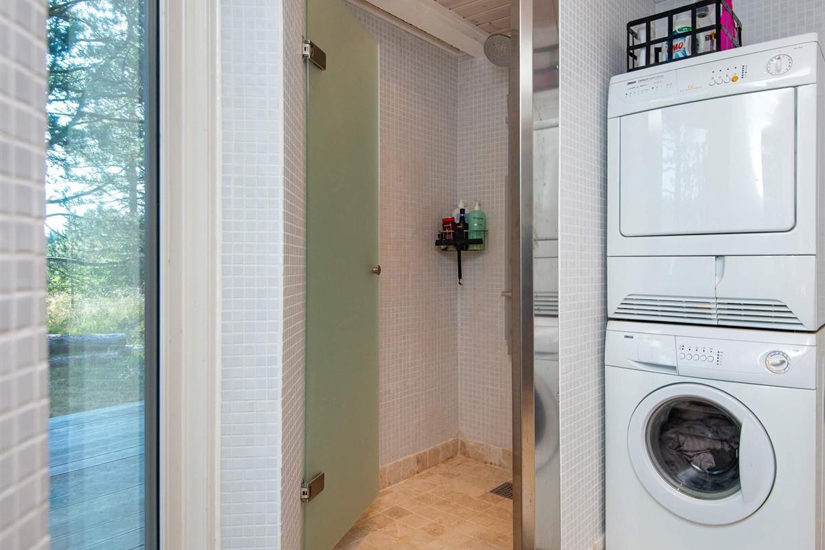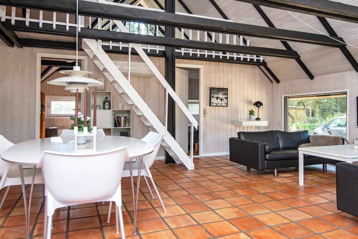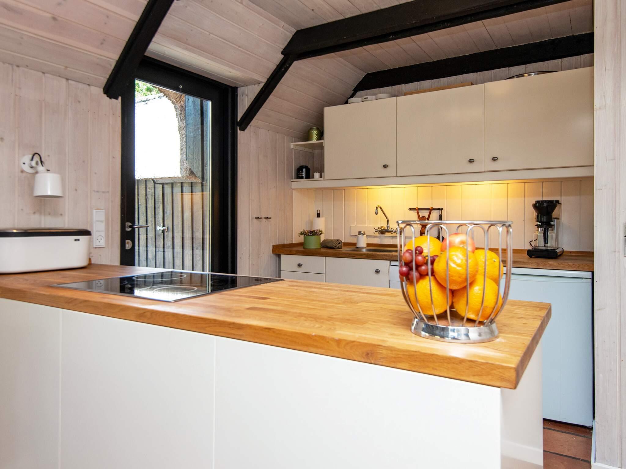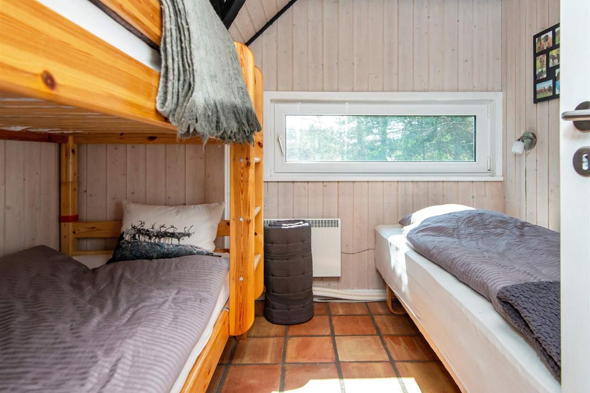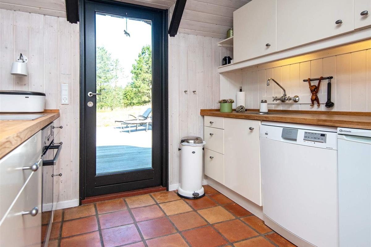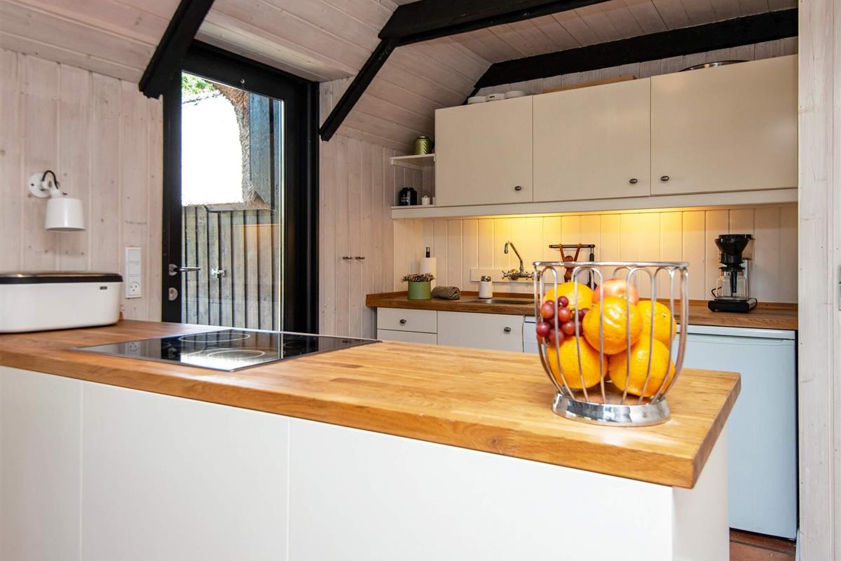 Das Ferienhaus steht als letztes, ganz am Ende einer Sackgasse und liegt völlig uneinsehbar. Es ist modern eingerichtet und hat einen großen, offenen Küchen-/Wohnbereich mit Dachschrägen, Holzofen und Zugang zu einer überdachten Terrassenfläche. Im Haus zudem großes Badezimmer mit Fußbodenheizung, Whirlpool und Sauna sowie praktisches Gästebad. Zudem zwei Schlafzimmer mit jeweils einem Doppelbett, das dritte mit Etagen- und Einzelbett.