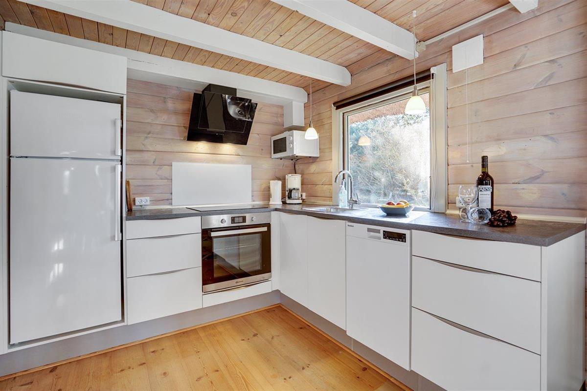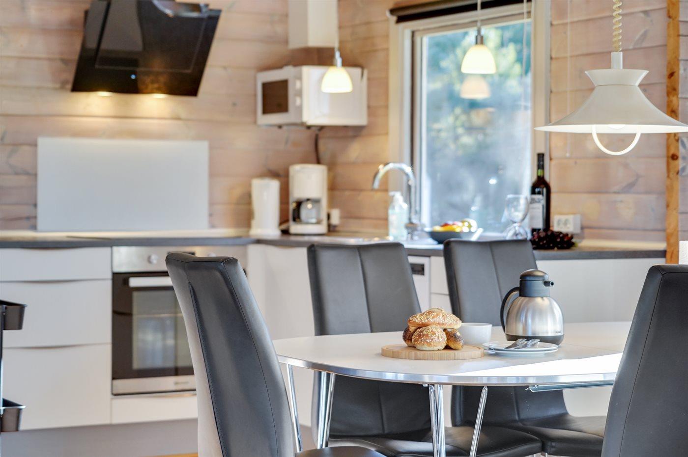 De keuken is uitgerust met koelkast Er is 4 inductiekookplaten, heteluchtoven, magnetron en vaatwasser.