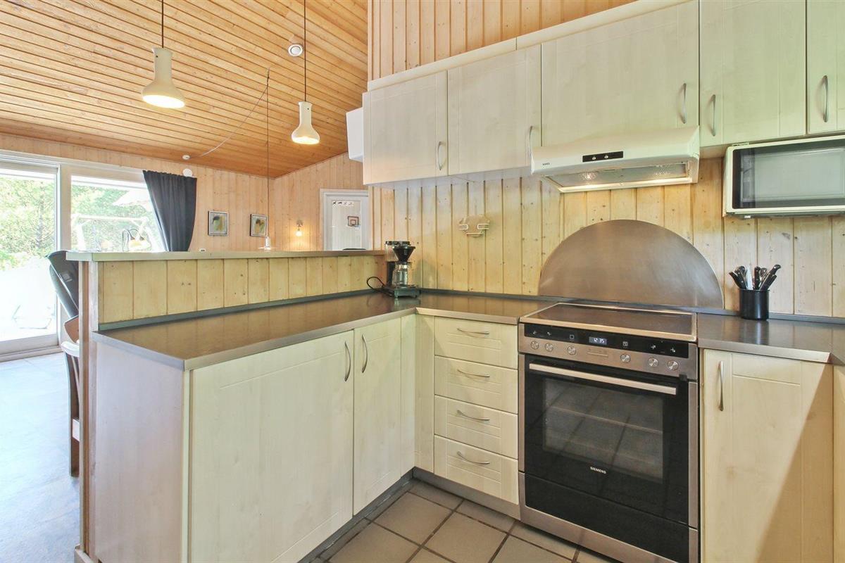 De keuken is uitgerust met koelkast Er is 4 elektrische kookplaten, heteluchtoven, magnetron en vaatwasser.