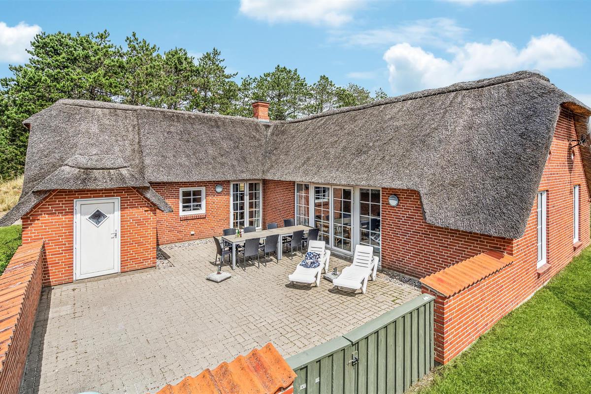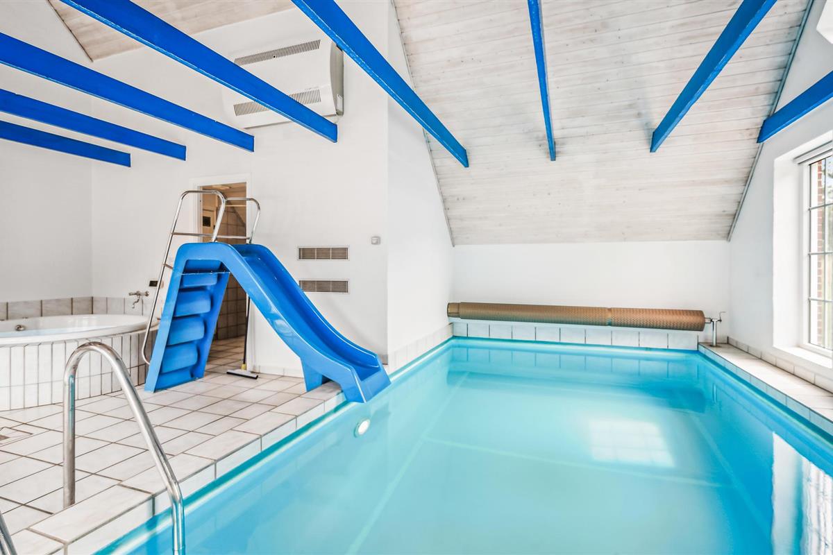 Gelegen in het prachtige duinlandschap gaat dit aantrekkelijke stenen vakantiehuis met rieten dak op natuurlijke wijze op in het landschap. Het waardige meubilair laat zien hoe kwaliteitsbewust de eigenaar is. De 6 slaapkamers zijn in 2 groepen ingedeeld, elk met een badkamer. Zelfs 2 gezinnen voelen zich hier thuis. Vanuit de woonkamer kijkt u uit over de actie in de zwembadruimte. Daar vindt u het zwembad van 21 m², de glijbaan, een 4-pers. whirlpool en de sauna. De warmtepomp houdt het zwembadwater warm en helpt om energie en kosten te besparen. Daarnaast is het huis modern ingericht zodat u optimaal van uw vakantie kunt genieten. Gratis internet.
