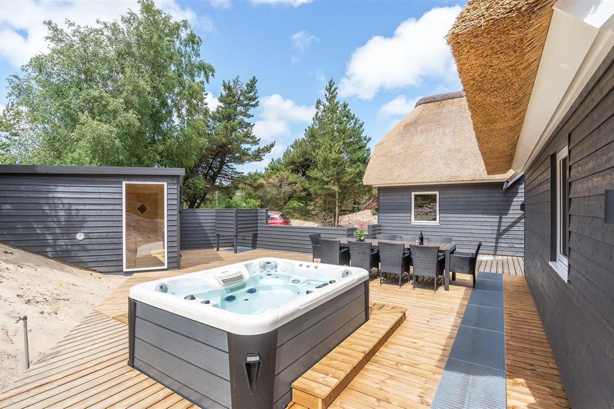 Looking for a cosy thatched holiday home on the North Sea island of Rømø with luxurious extras including a hot tub, sauna and high-quality interior? Then A Hveyselsvej 28 is perfect for you. This stylish holiday home offers plenty of space for up to 10 people and, with its layout split between a main house and annexe, is ideal for two families. Up to two dogs are also welcome and can enjoy long beach walks with you.