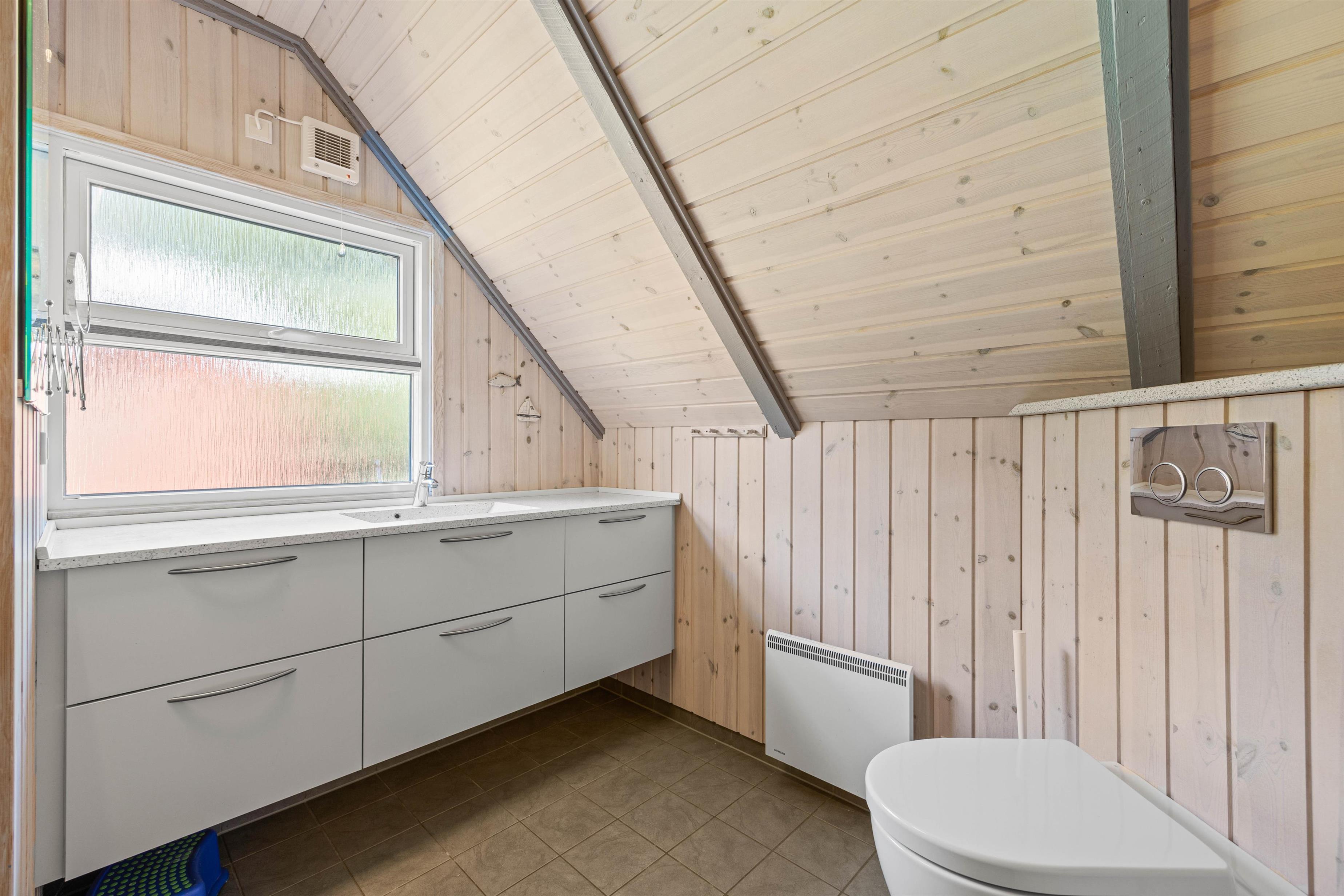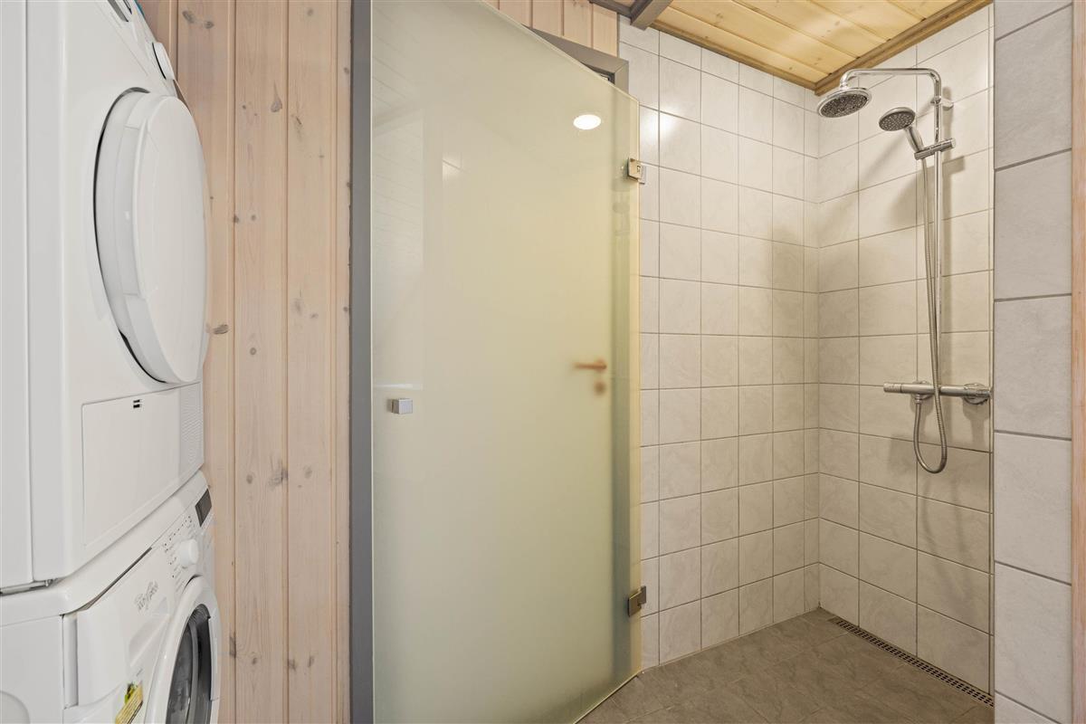 Enter this beautiful holiday home through the practical hallway, where you can store your coats and shoes. To the left, you'll find the well-maintained bathroom, fitted with underfloor heating to ensure warm feet after your shower.