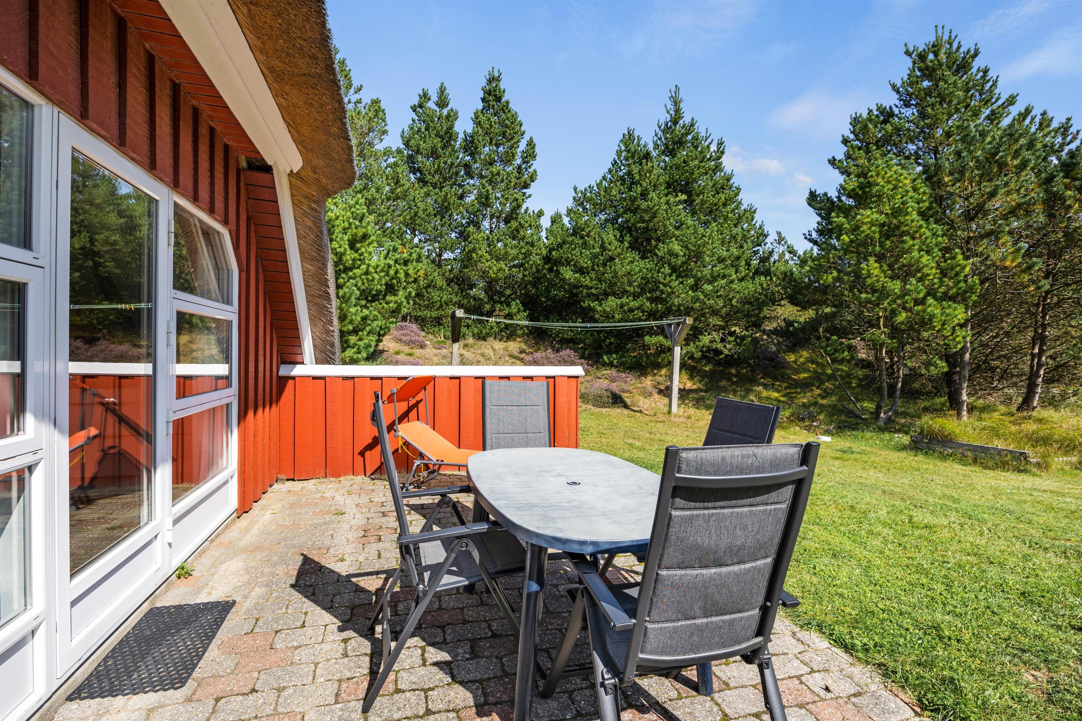 Surrounded by bushes and trees, you can enjoy complete privacy in the 2,500-square-metre natural plot. It's a perfect place to unwind and forget about everyday stress. The two terrace areas allow you to follow the sun throughout the day. Enjoy breakfast on one terrace and end your holiday day with a barbecue on the other.