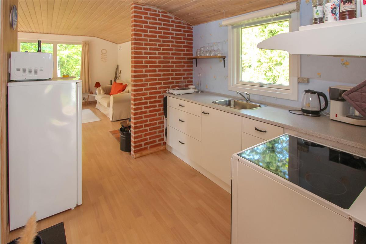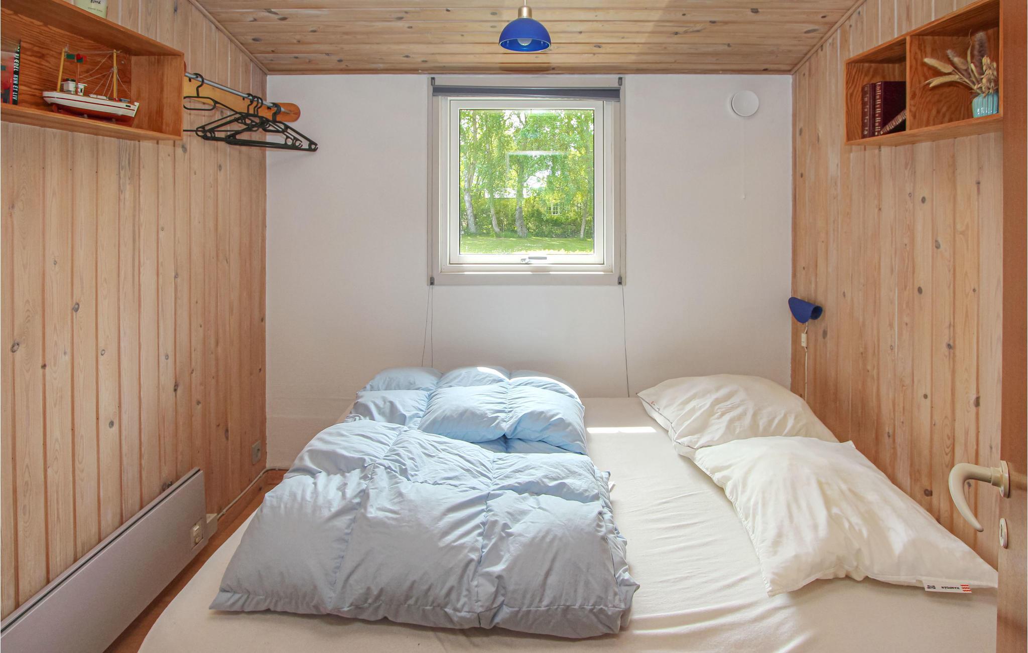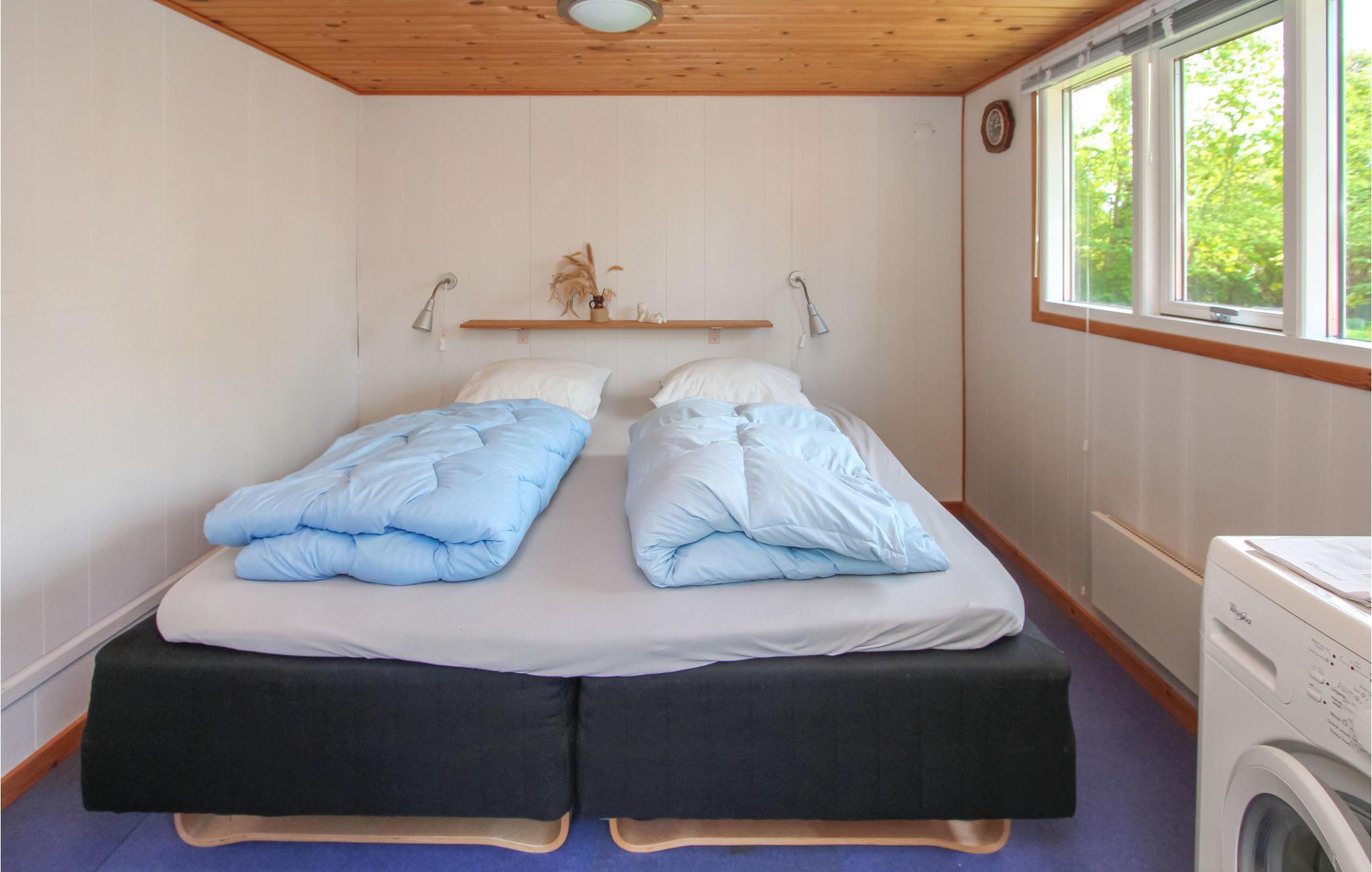 Hier vind je een gezellig en klein vakantiehuis vlakbij het strand met een zwemsteiger.