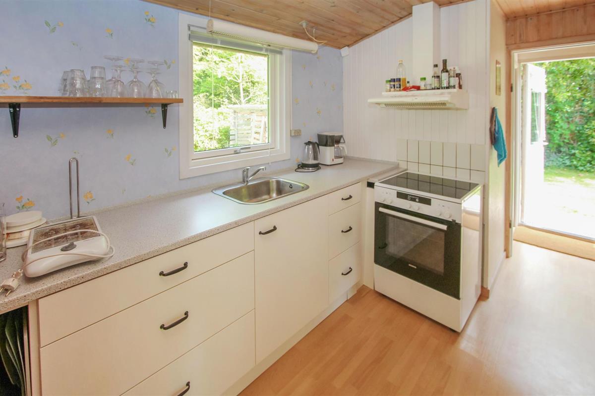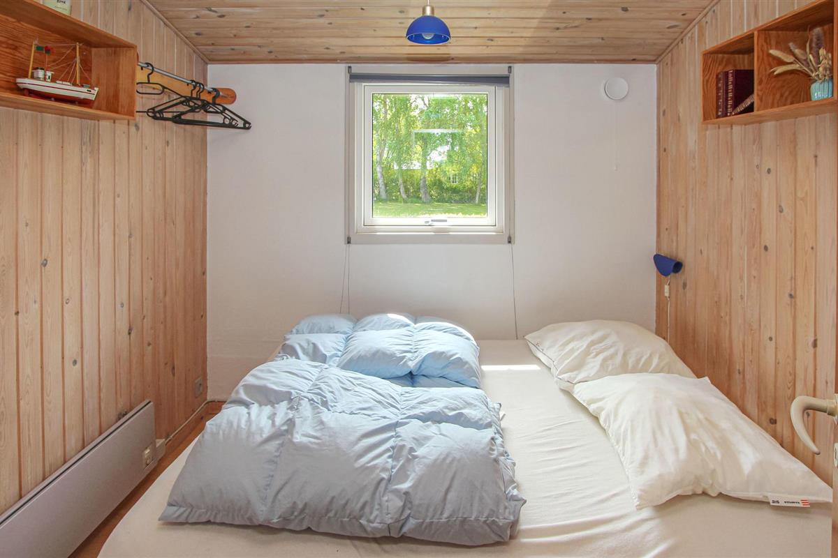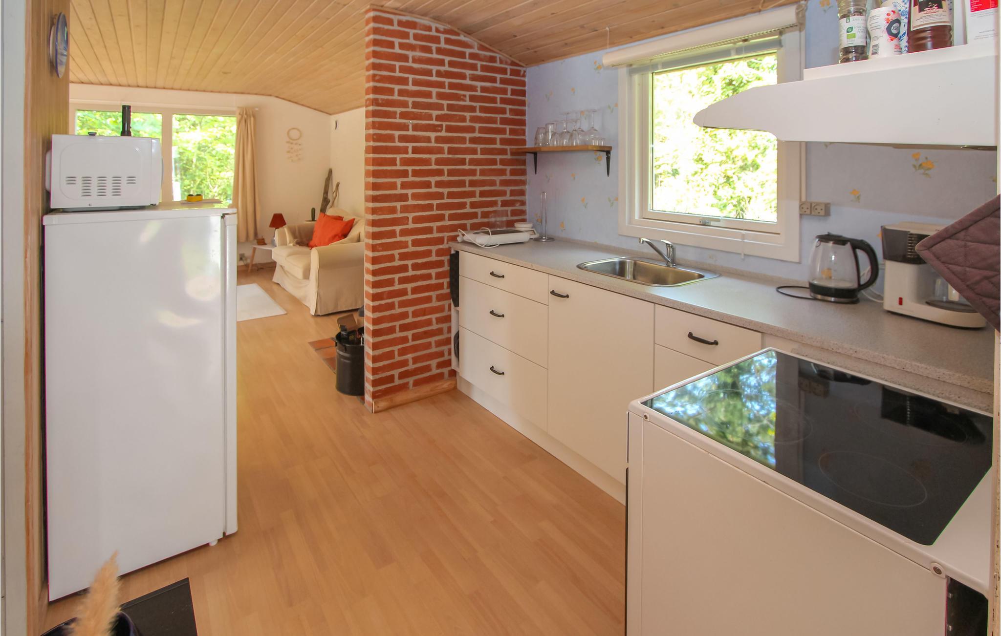 Hier vind je een gezellig en klein vakantiehuis vlakbij het strand met een zwemsteiger.