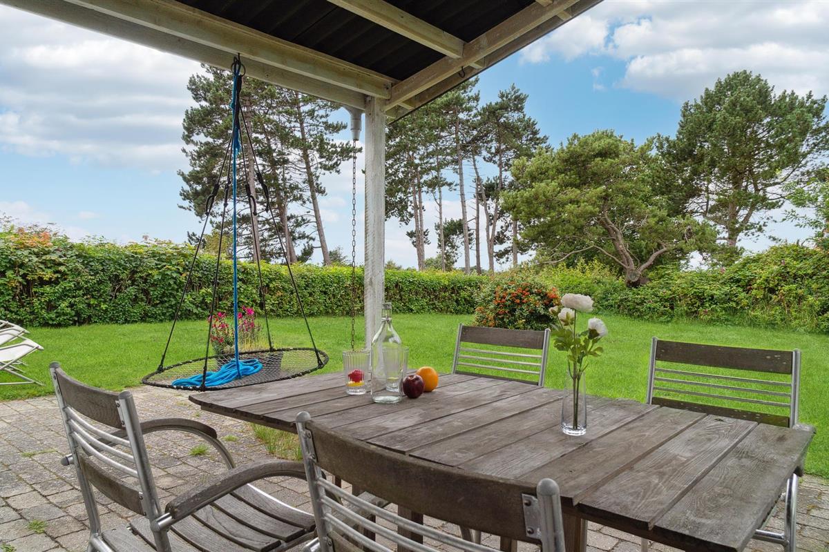 Uw viervoeter is ook welkom in dit gezellige vakantiehuis. Neem uw maaltijden samen in het glazen gedeelte van de woonkamer, hier kunt u tijdens het eten genieten van een prachtig uitzicht op de tuin. Na een actieve dag wandelen of fietsen op het eiland, strijkt u neer op de comfortabele bank voor een filmavond terwijl de vlammen knetteren in de open haard. Geniet van een aangename tijd buiten op het terras van het huis en sluit de dag hier af met een drankje.