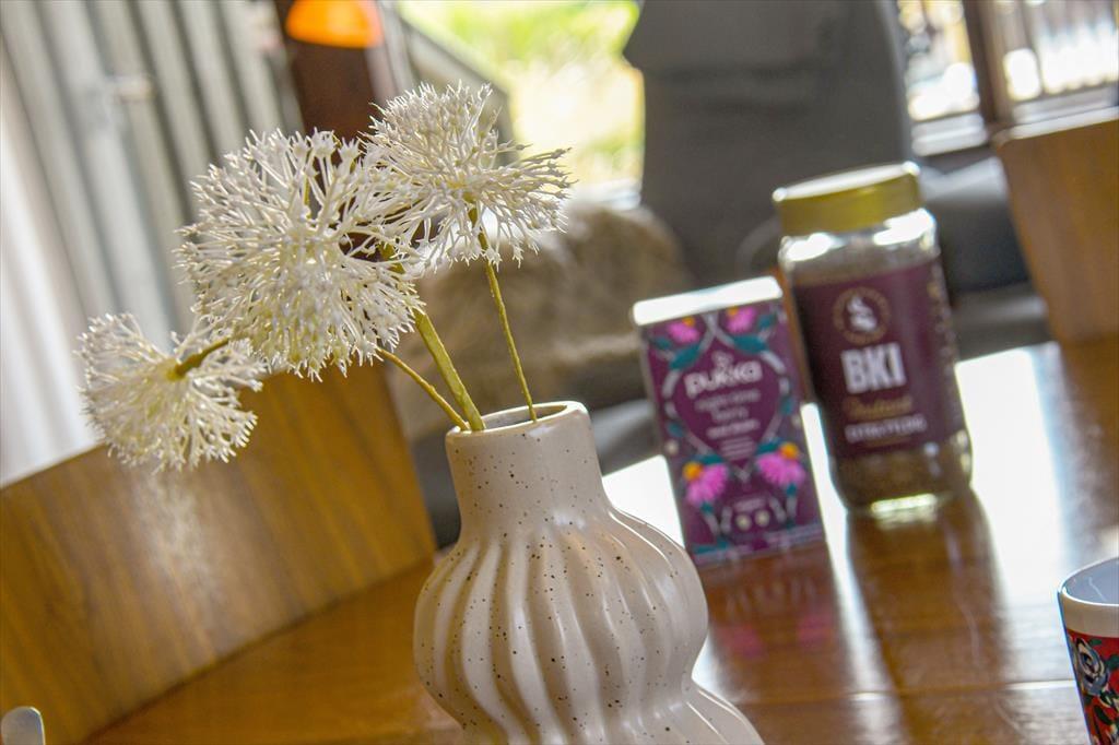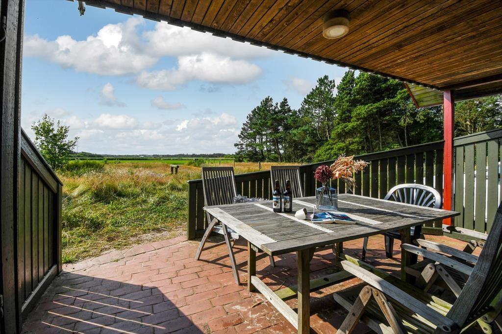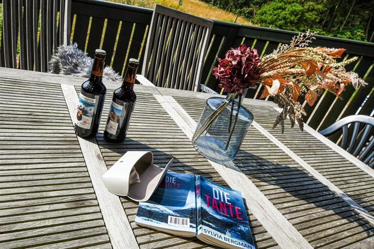 Die Sonnenstunden lassen sich perfekt auf der teilweise überdachten Terrasse verbringen, die sich südlich vom Ferienhaus direkt an das Wohnzimmer anschließt. Eine warme Tasse Kaffee oder ein kühles Getränk schmecken einfach besser, wenn man in einer solch schönen Landschaft sitzt. Wenn du davon träumst, deine Abendessen im Freien zuzubereiten, kannst du den Grill nutzen und am Gartentisch speisen. Das Grundstück ist mit seinen 3600 m² sehr groß, und es gibt viel Abstand zu den Nachbarn. Mit Carport und Hof gibt es zudem reichlich Platz, um ein oder mehrere Autos zu parken.
