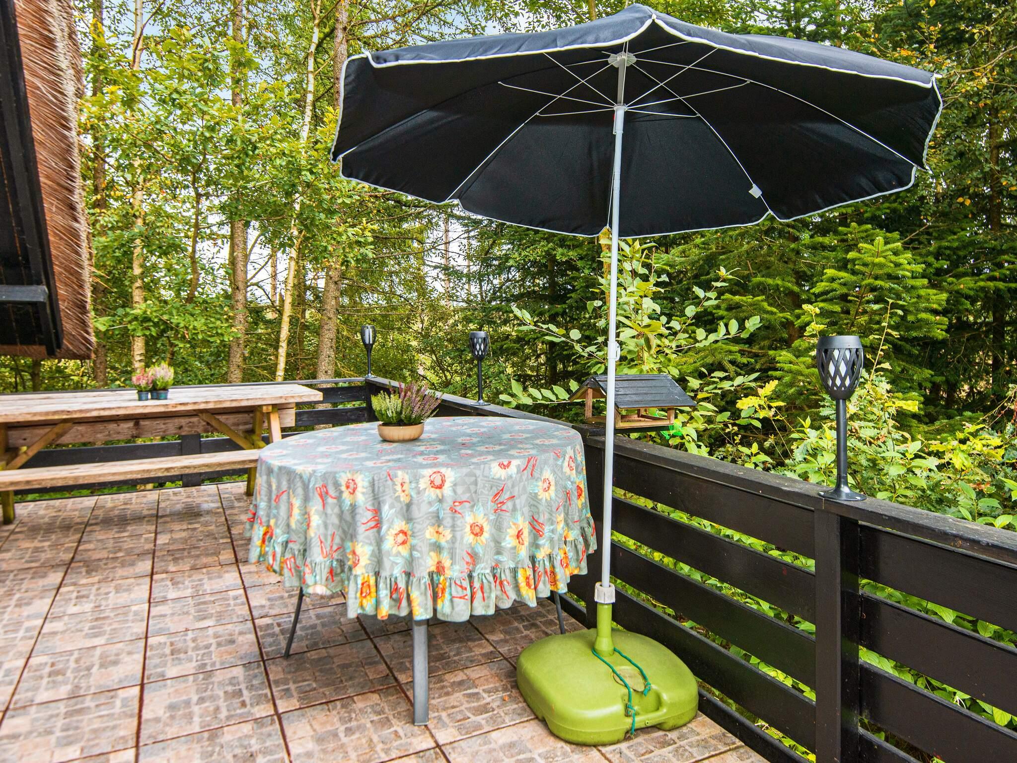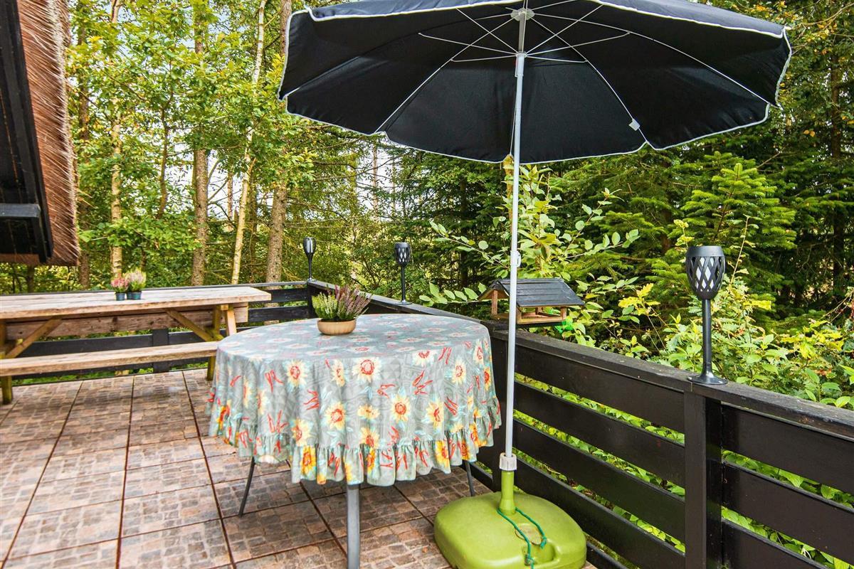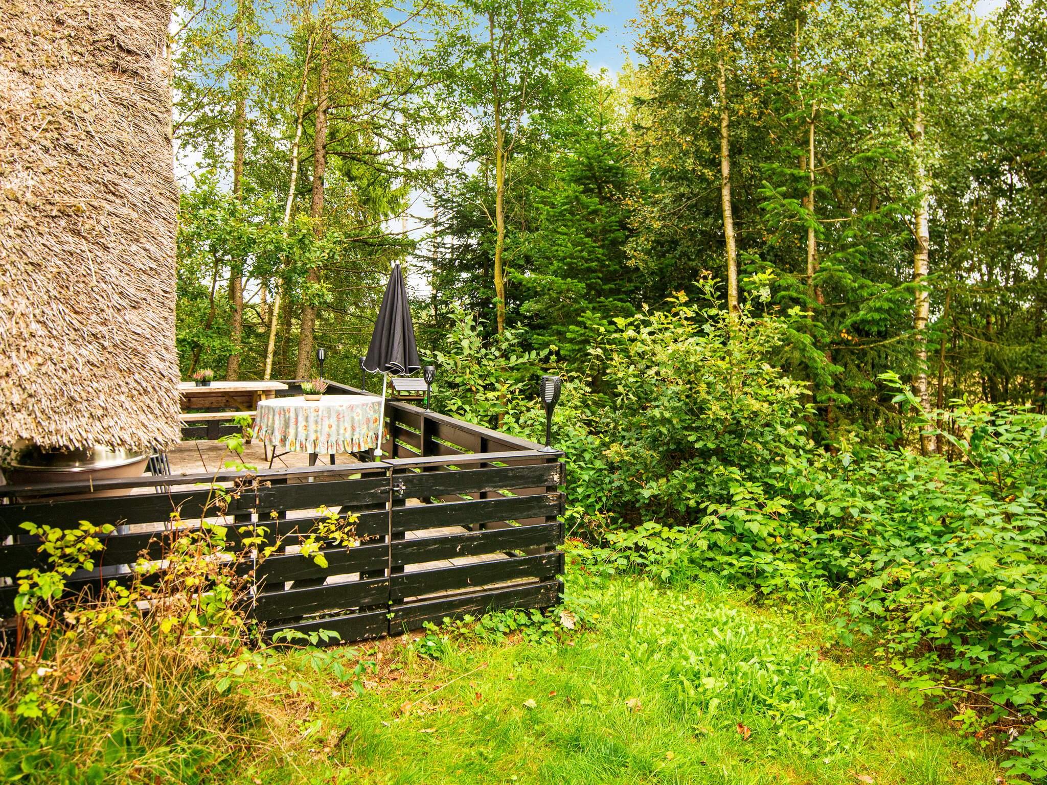 Idyllisch gelegenes Ferienhaus in einem landschaftlich reizvollen Naturgebiet, ca. 100 m vom Rørbæk See entfernt, der mit den Flüssen Gudenå und Skjern Å verbunden ist. Vom Wohnzimmer direkter Zugang zur Terrasse und zum Hems, wo es vier weitere Schlafplätze gibt. Es gibt ein Schlafzimmer, ein kleines Bad und eine offene Küche in Verbindung mit dem Wohnzimmer. Kein Gas bzw. keine Grillkohle vorhanden.\