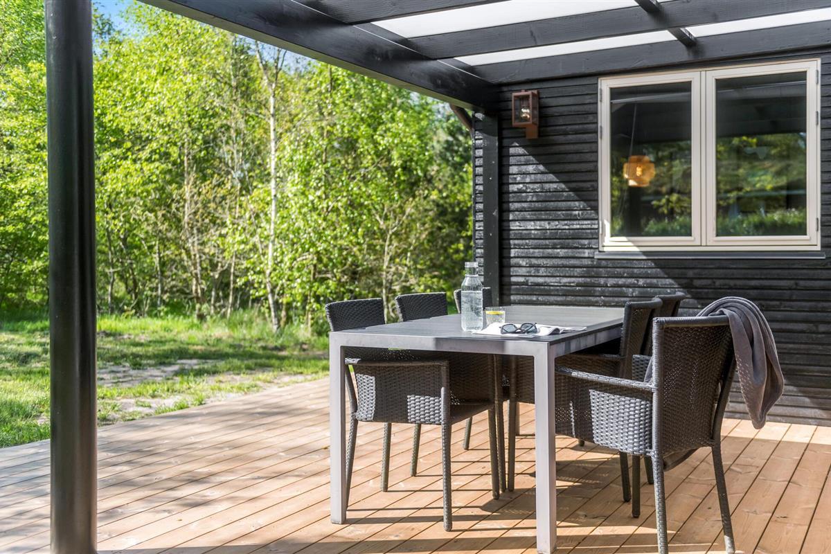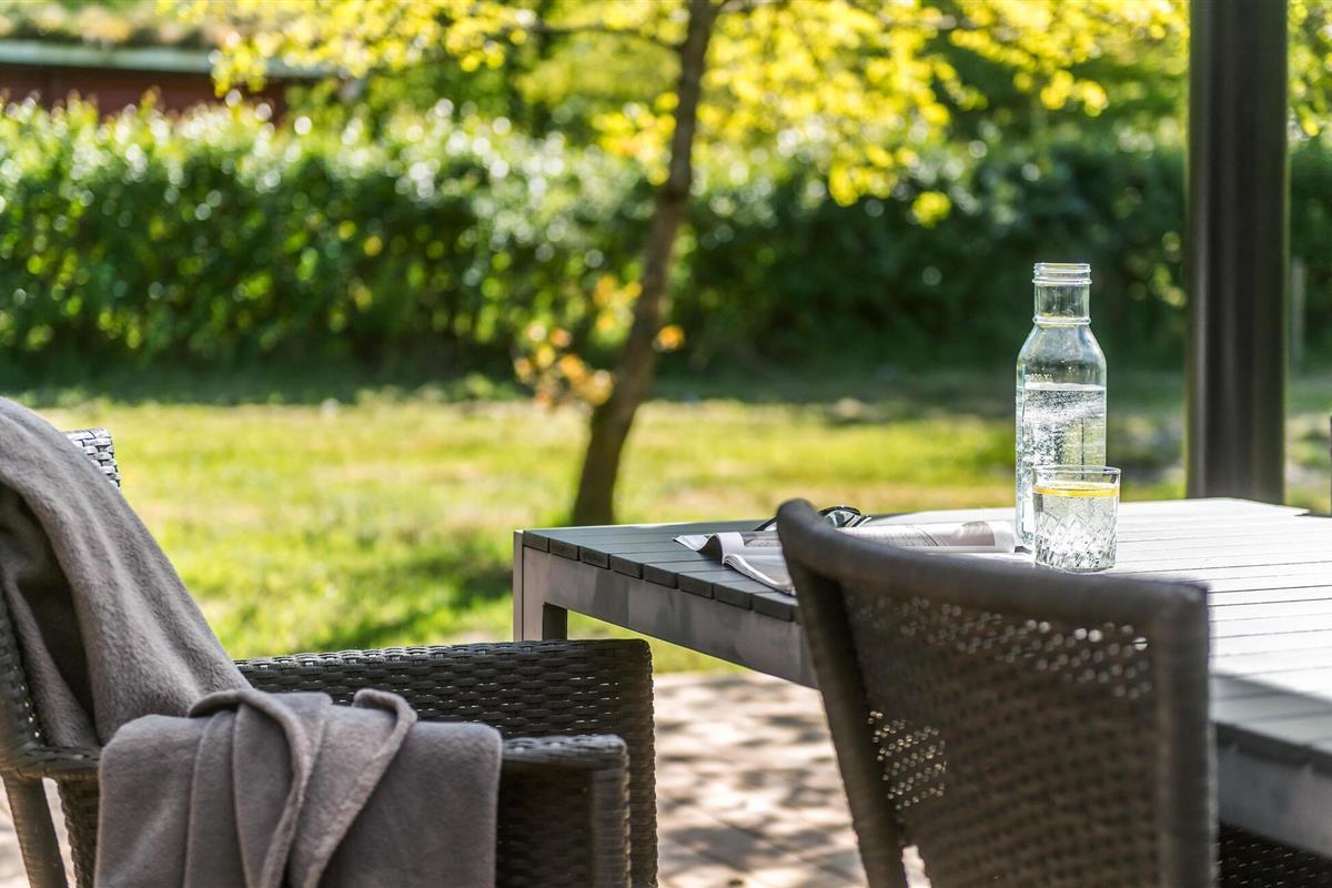 Gezellig en stijlvol vakantiehuis in Jutland, dichtbij Givskud Zoo en Legoland, met groot terras en tuin voor ontspanning.