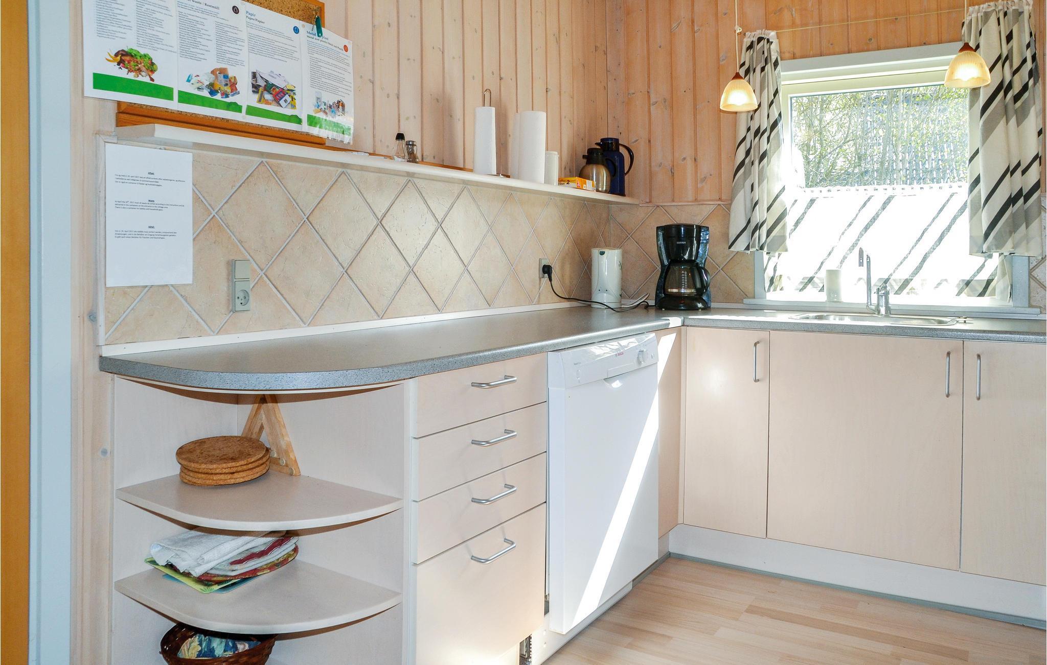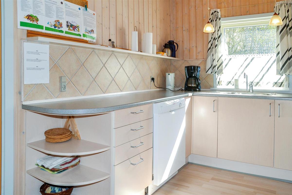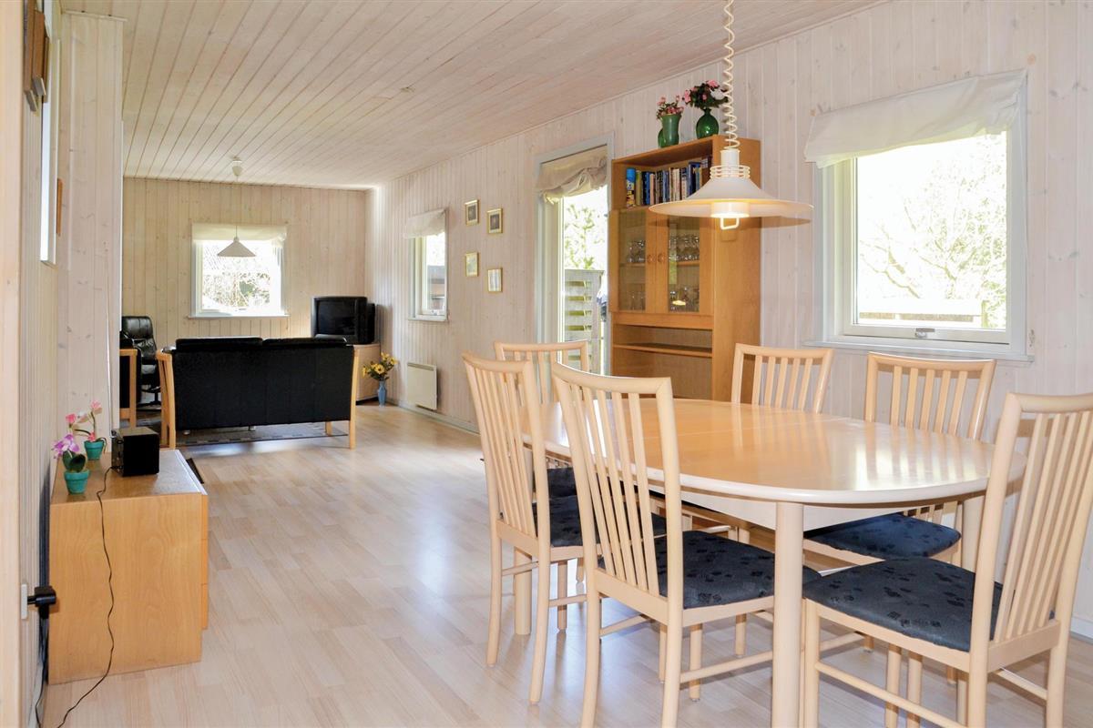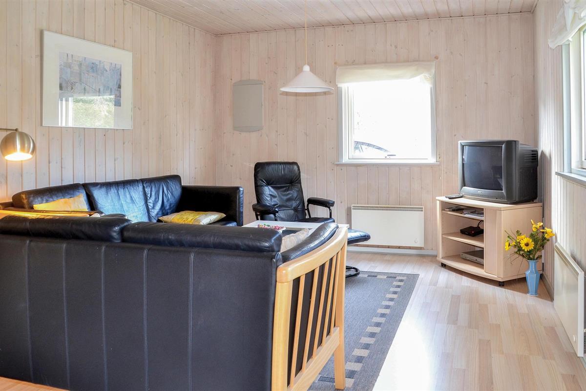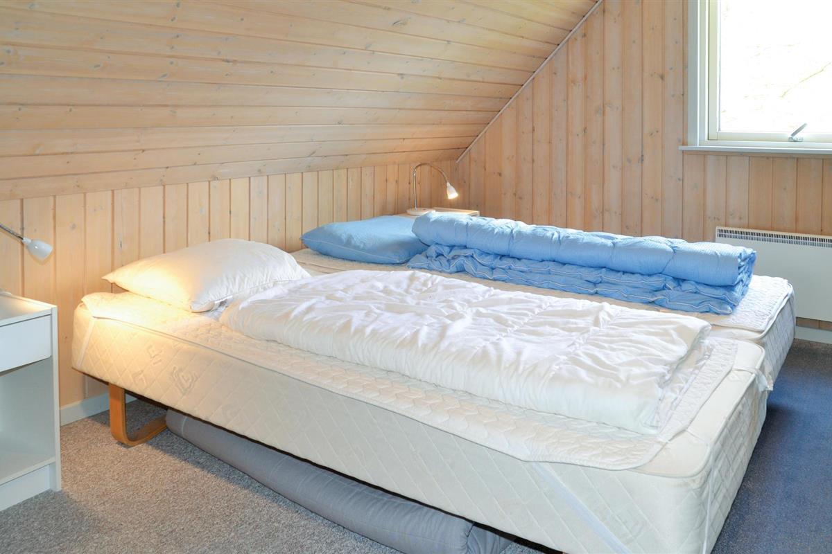 Echt gezellig vakantiehuis met twee verdiepingen. Slaapkamers op beide verdiepingen. Tafelvoetbal in een van de slaapkamers op de bovenverdieping. Er is een eettafel en een bankstel in de keuken-woonkamer. De sauna en het massagebad bevinden zich in de badkamer op de begane grond. Het natuurlijke perceel is gedeeltelijk beschut tegen inkijk, het terras ligt in de luwte. Goed uitgangspunt voor uitstapjes naar Givskud Zoo, naar Give om te wandelen, naar Legoland en Legohouse met de kinderen en om te zwemmen in het Lalandia avonturenbad.
