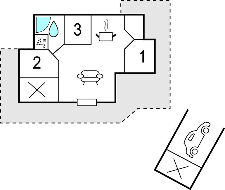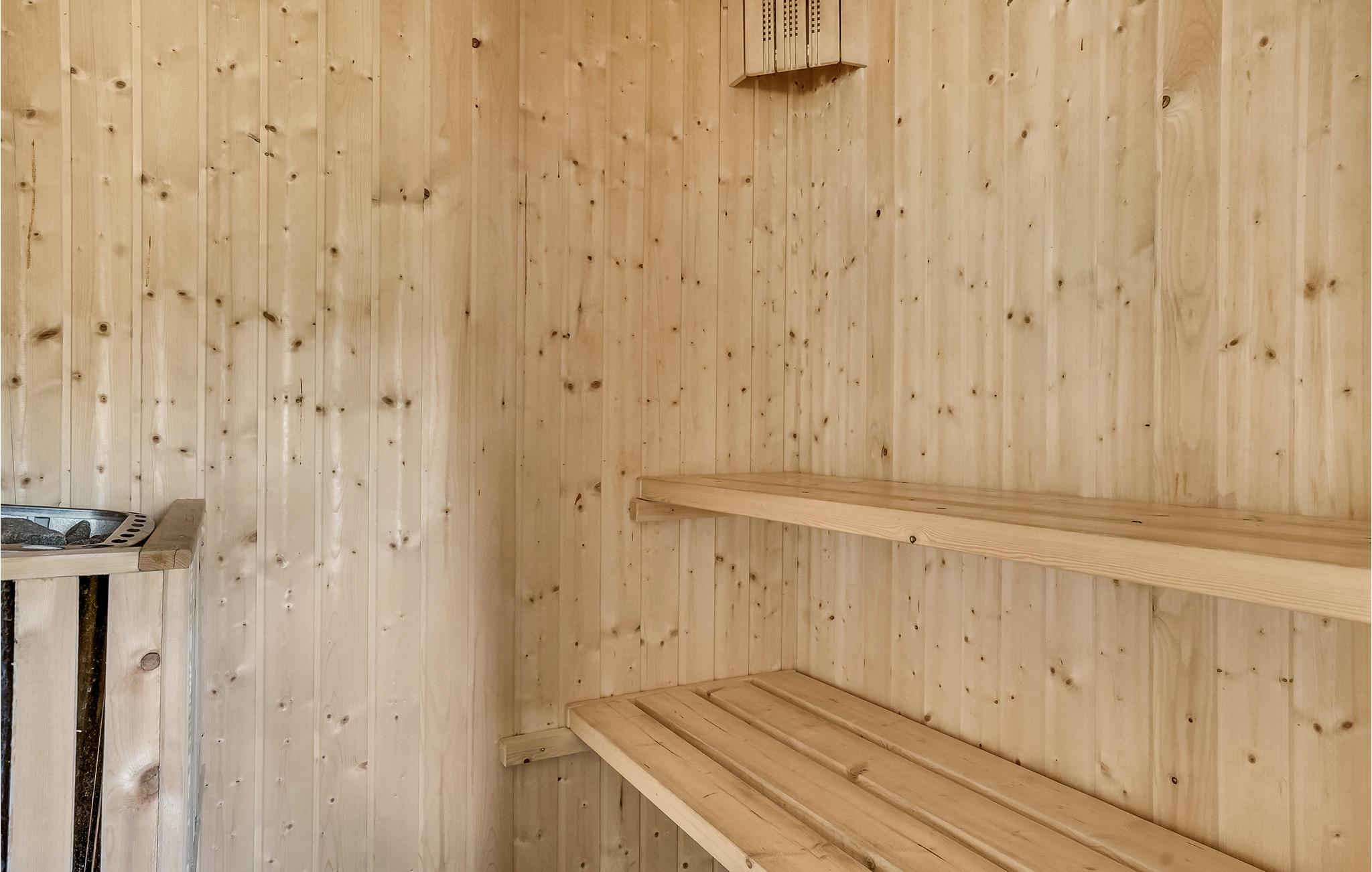 Het huisje is goed ingericht, er is een houtkachel in de keuken-woonkamer en u kunt barbecueën op het gedeeltelijk overdekte terras. De grote badkamer heeft een massagebad en toegang tot de sauna. Alle slaapkamers hebben goede bedden, en er zijn ook verschillende terrassen rondom het huis. Het grote natuurlijke perceel is ongestoord en het is mogelijk om een elektrische auto bij het huis op te laden.